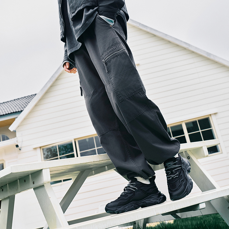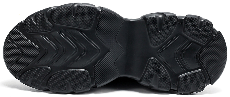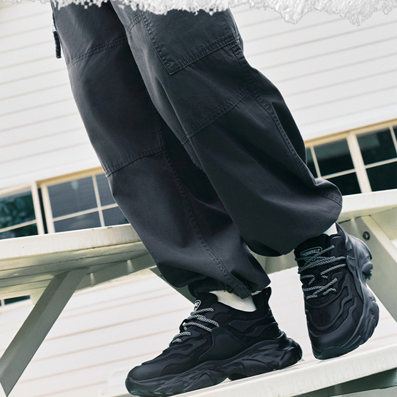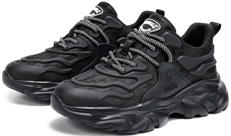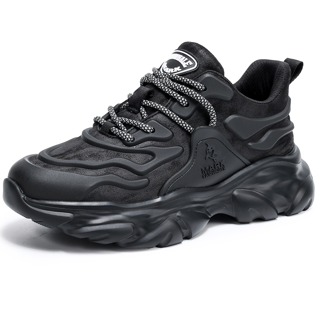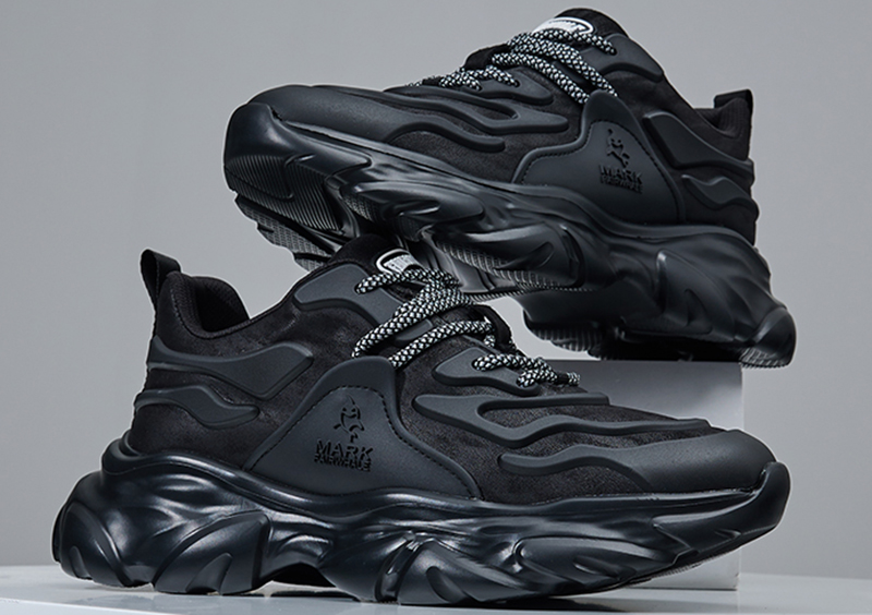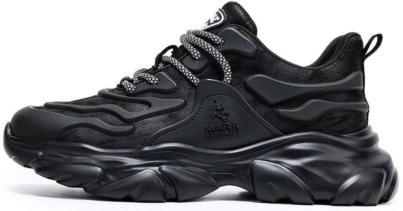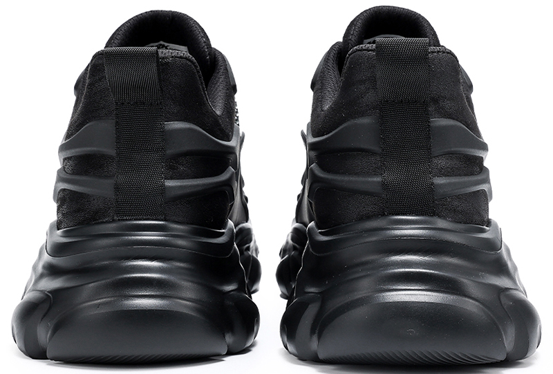 All Black Chunky Wave Sole Dad Sneakers with Woven Laces
