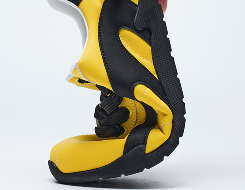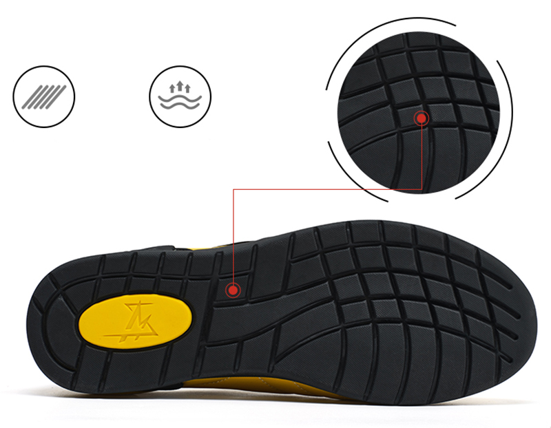 - Engineered for reliability, the sneaker’s outsole features a dense, interlocking grid pattern that boosts grip across smooth, wet, or uneven surfaces—minimizing slip risk in daily scenarios. Crafted from tough, wear-resistant rubber, the sole resists scuffs and scratches from frequent use, while a subtle branded logo (set in the yellow oval) adds a premium, cohesive touch to its practical design.