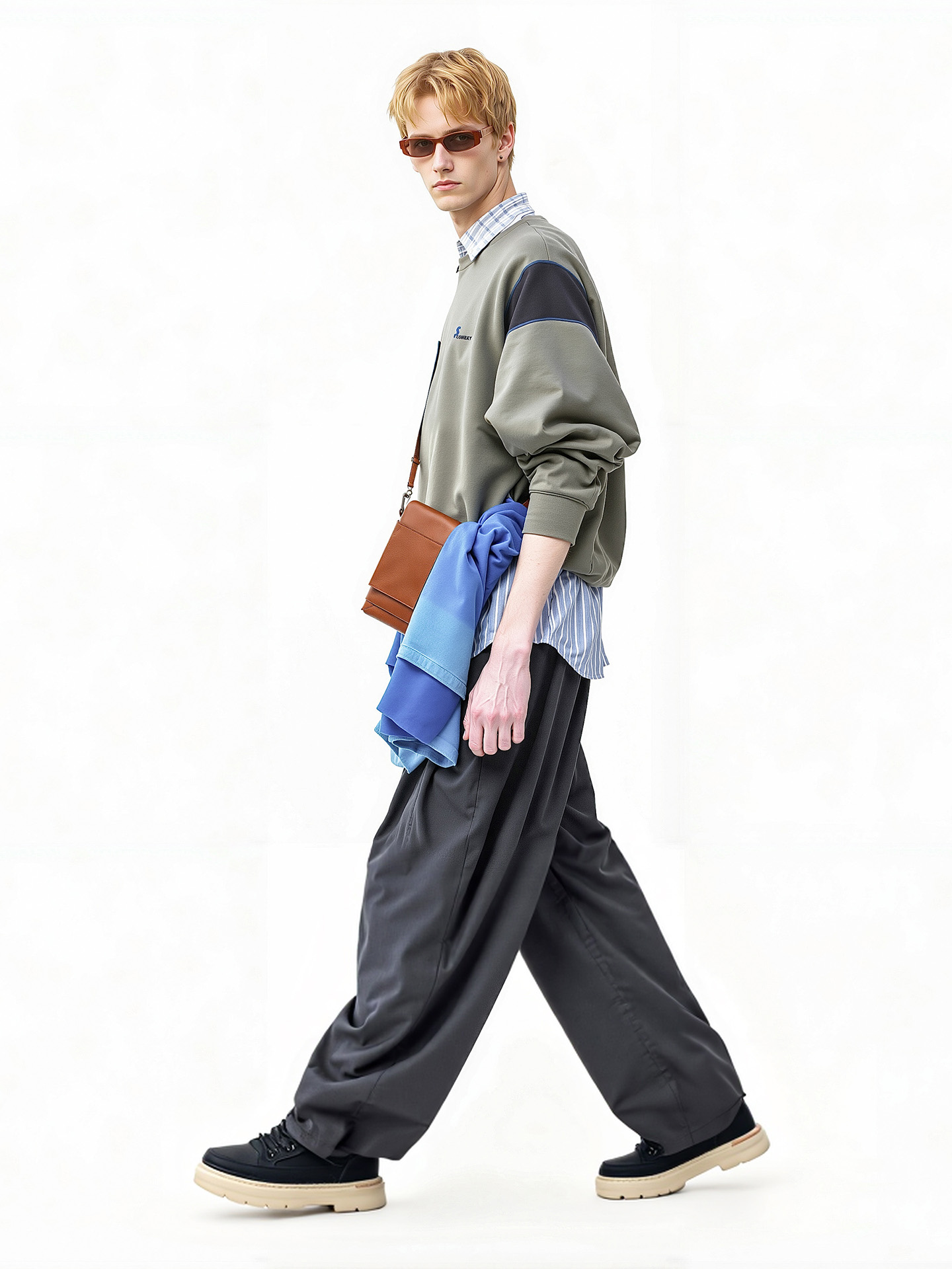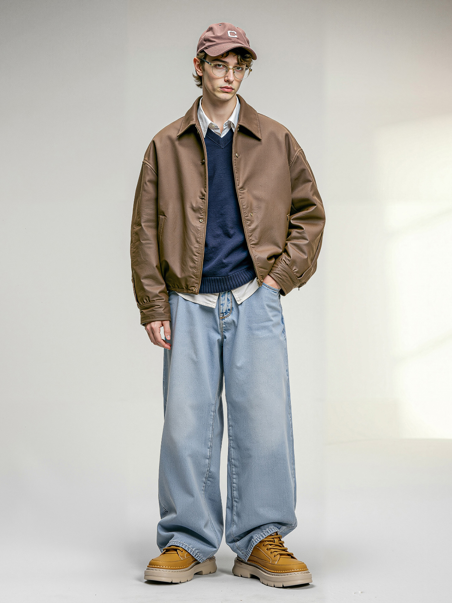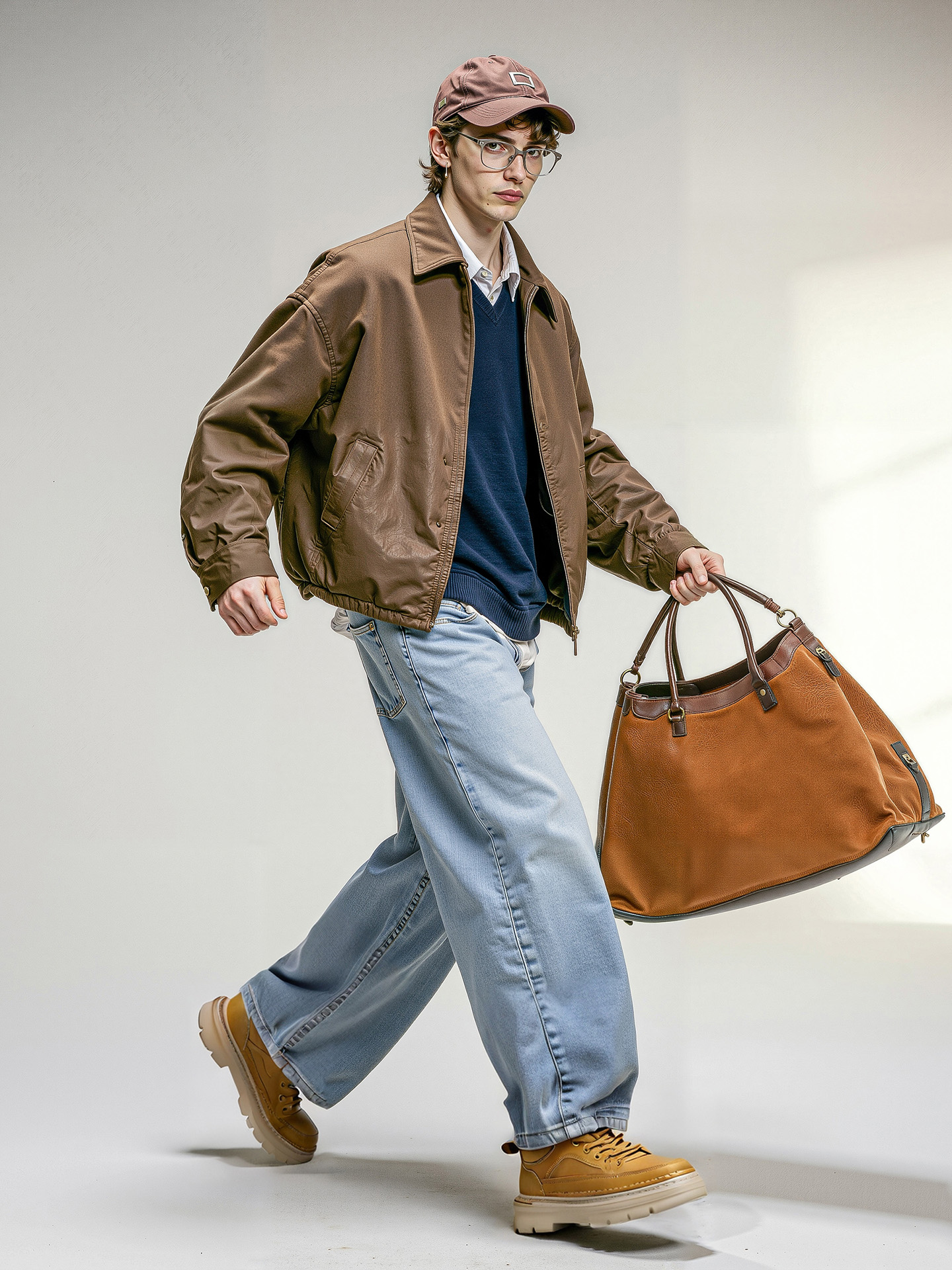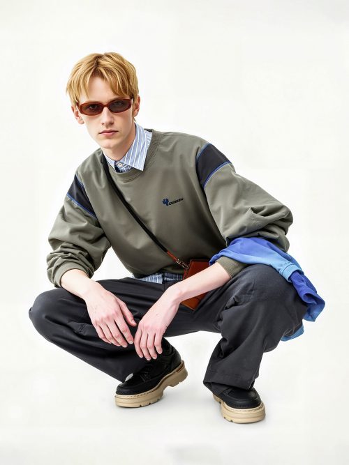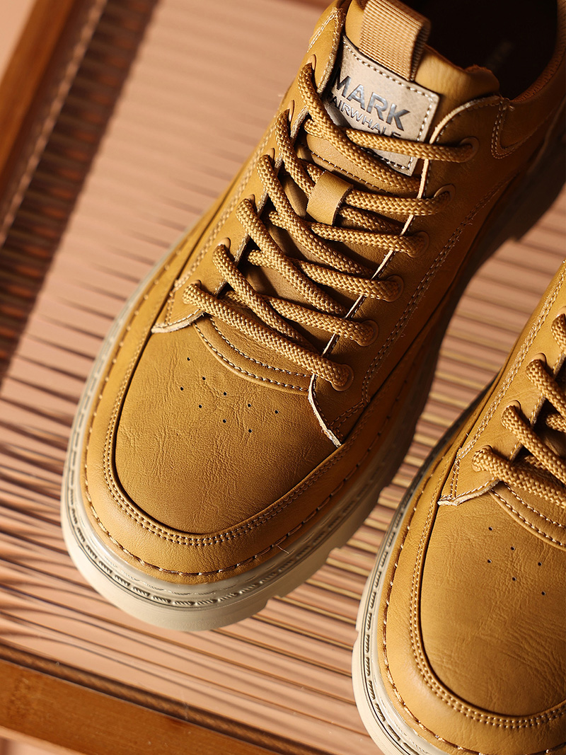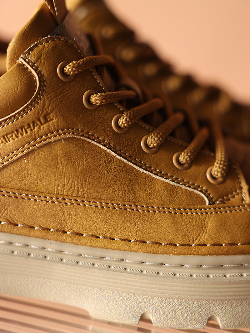 Breathable Round Toe Chunky Cushion Sole Vintage Textured Mid Top Sneakers with Utility Stitching