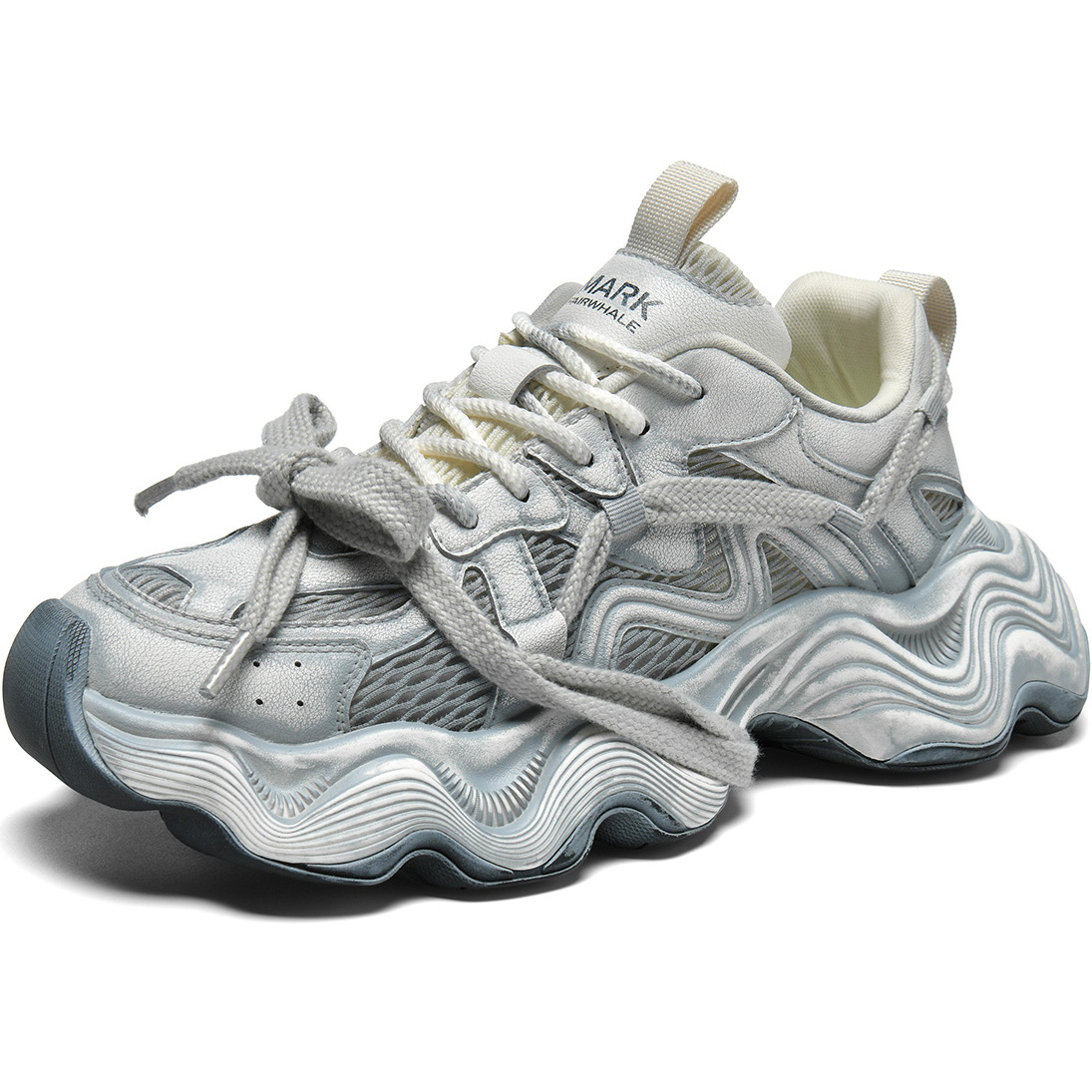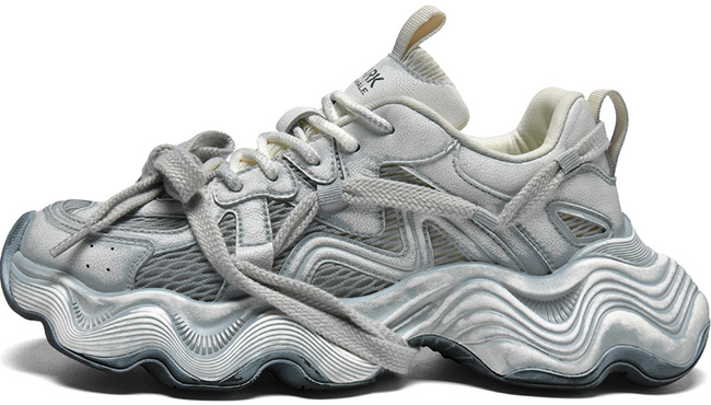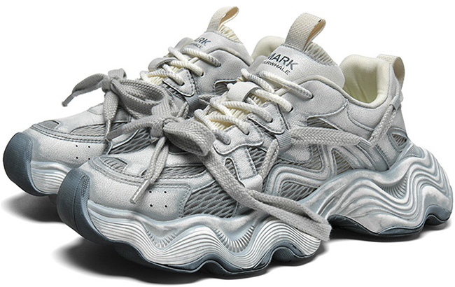 Breathable Vintage Distressed Platform Dad Shoes with Layered Chunky Laces and Wavy Sole