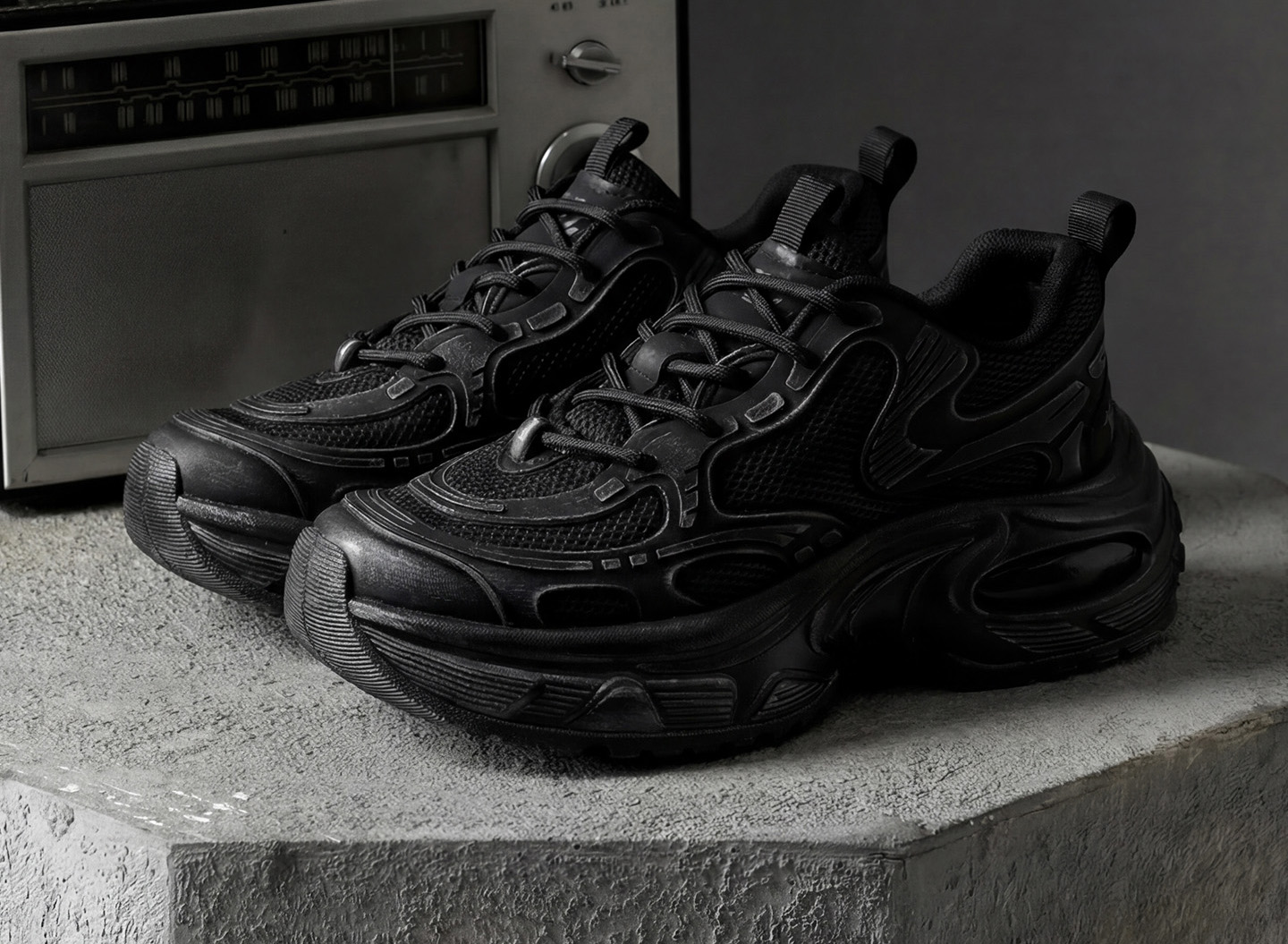 - All-Black Versatile Style: Sleek all-black colorway with a bold chunky silhouette complements street, techwear, and workwear styles, ideal for versatile daily outfits.