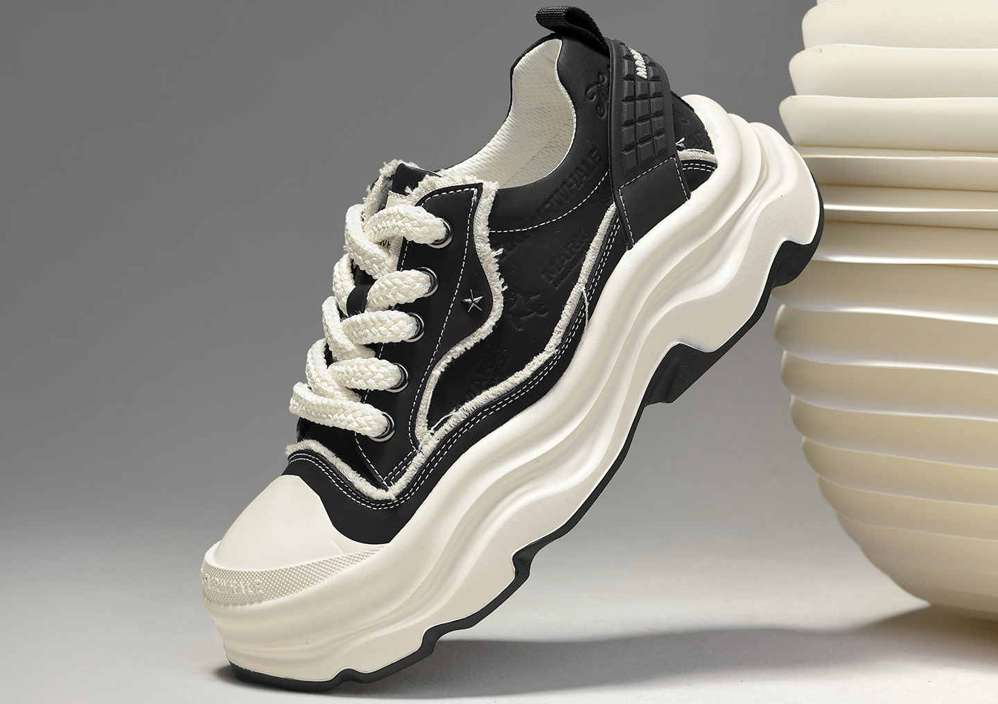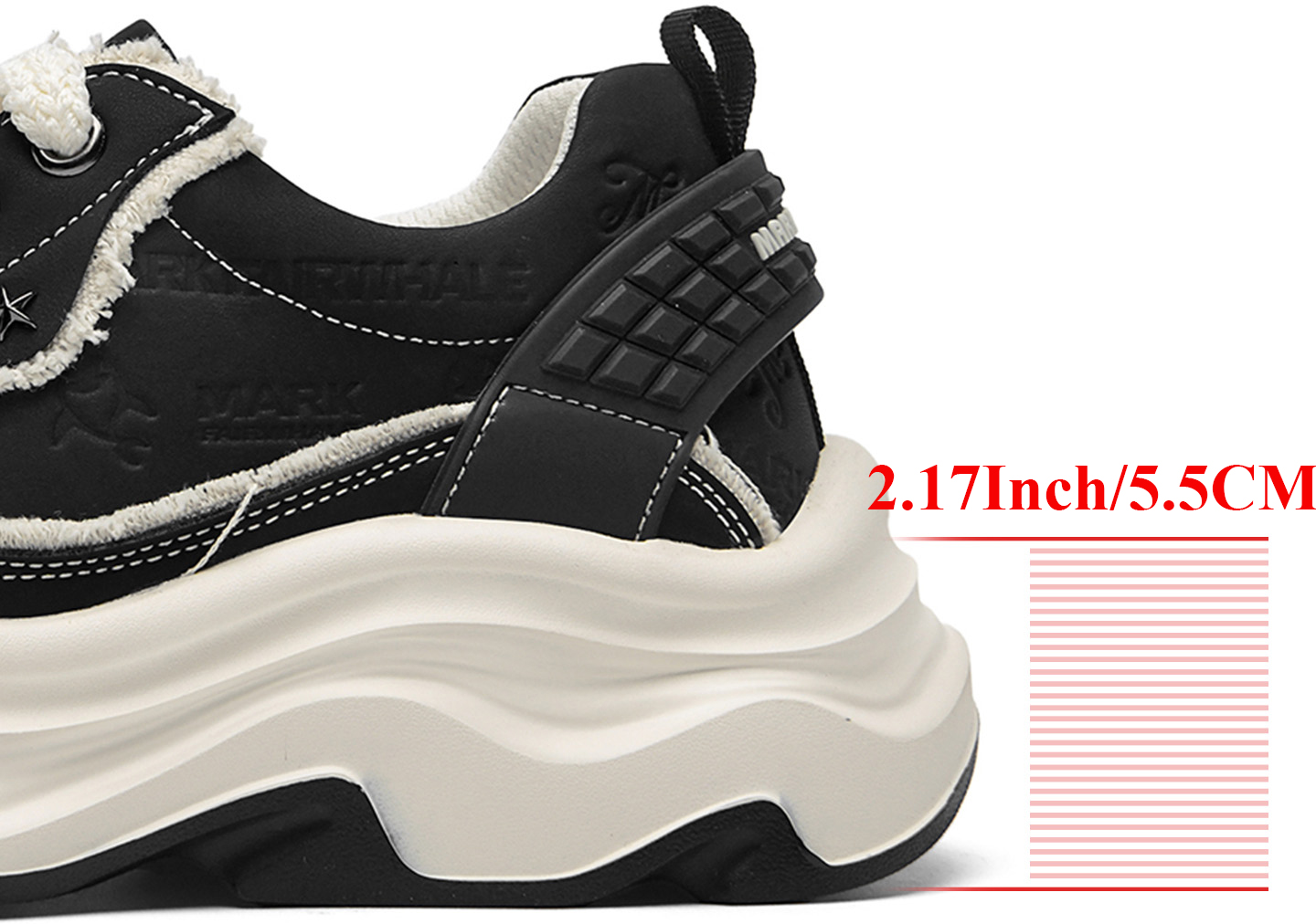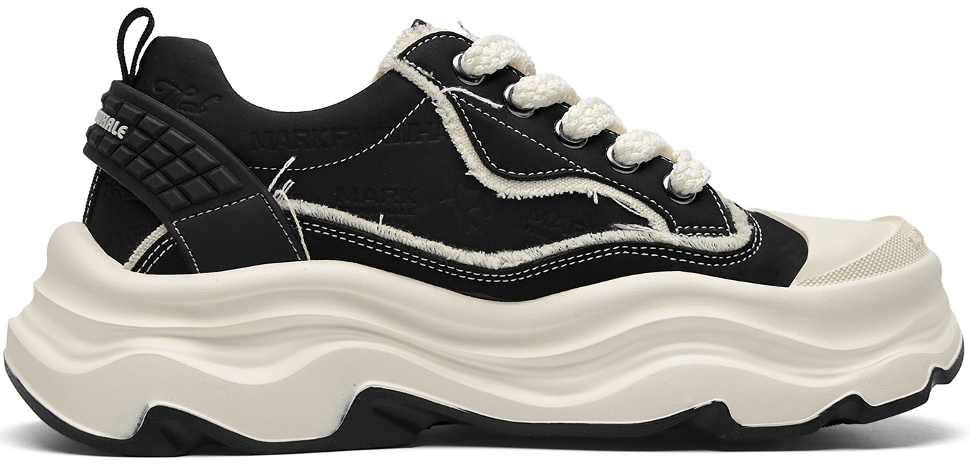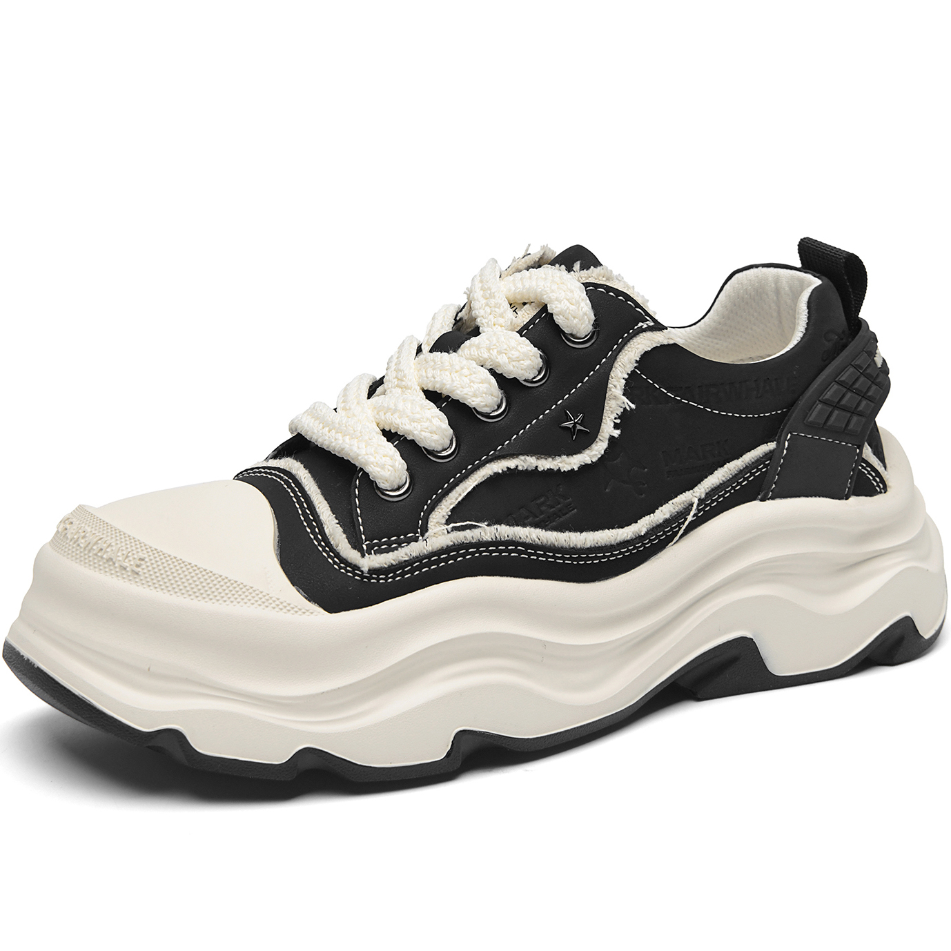Embossed Frayed Edge Wavy Chunky Sneakers with Star Accent