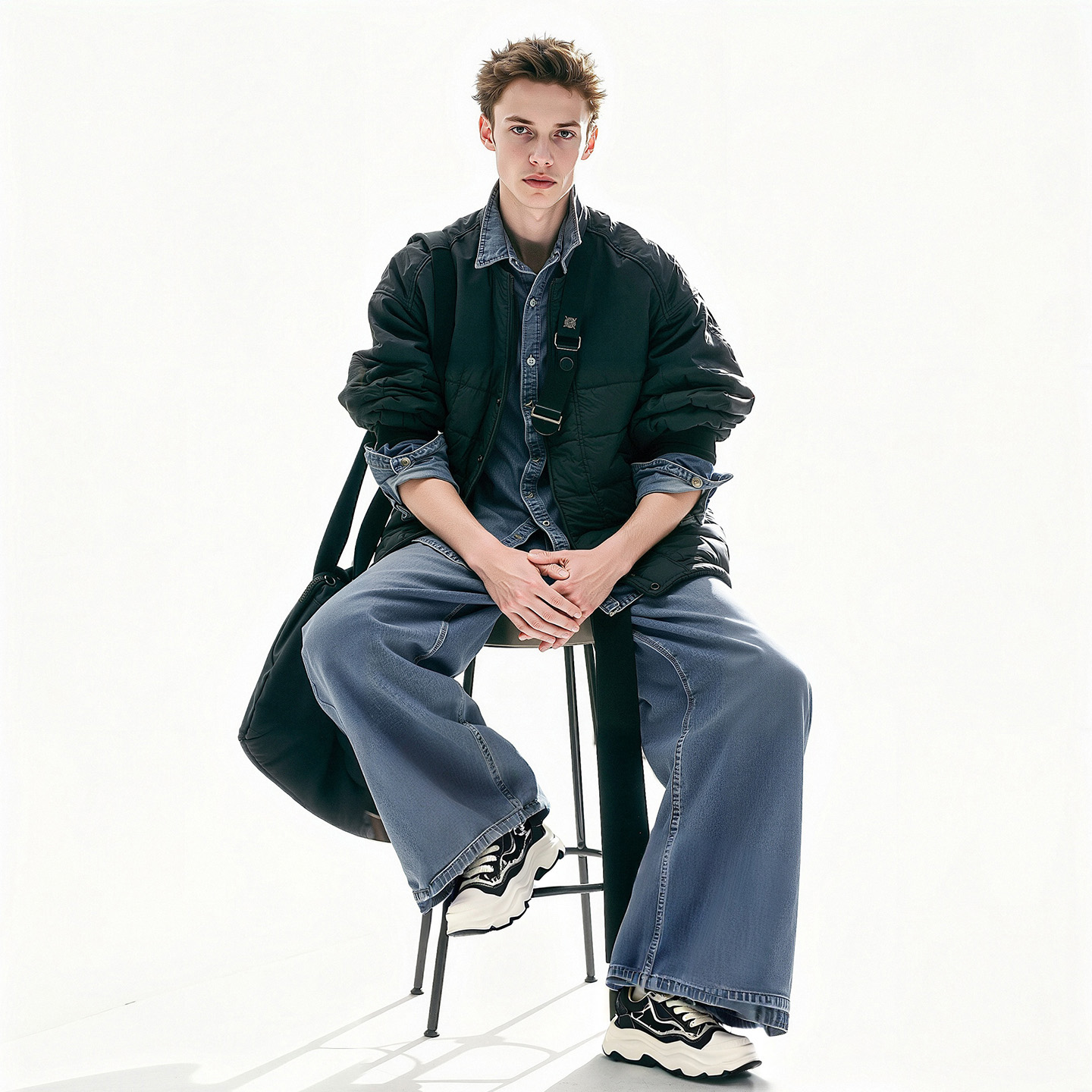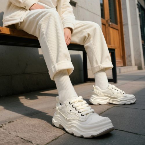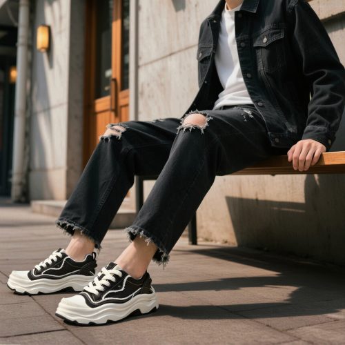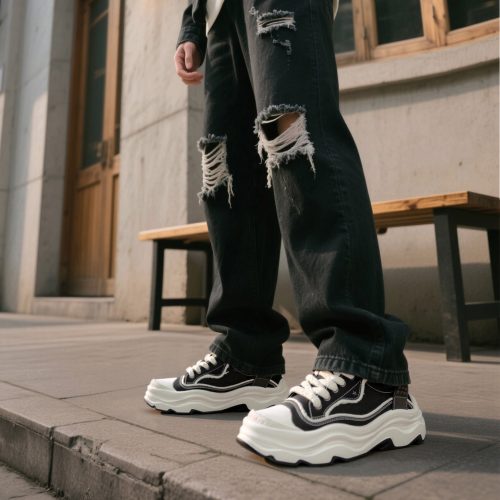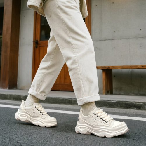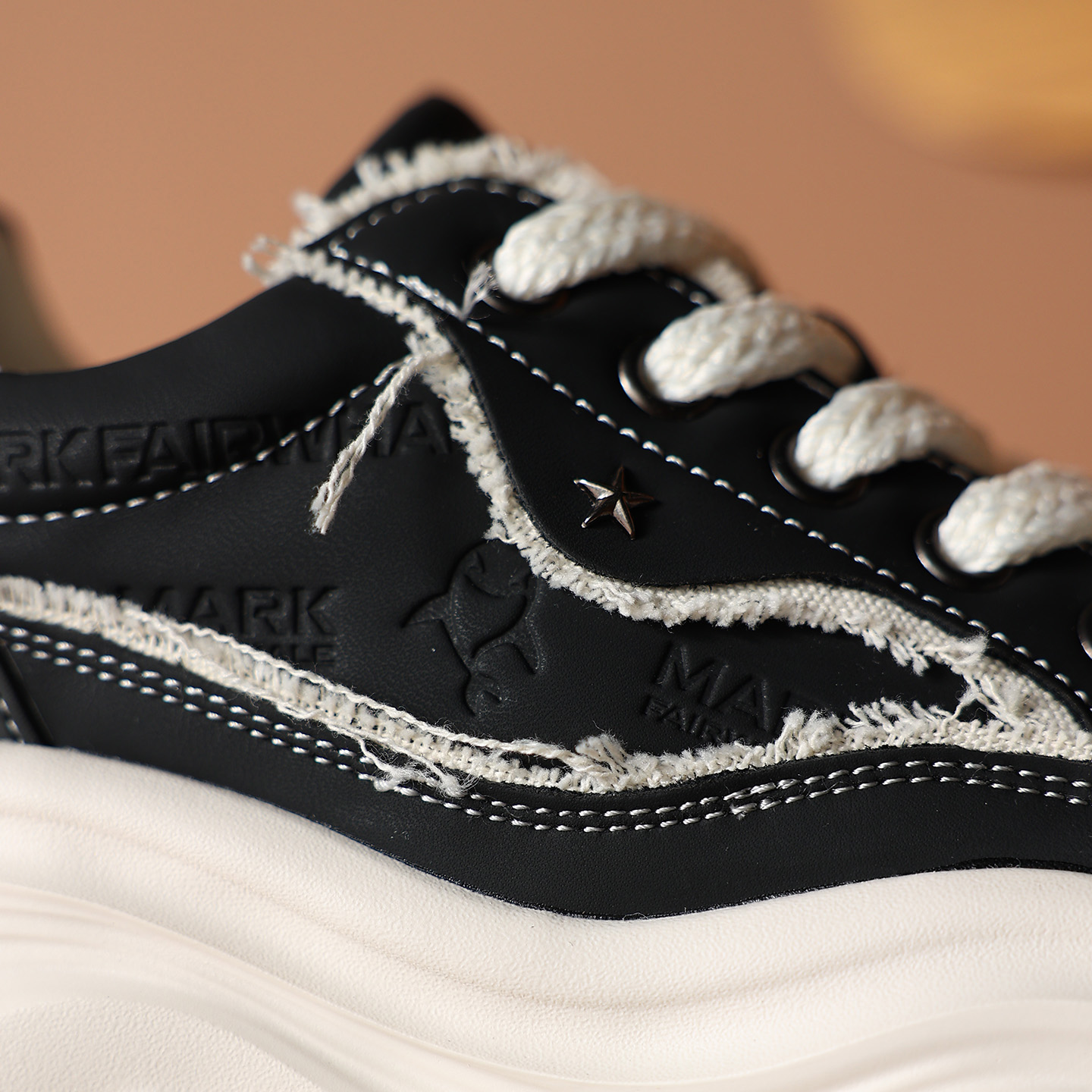 Embossed Frayed Edge Wavy Chunky Sneakers with Star Accent