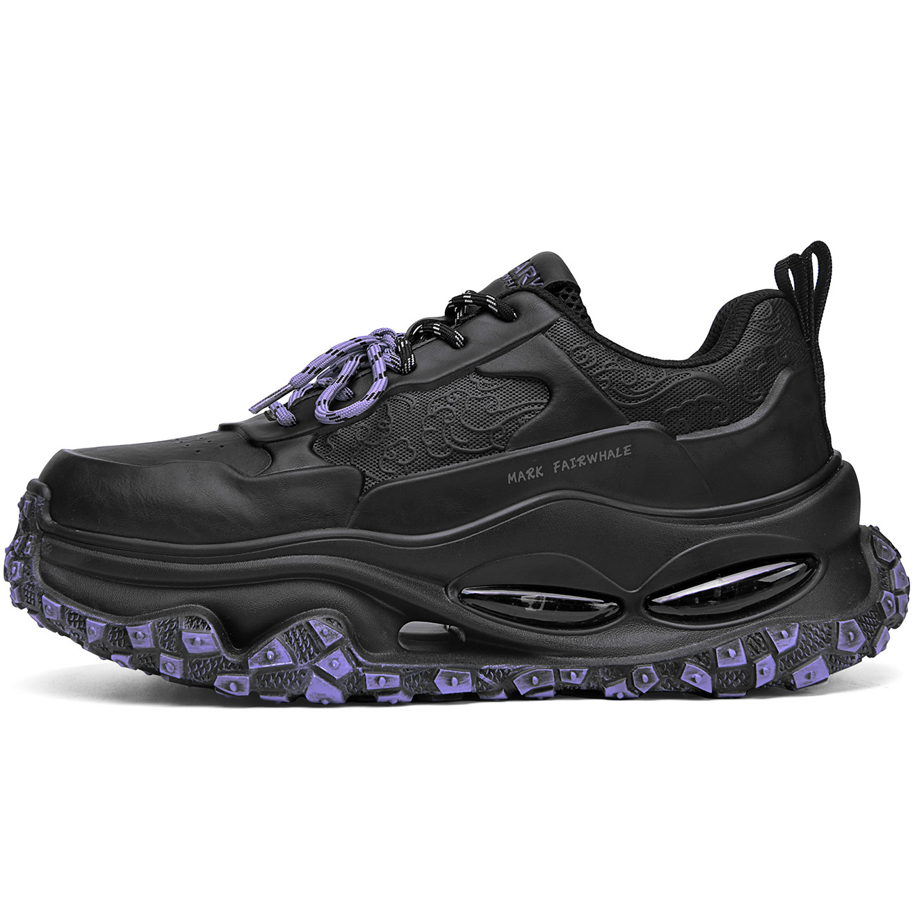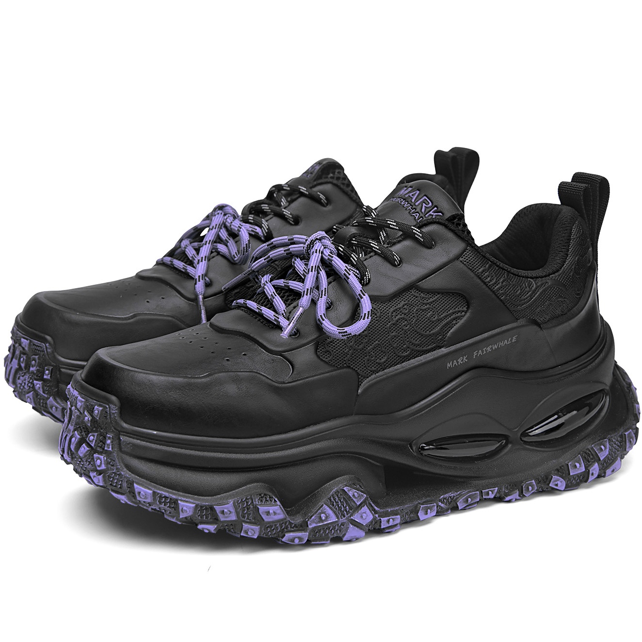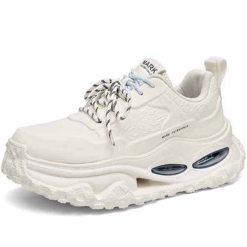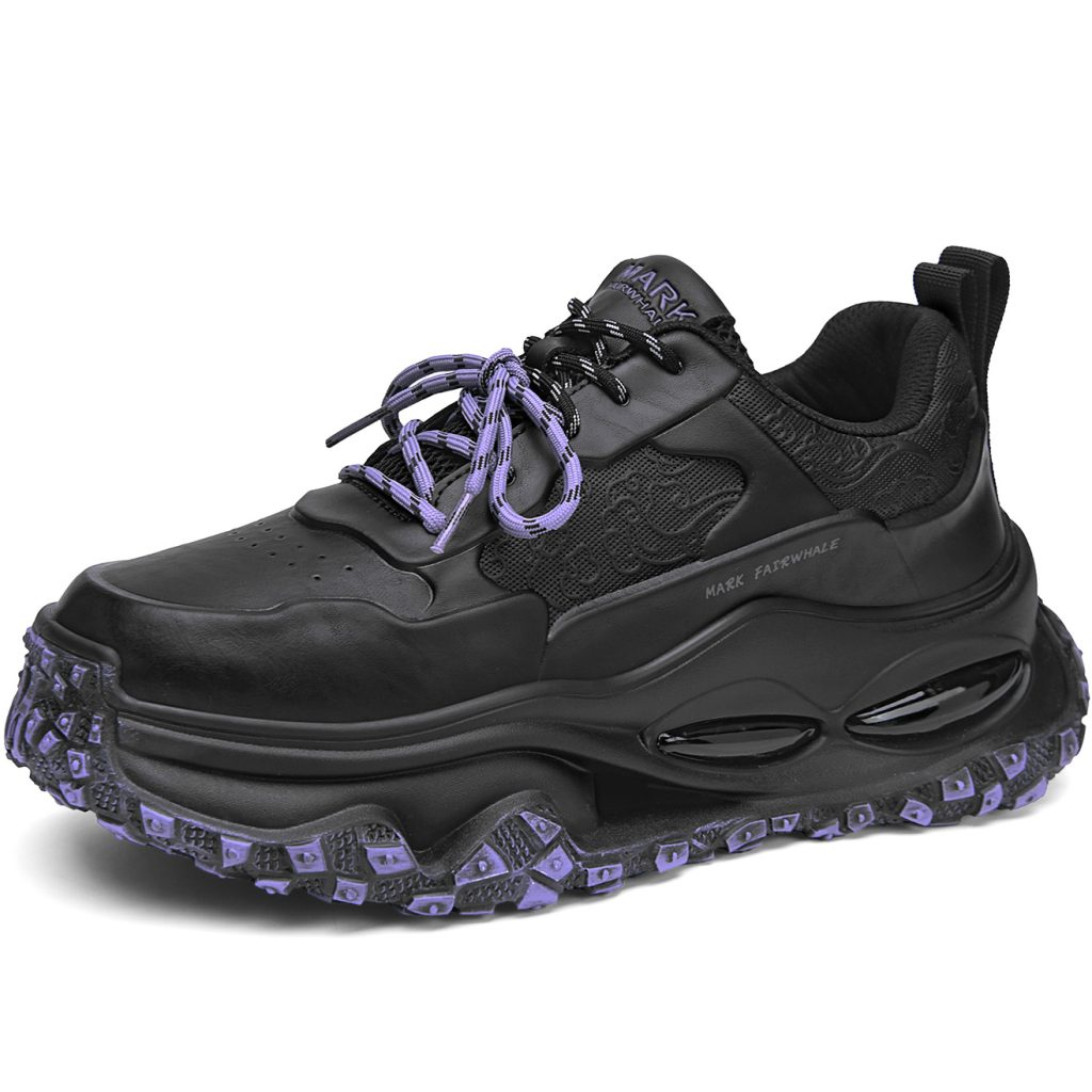 Shoe sole features a built-in transparent air cushion module, cleverly integrated into the thick sole structure. This design utilizes the cushioning properties of the air cushion to reduce pressure on the feet while walking and enhance comfort, without compromising the sleek look of the overall shoe design.