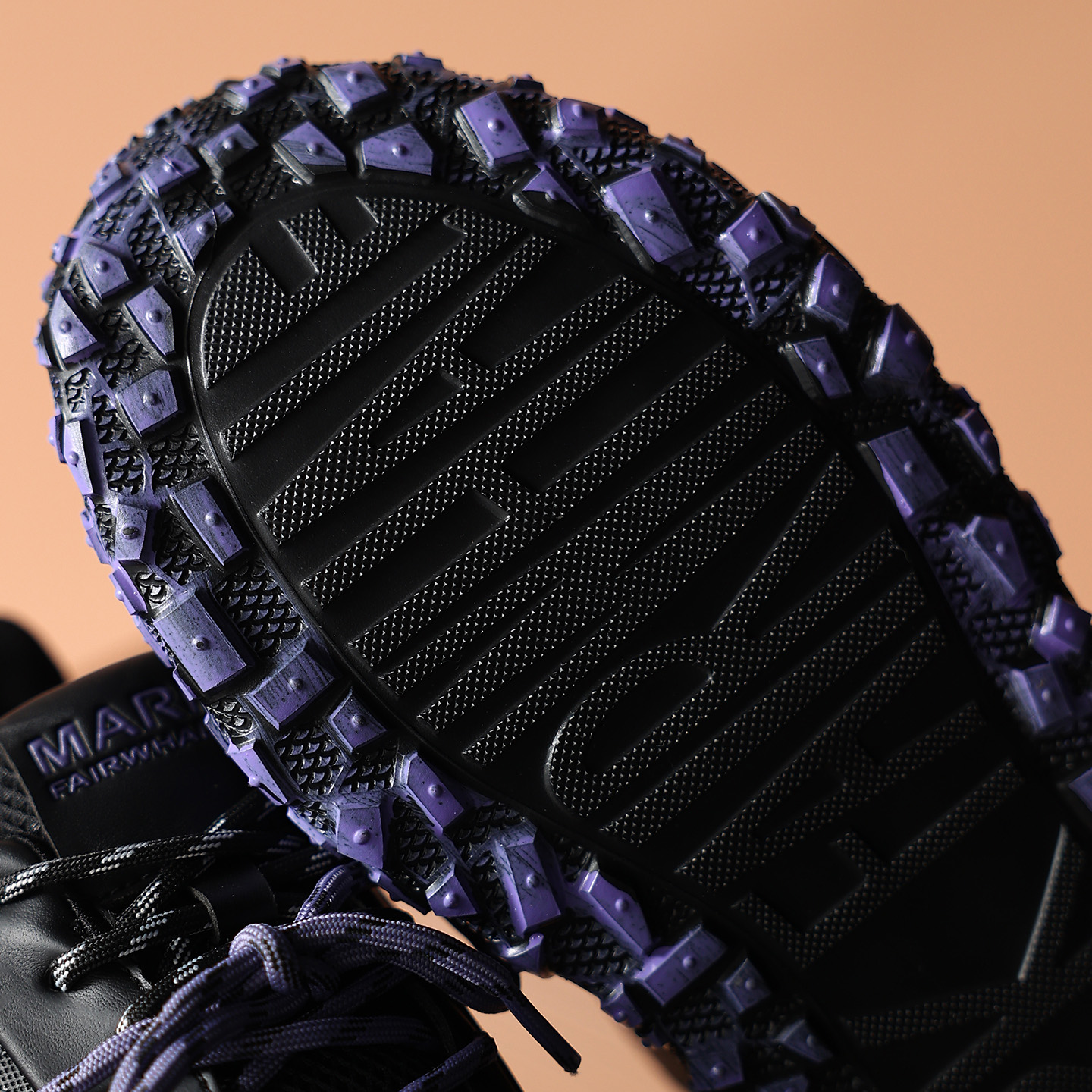 Sole design is quite striking, featuring a rugged, sawtooth pattern with raised textures, which not only enhances slip resistance and grip but also gives it a strong vintage outdoor feel.