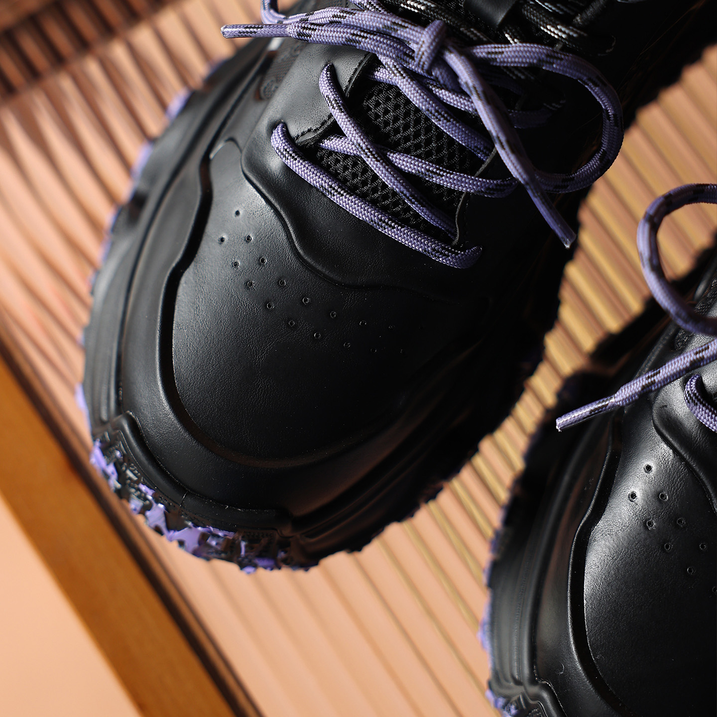 Toe area features finely perforated ventilation holes, distributed across the smooth upper material. This design maintains the shoe’s sleek appearance while allowing for better airflow, alleviating the stuffiness that can occur after prolonged wear.