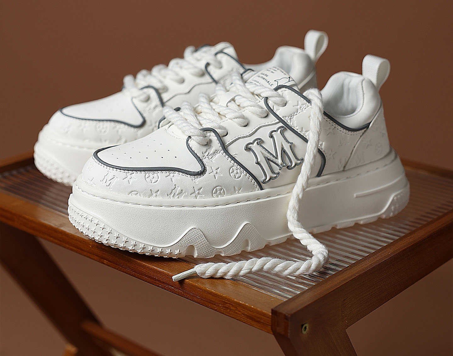 Available in two versatile color options and stand out with their thick rope laces and breathable design, perfectly blending textured details with all-day comfort. Featuring refined embossed details and a striking 3D “M” logo on the upper, they are ideal for everyday casual wear, effortlessly complementing street style looks, coffee breaks, or relaxed weekend outings.