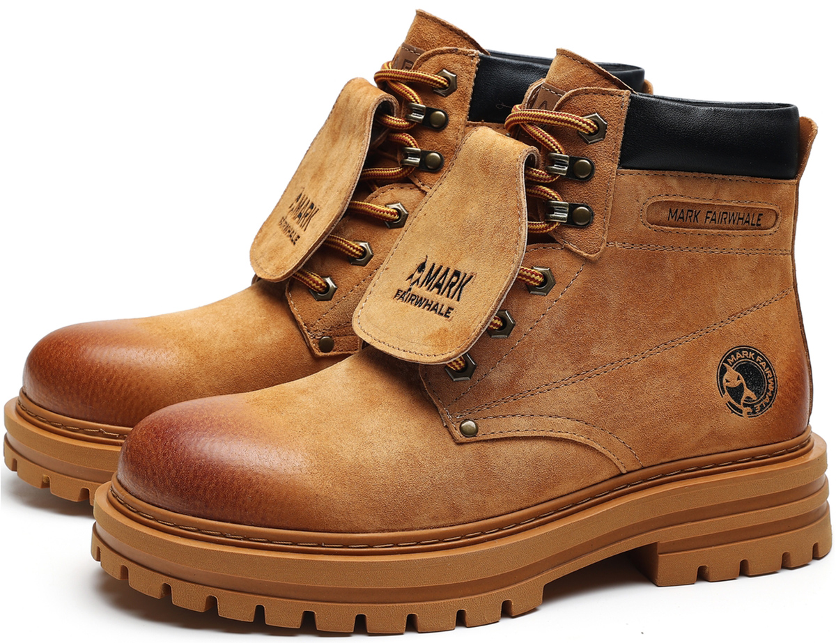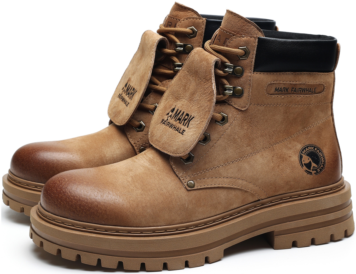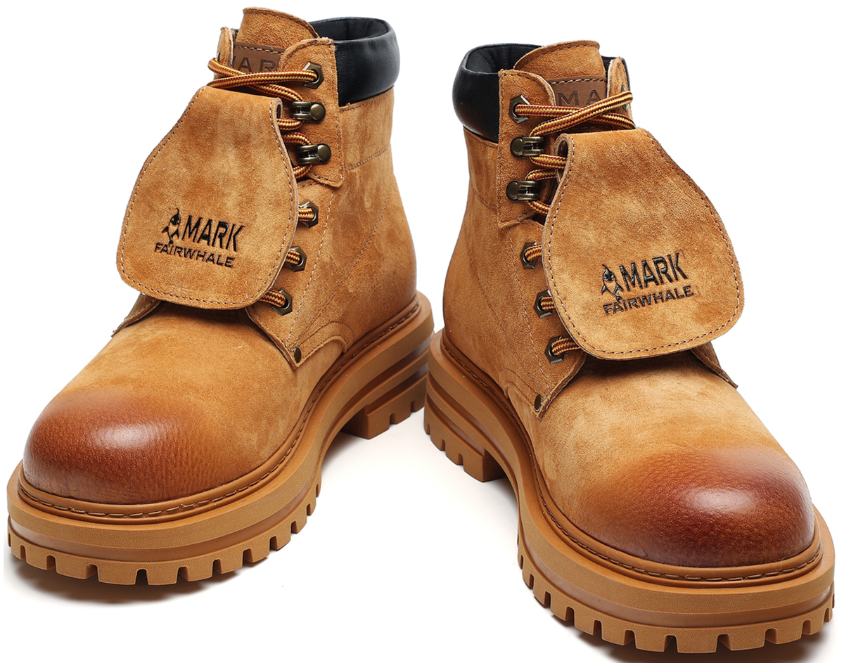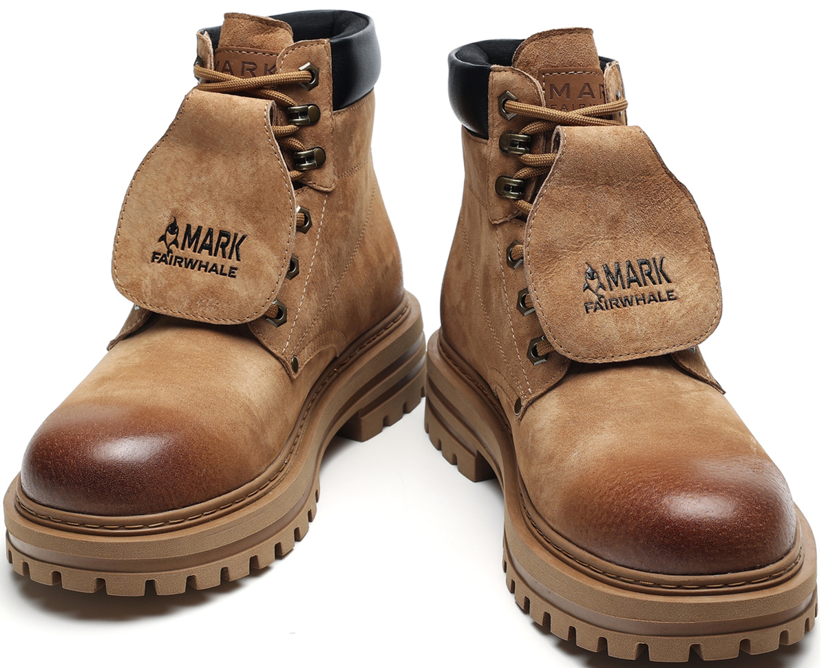 Gradient Toe Retro Suede Mid High Boots with Metal Eyelets and Tongue Flap