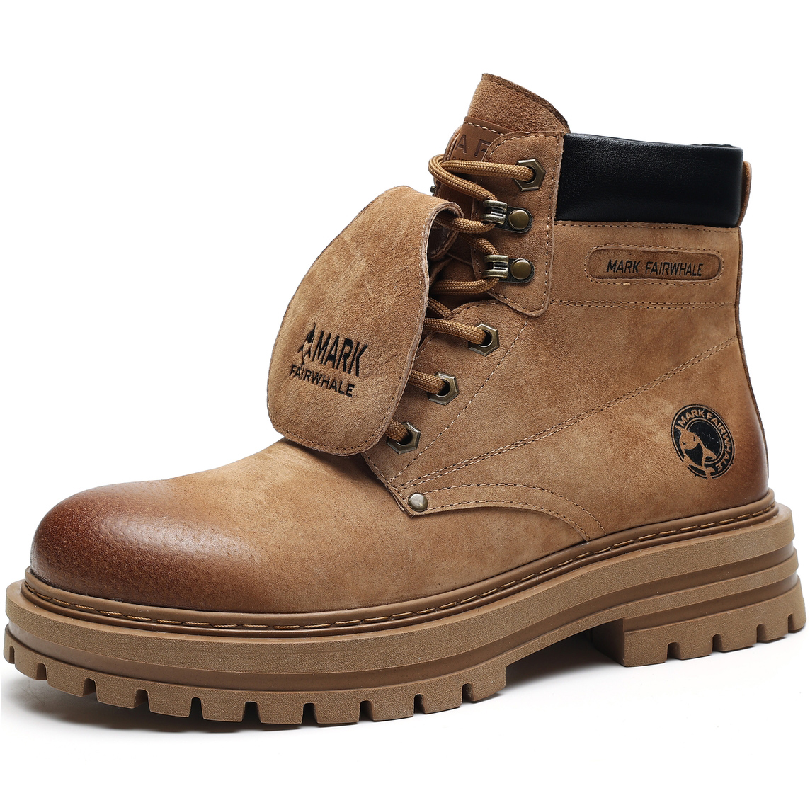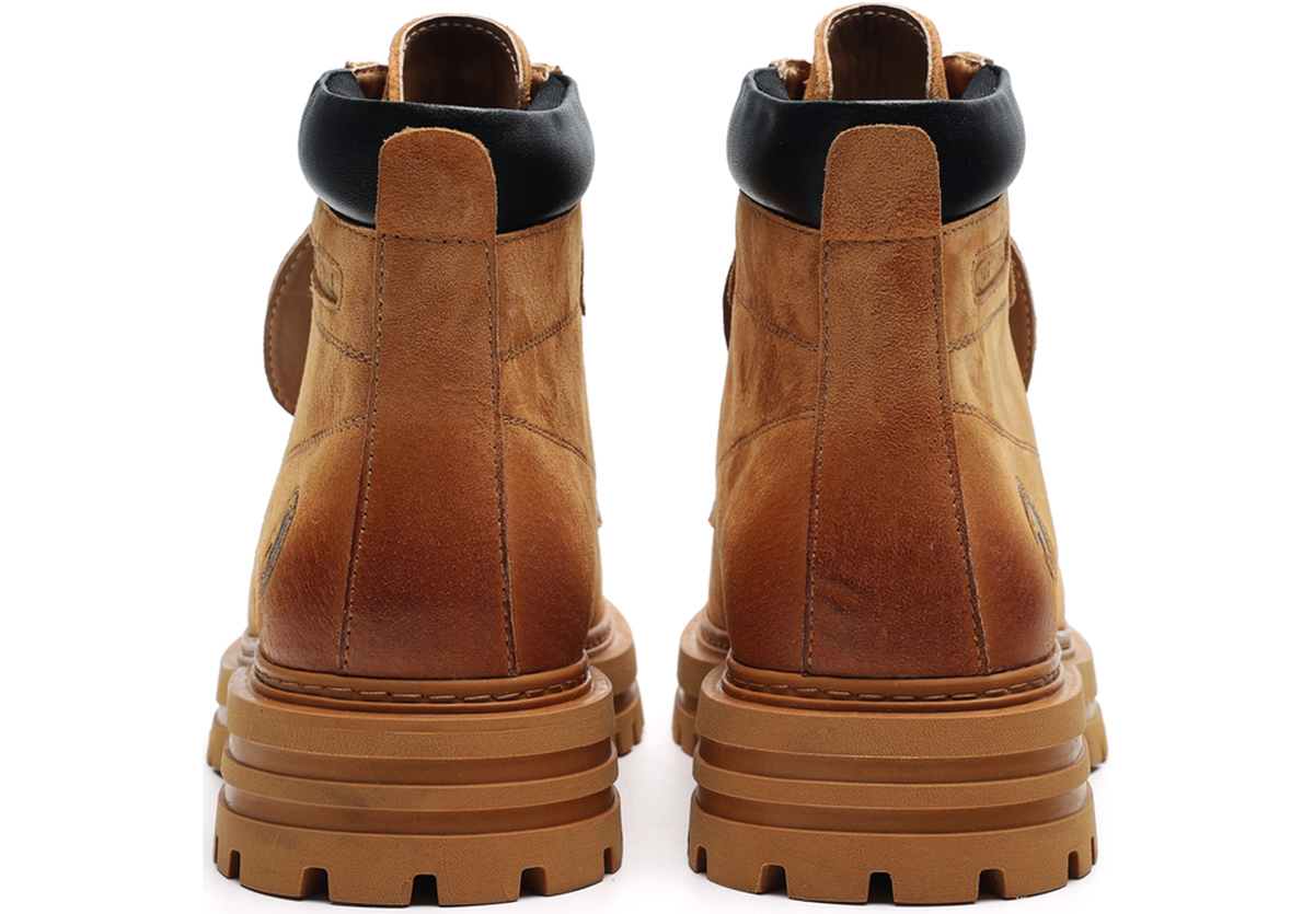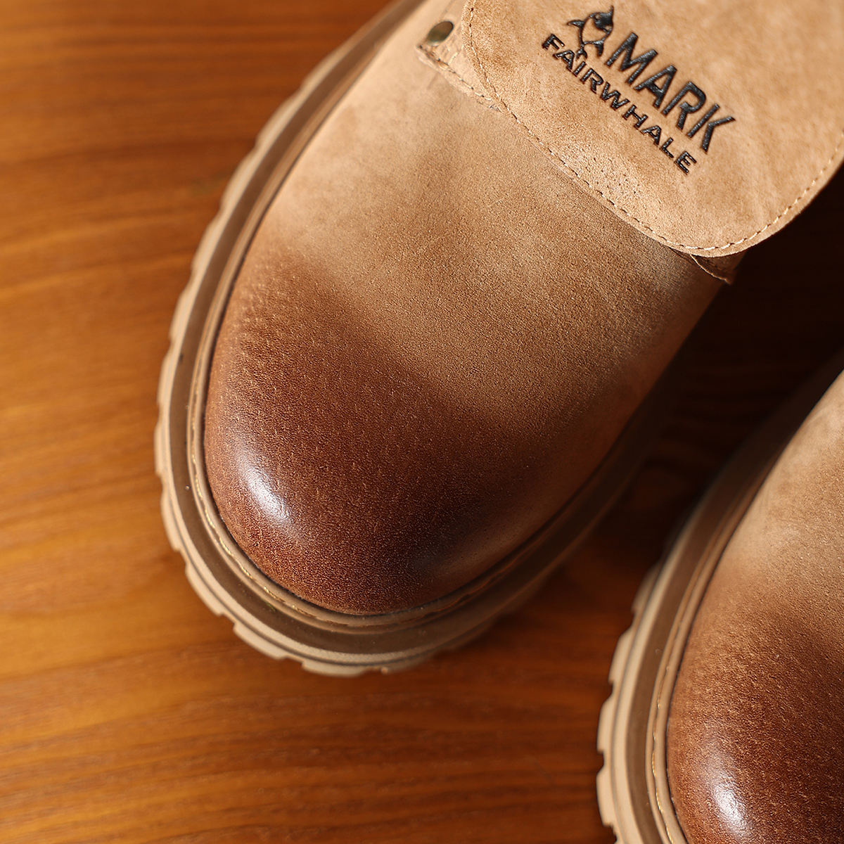 Gradient Toe Retro Suede Mid High Boots with Metal Eyelets and Tongue Flap