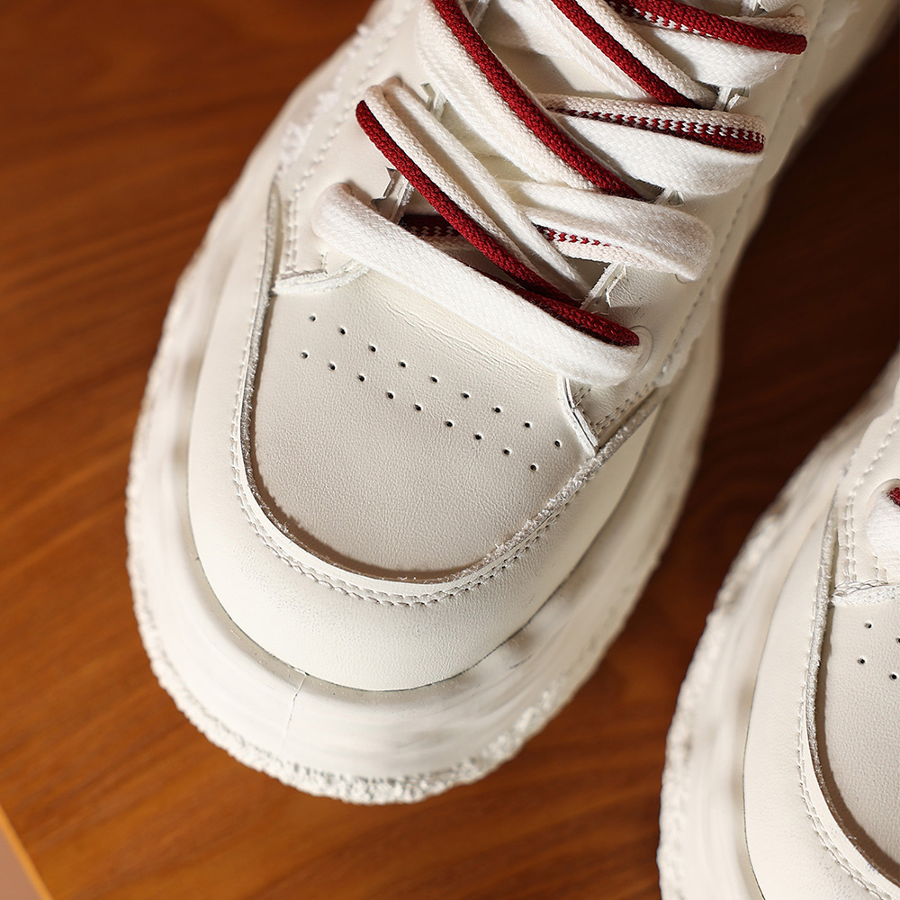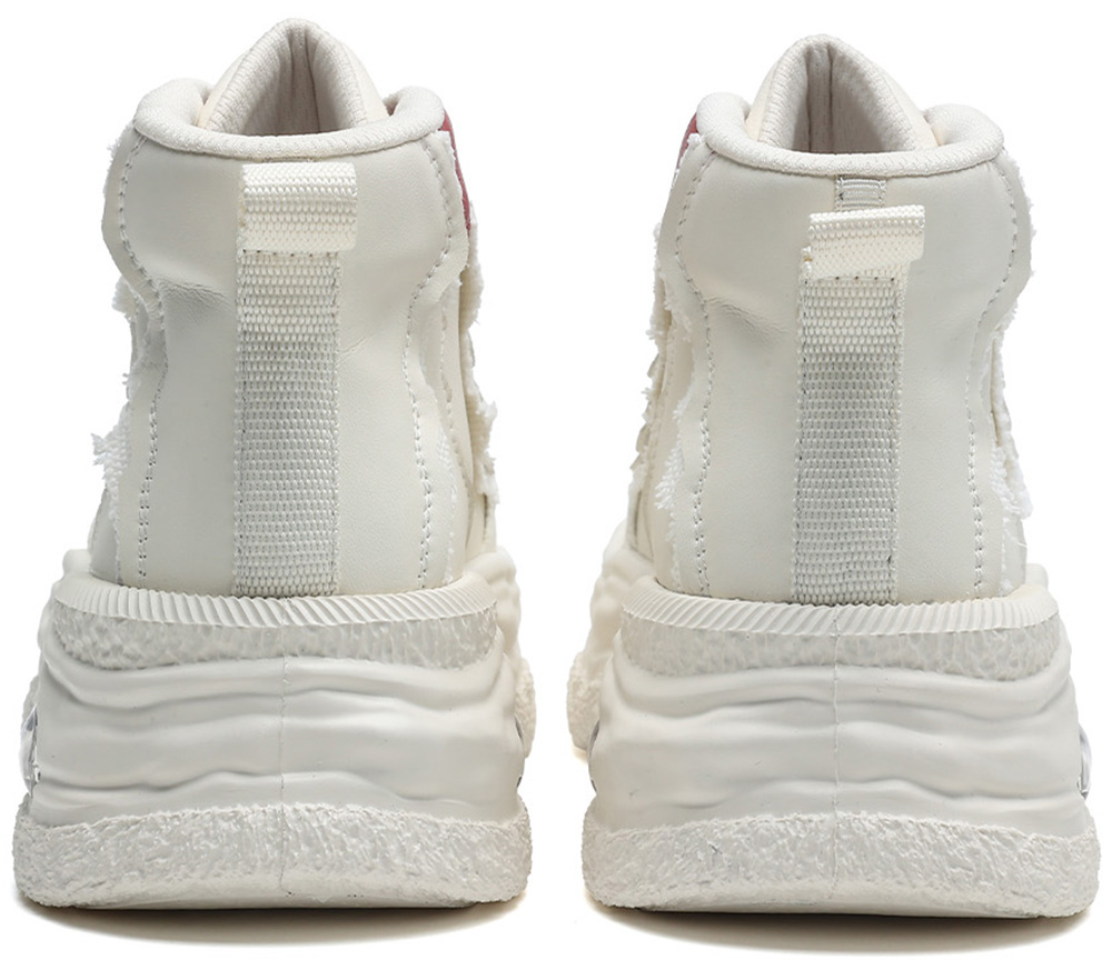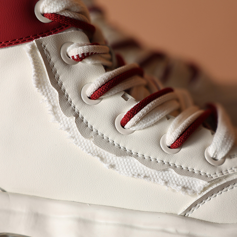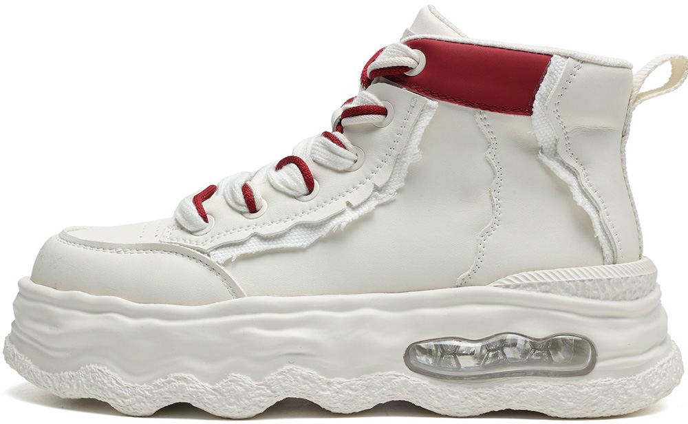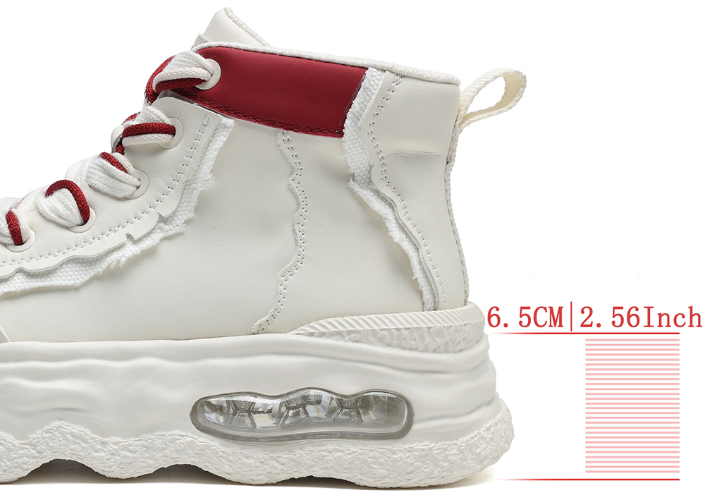 These shoes are crafted for style and performance, ideal for daily wear and skateboarding sessions. Made of premium leather upper, they deliver durable wear and a sleek, sophisticated look that matches various outfits effortlessly. The chunky sole design boosts height while ensuring steady footing, paired with a supportive air cushion sole to absorb impact and reduce fatigue, keeping your feet comfortable all day long. Featuring exquisite stitched panel upper, the shoes showcase unique craftsmanship and enhance structural stability, not easy to deform after long-term use. Comes with two tone laces, you can adjust the tightness freely and add a trendy touch to your overall look. Whether you’re hitting the skate park or stepping out on the street, these high top leather skate shoes balance fashion and functionality perfectly, becoming your go-to choice for casual and sporty styles.