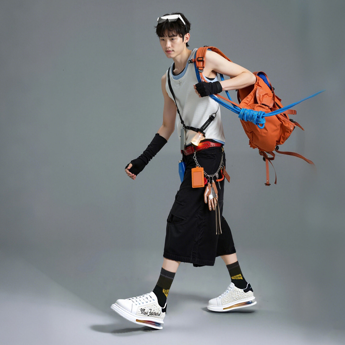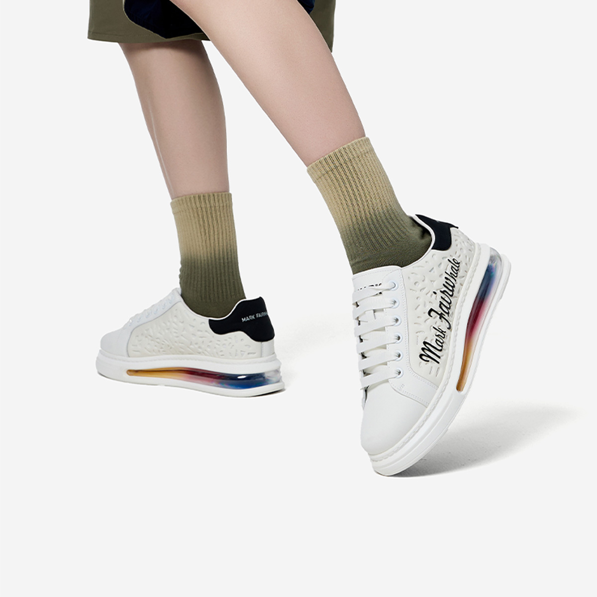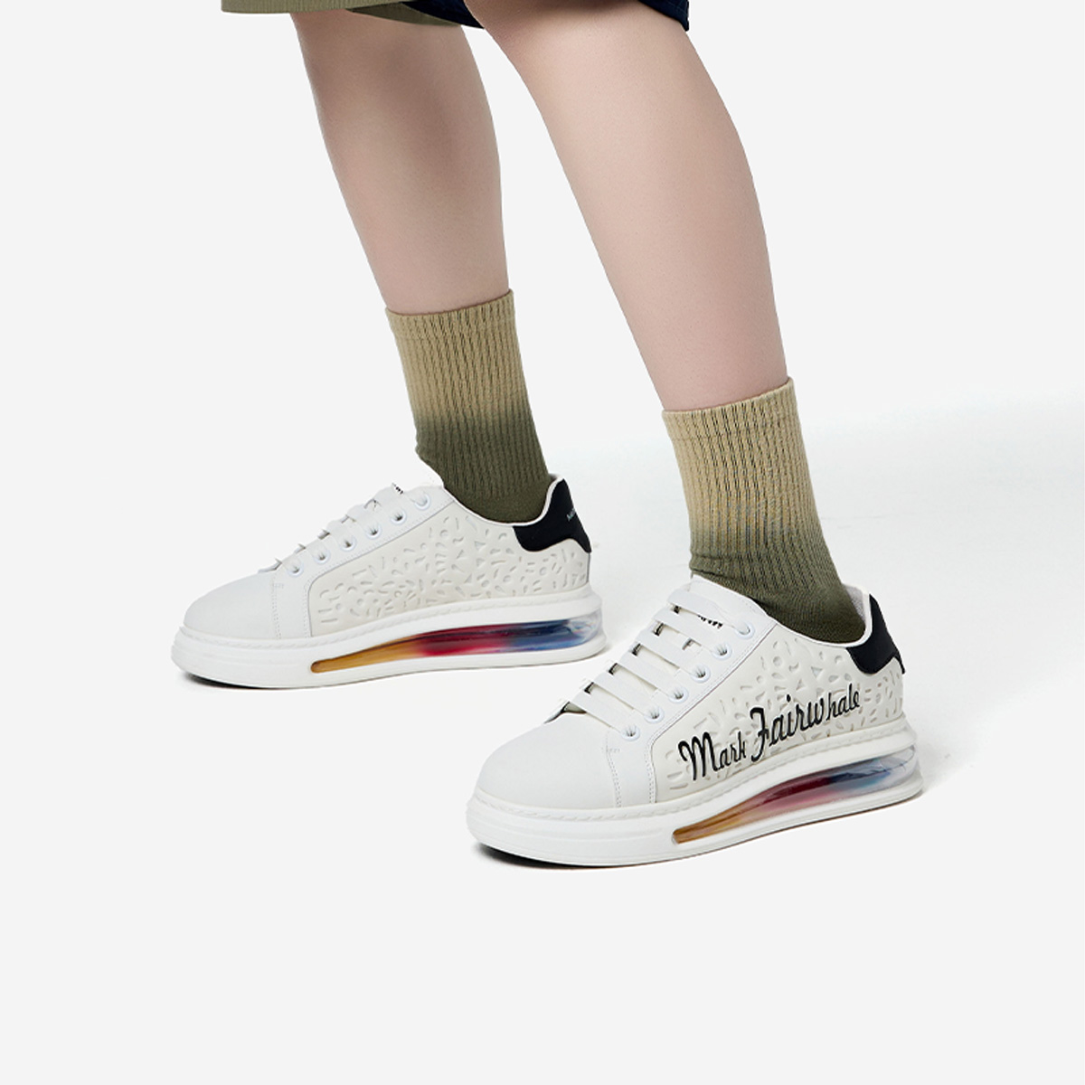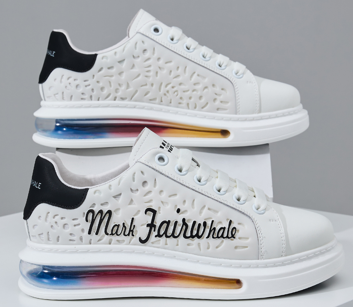 Iridescent Translucent Air Cushion Chunky Perforated Skate Shoes with Raised Logo