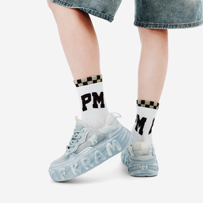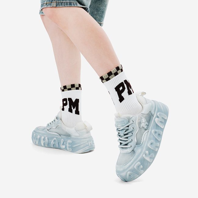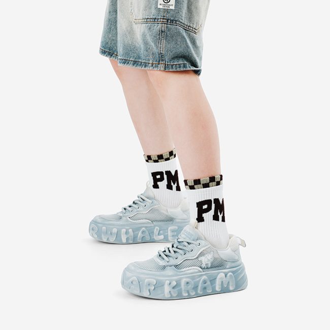 Low Top Distressed Mesh Platform Skate Shoes with Pattern
