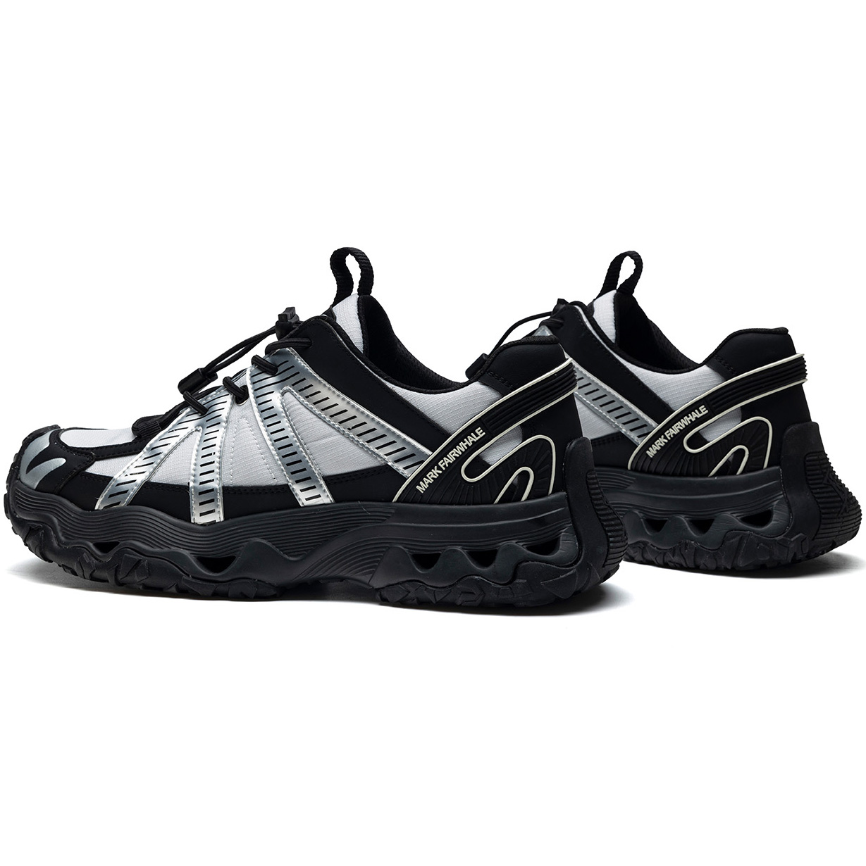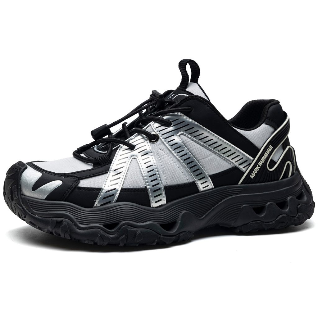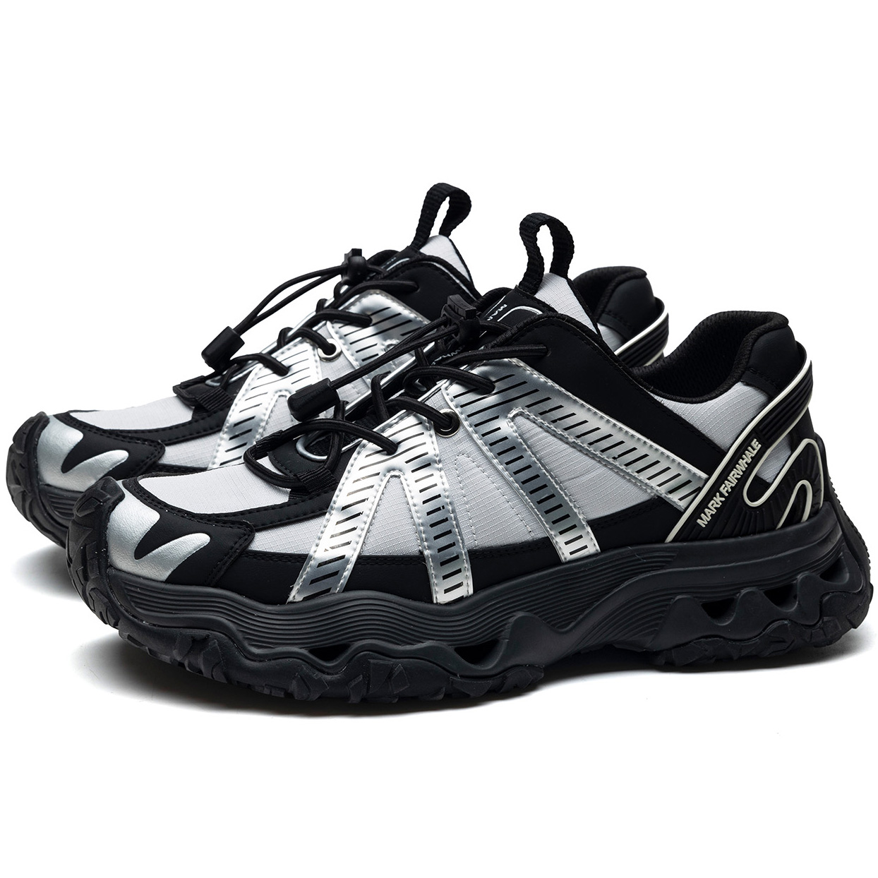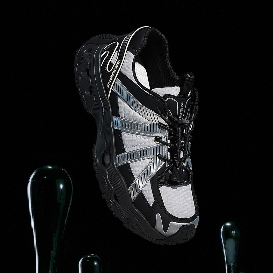 - The shoe features a sleek mecha-inspired silver side trim that elevates its futuristic vibe. Equipped with a practical drawstring spring cord lock, it eliminates the hassle of tying shoelaces—just pull to secure the laces and adjust the tightness flexibly for a customized fit, ensuring easy on and off every time.