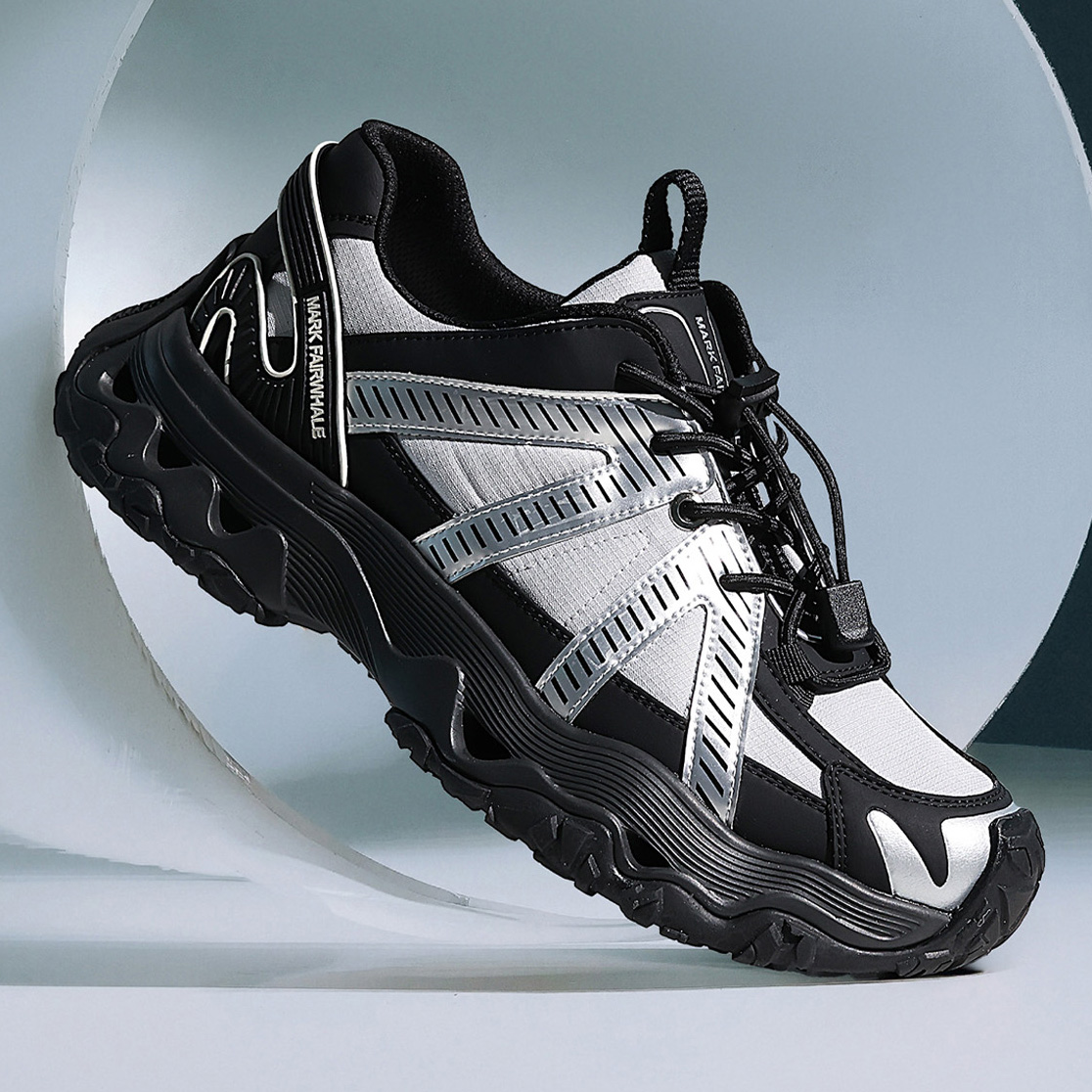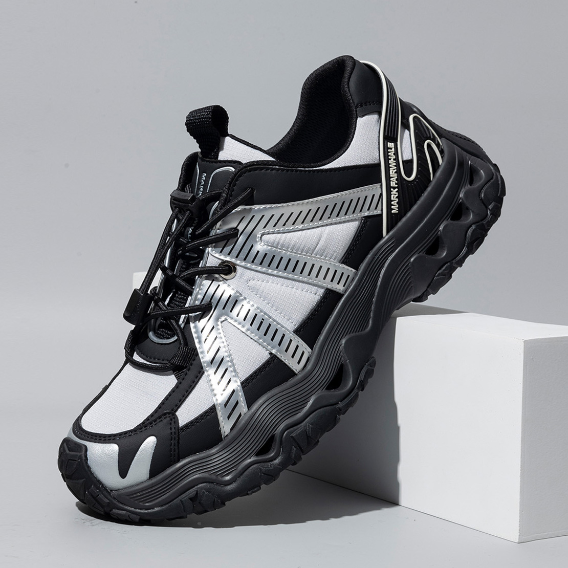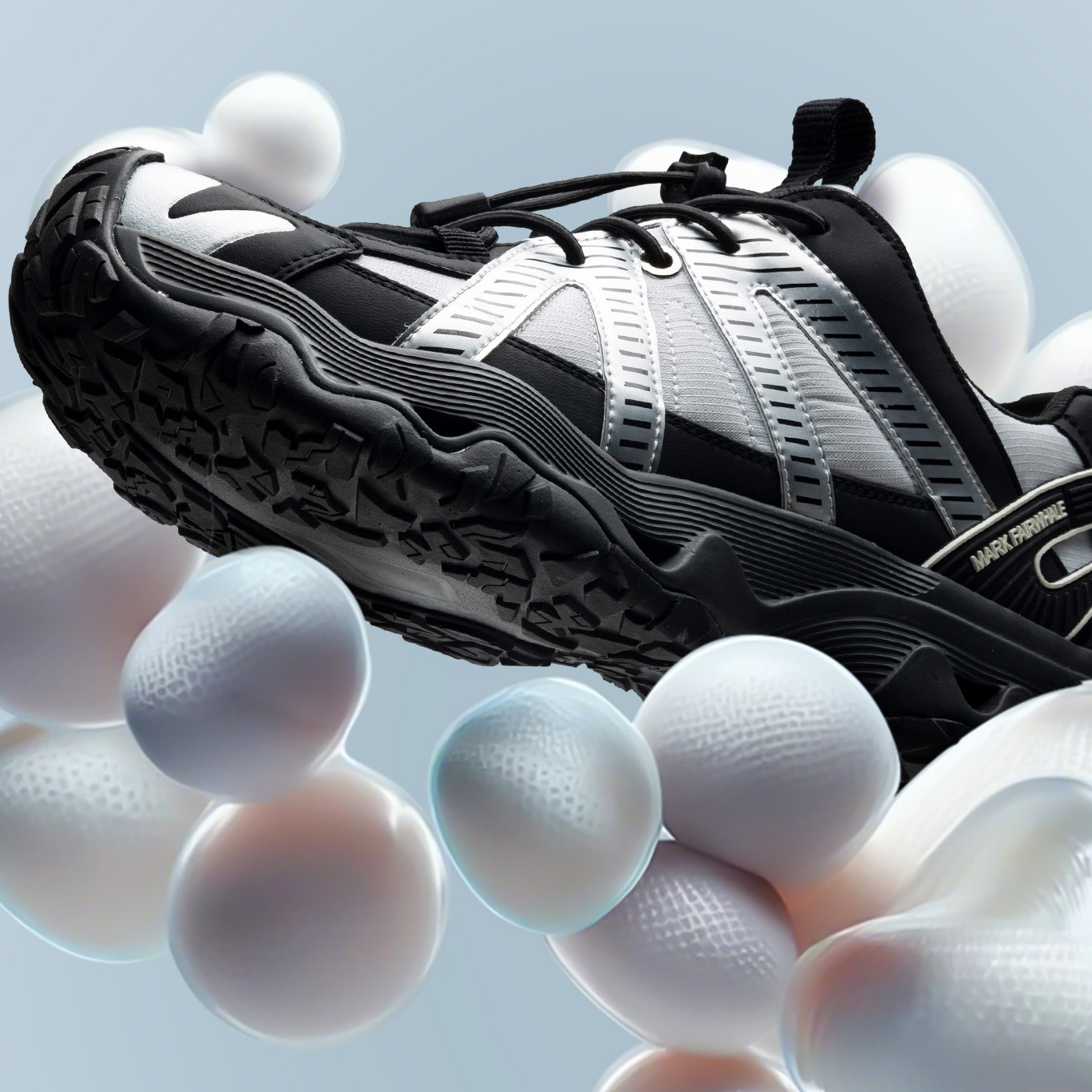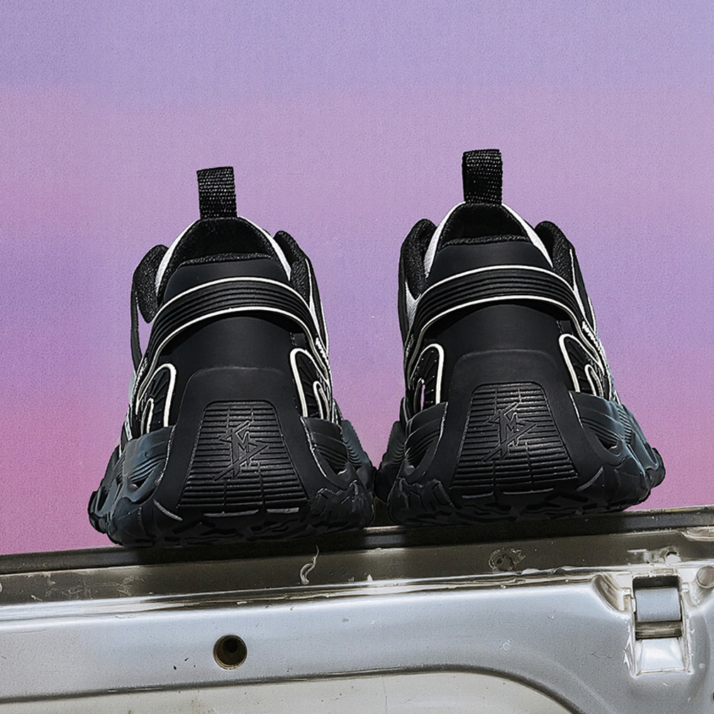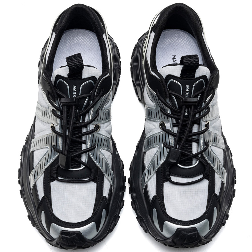 - The shoe features a sleek mecha-inspired silver side trim that elevates its futuristic vibe. Equipped with a practical drawstring spring cord lock, it eliminates the hassle of tying shoelaces—just pull to secure the laces and adjust the tightness flexibly for a customized fit, ensuring easy on and off every time.