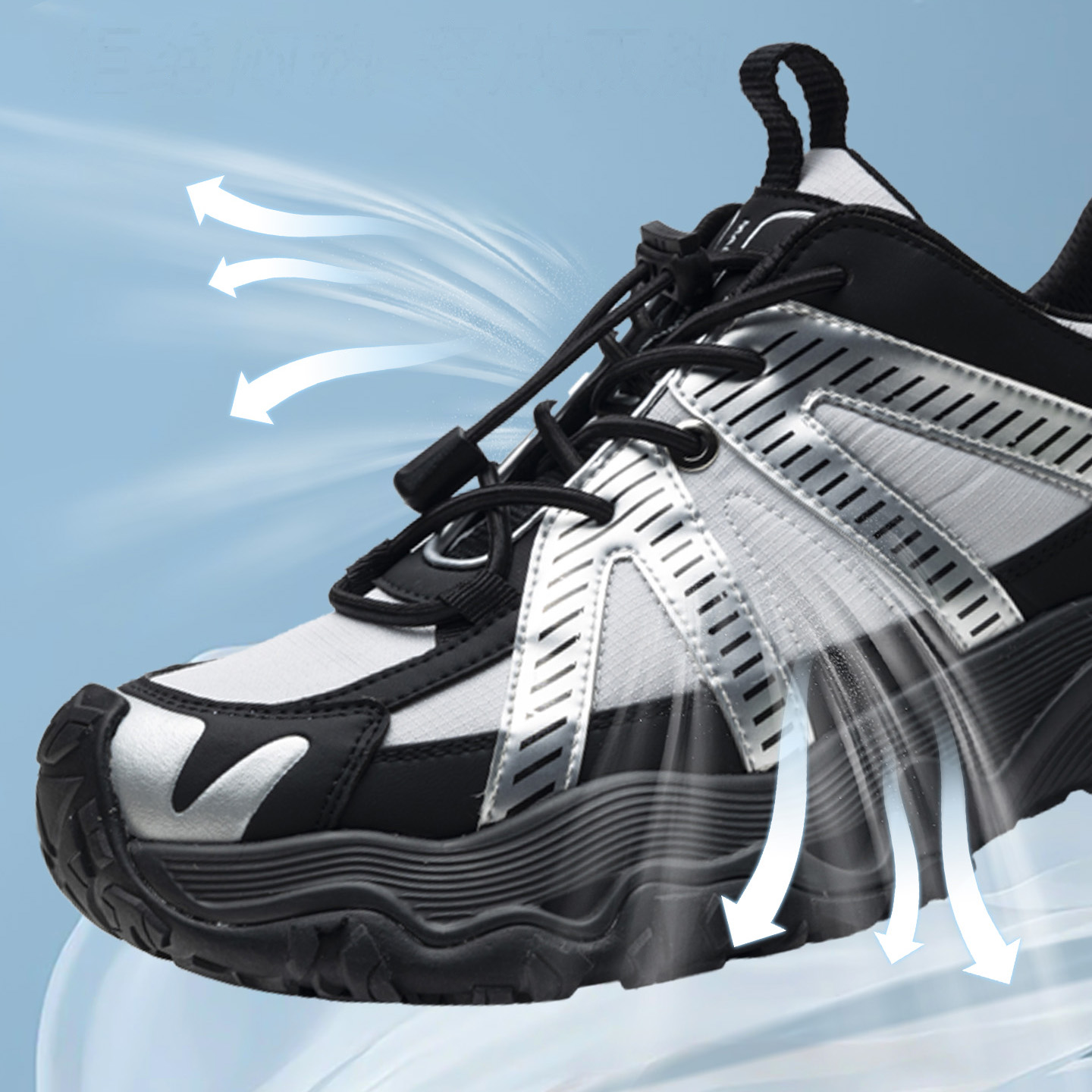 This shoe combines mecha-inspired aesthetics with outdoor functionality. Boasting a wave-patterned sole, drawstring spring cord lock, and breathable & quick-draining design, it delivers both trendy looks and lightweight, durable wear. The 4CM height boost also enhances your silhouette, making it ideal for both daily wear and outdoor adventures.