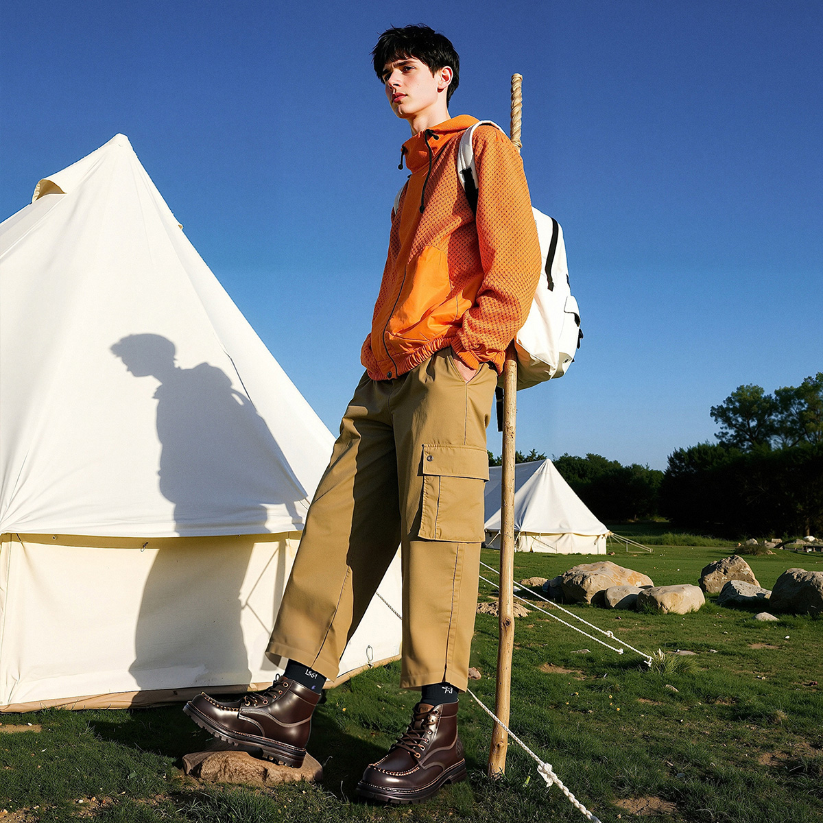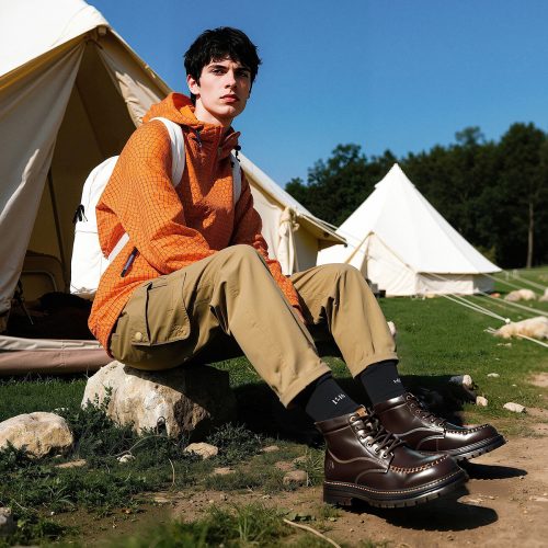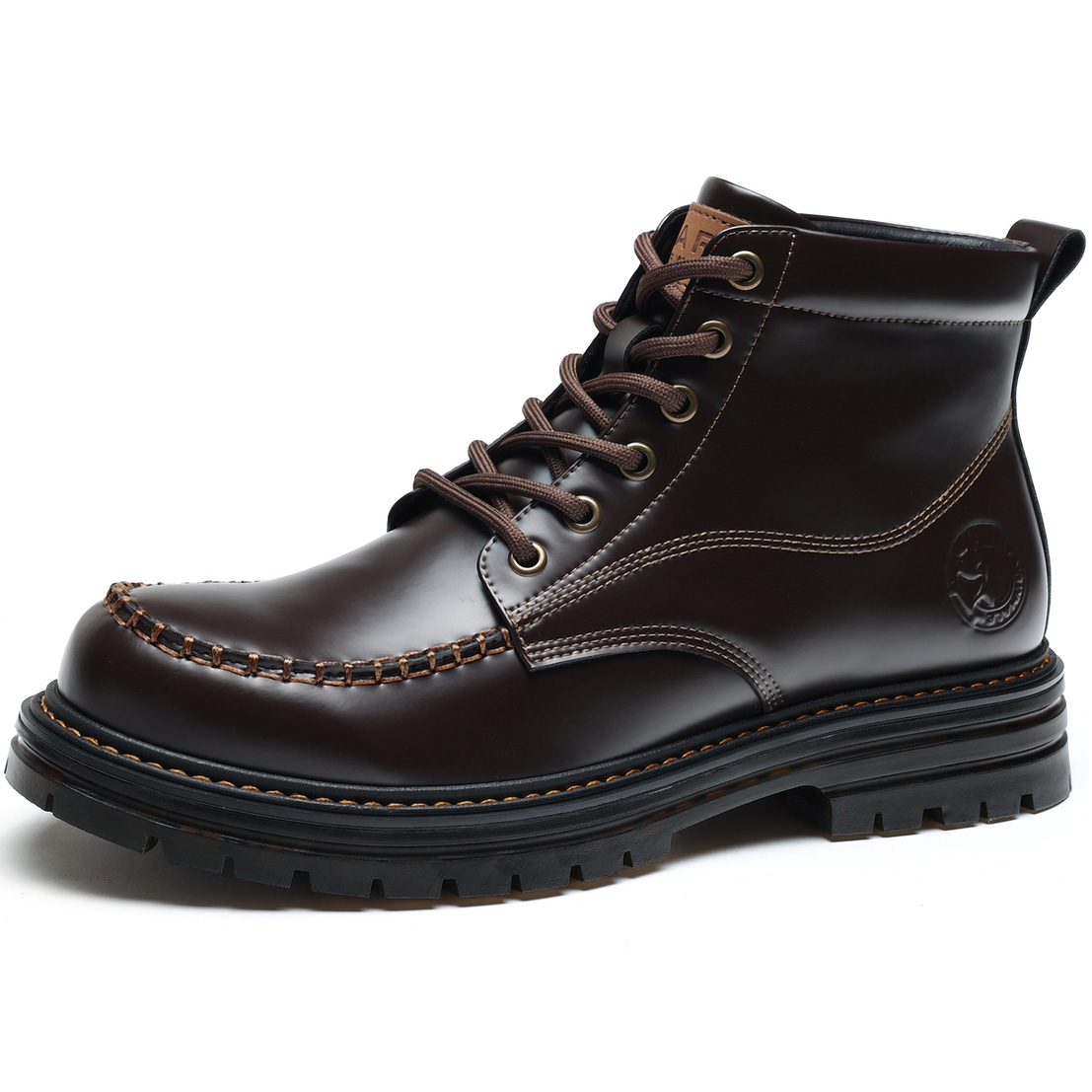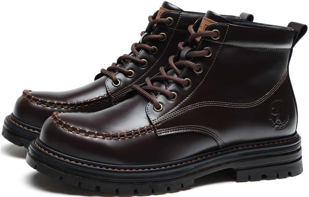 Mens 6 Eyelets Lace Up Leather Moc Toe Hiking Work Boots