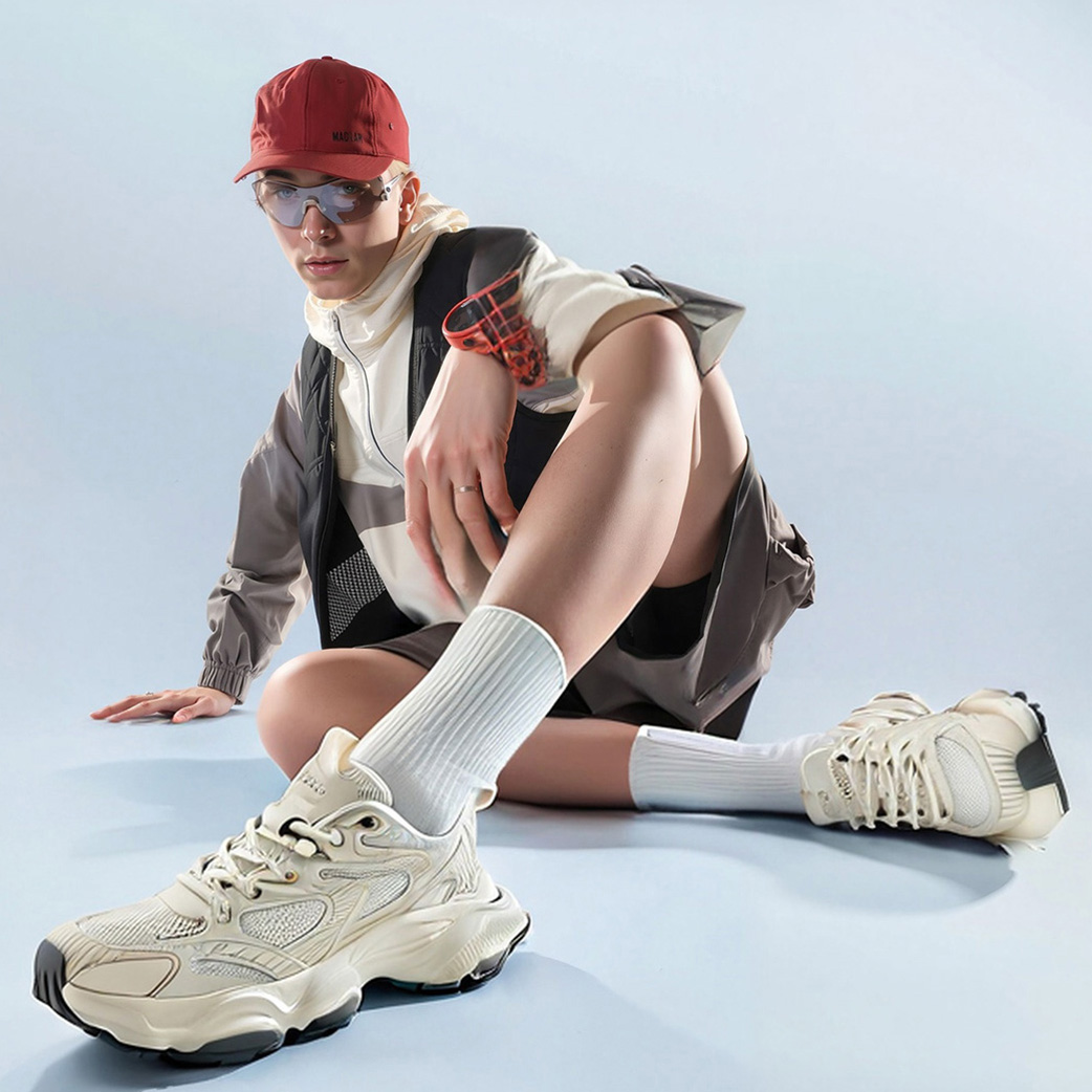 - The multi-layer mesh upper promotes continuous airflow, effectively preventing stuffiness during extended wear.
