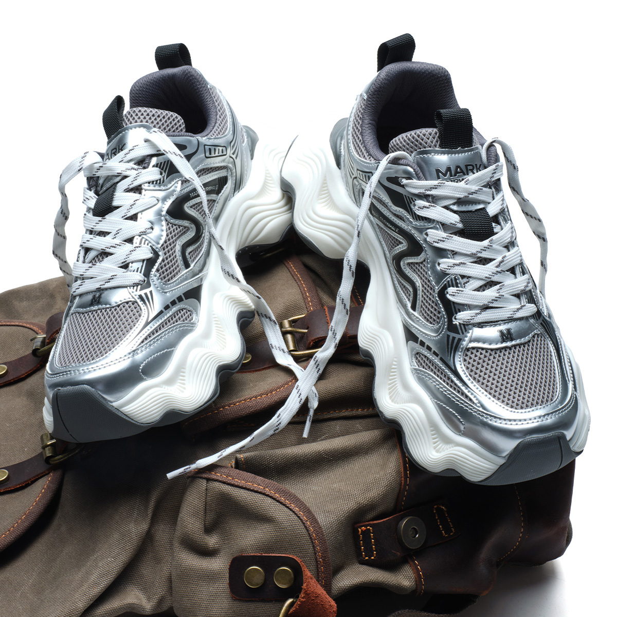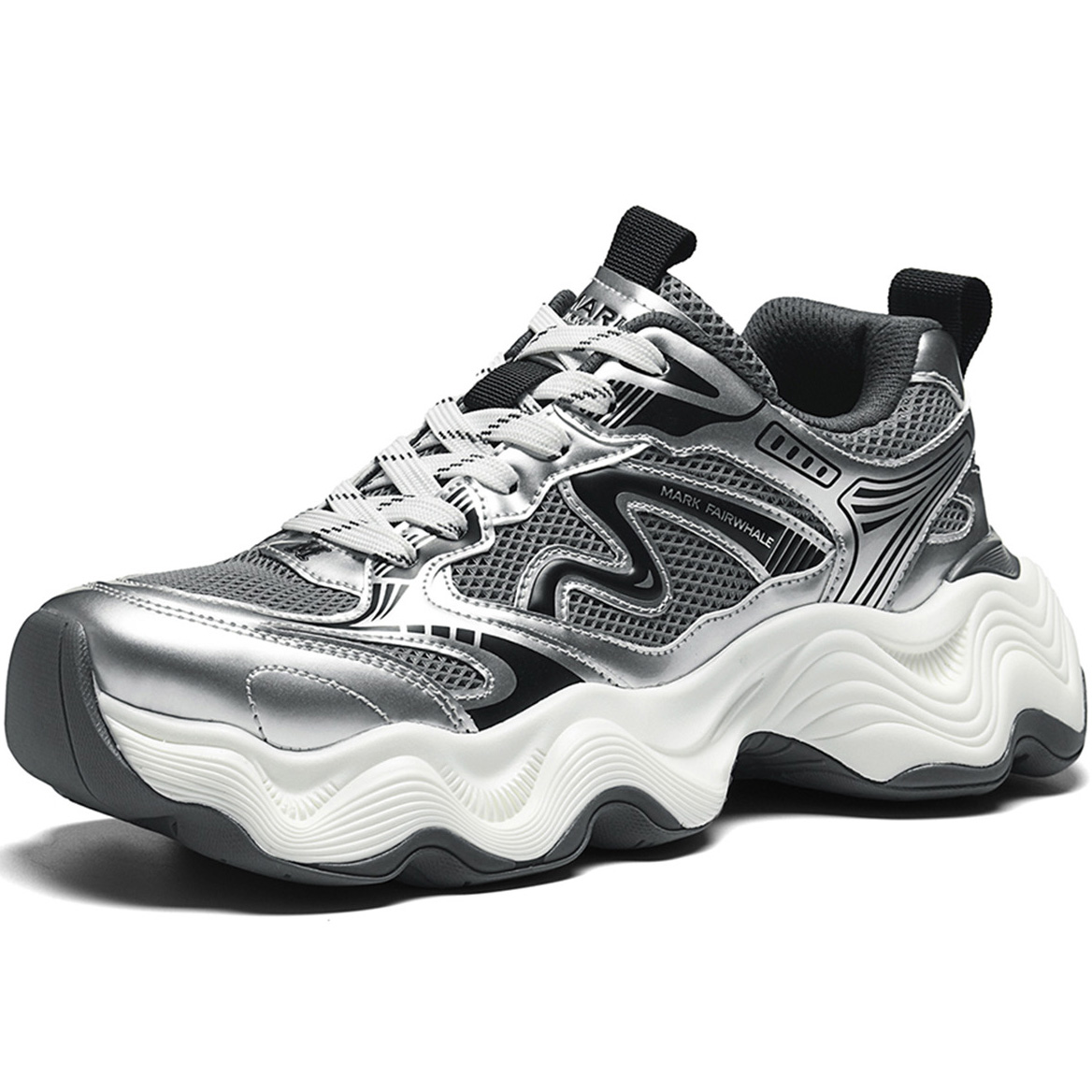 Mens Athletic Wavy Sculpting Mesh Dad Shoes with Widened Outsole