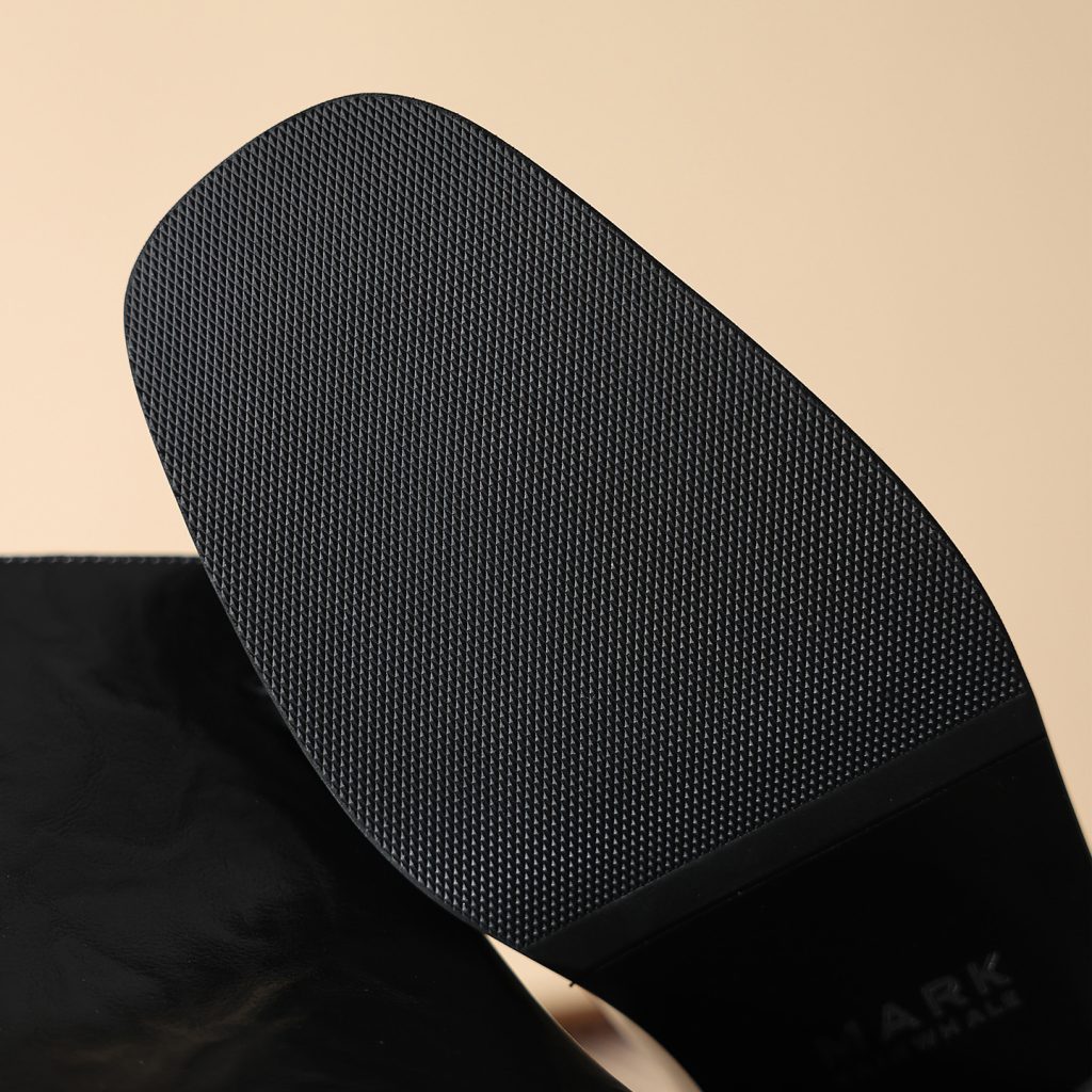 The neat square toe design fits most foot shapes and reduces the perceived bulkiness of the shoe, offering a simple style that also flatters the foot proportions.