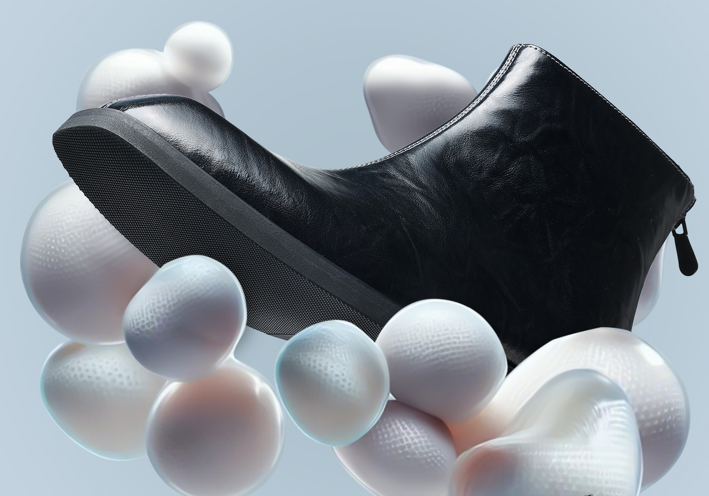 - The upper is made of glossy leather with a wrinkled texture, combining both shine and a unique tactile feel.