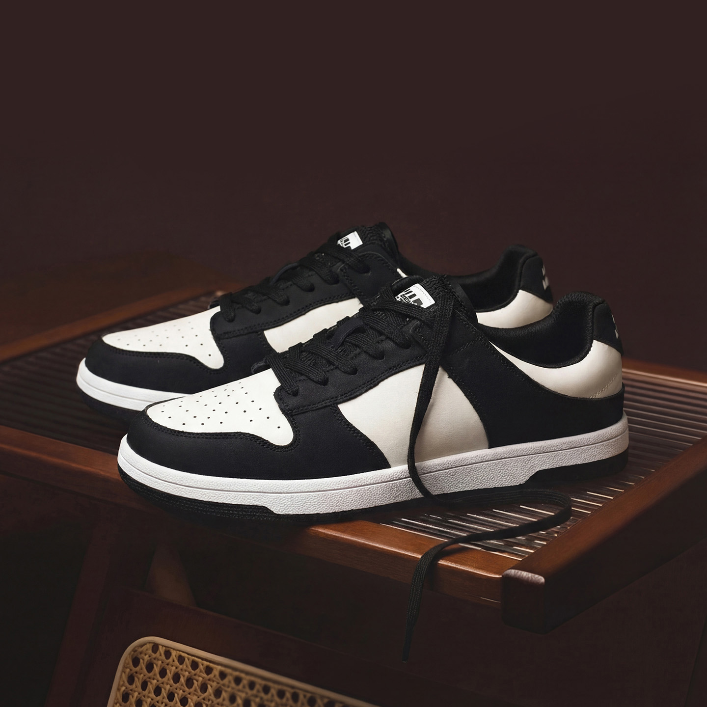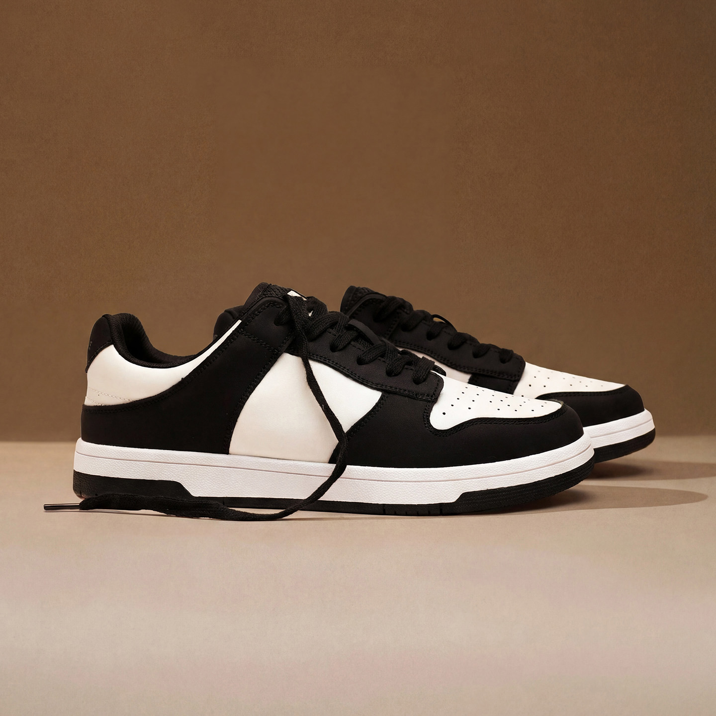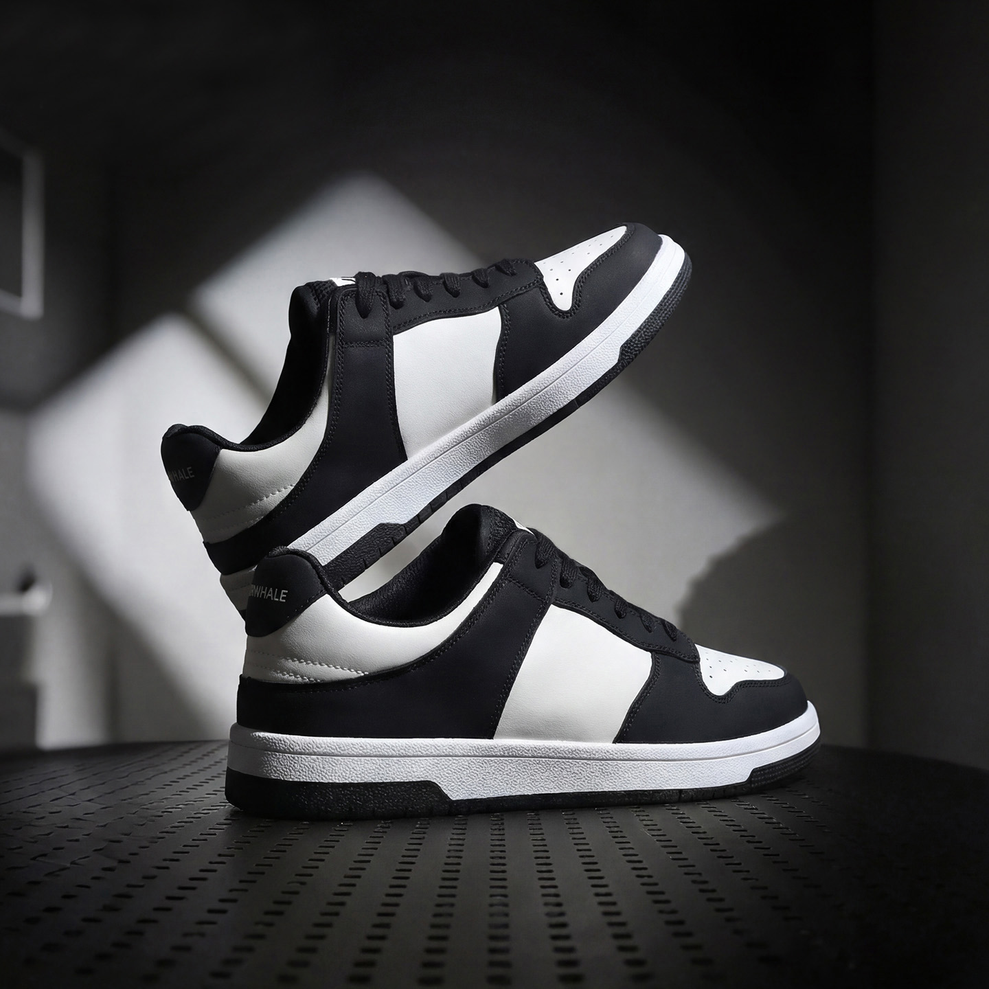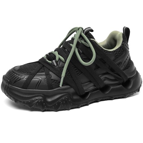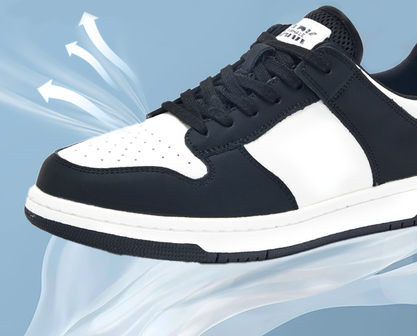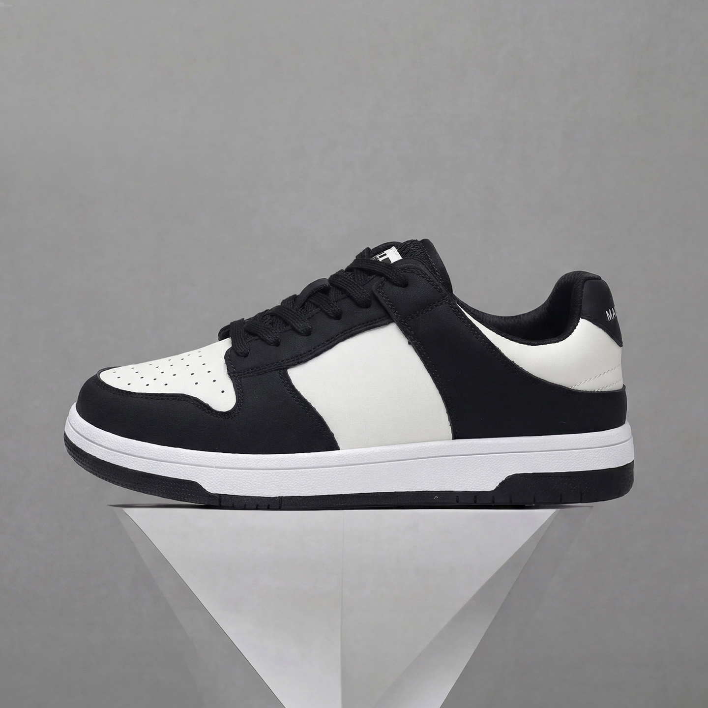Mens Black and White Color Block Breathable Low Top Sneakers
