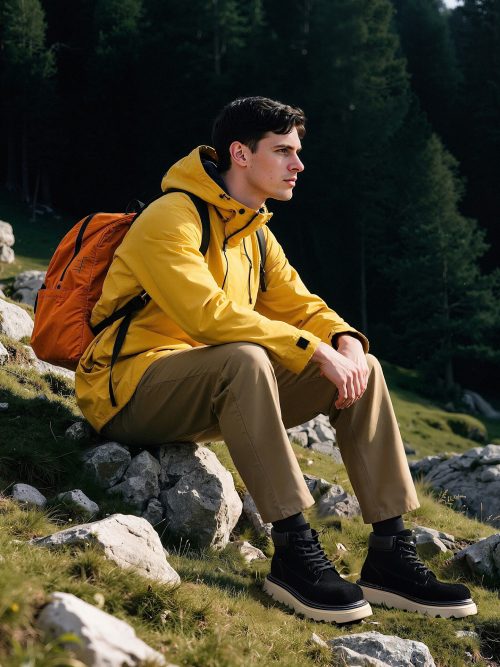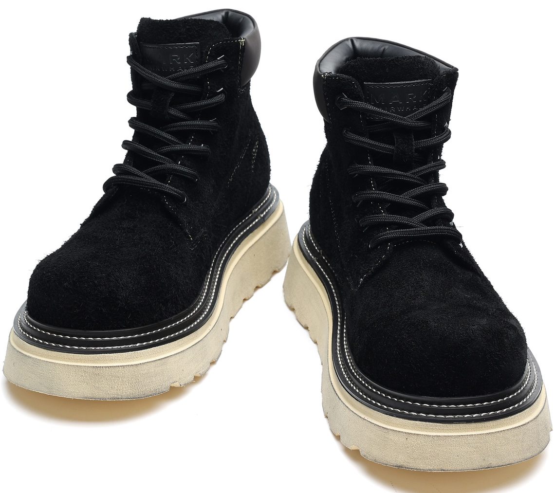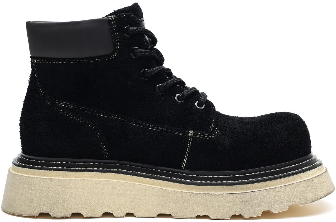 Mens Black Lace Up Suede Platform Boots with Leather Collar