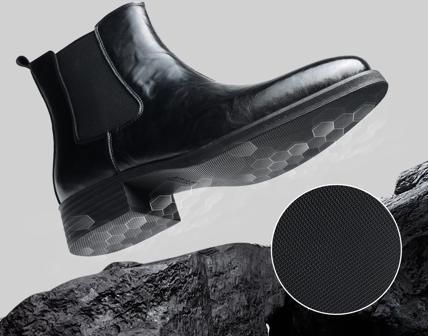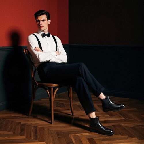 - Style: Pointed-toe chelsea boots with elastic side panels and a heel pull tab