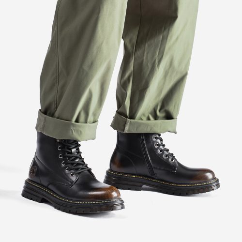 Mens Black Waterproof Jadon Leather Platform Lace Up Doc Martens Boots