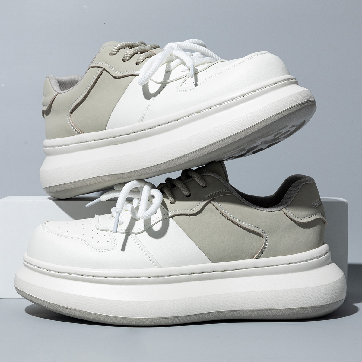 These color-blocked platform shoes are available in black and gray. Its simple and stylish color-blocking design perfectly combines the effects of making you look taller and slimmer, creating a unique appearance.