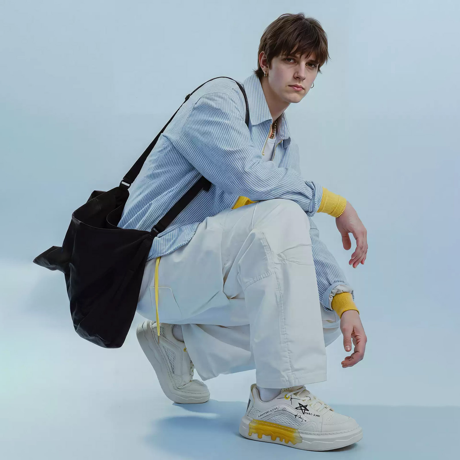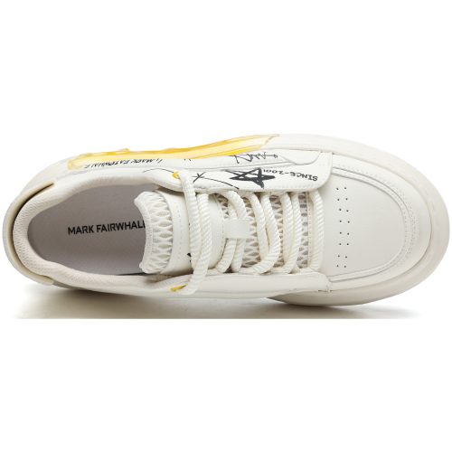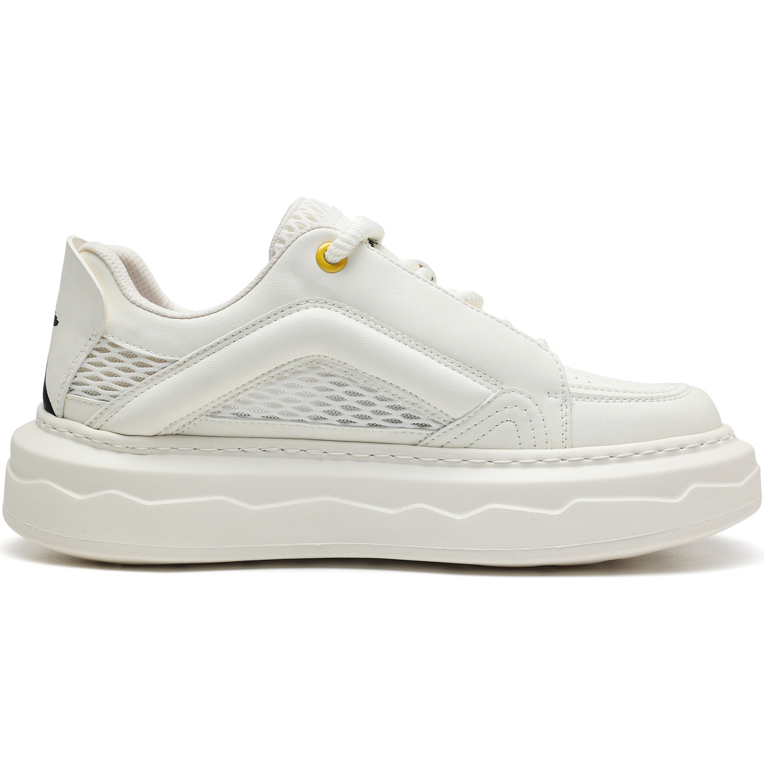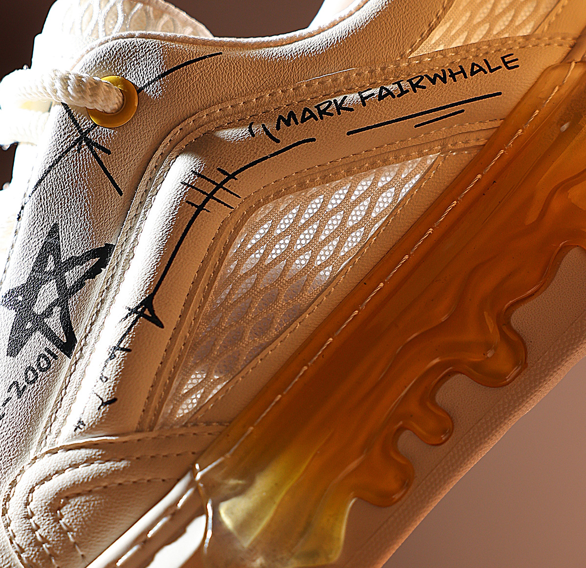 If so, this one may be your type! Versatile white color for your everyday wear. Graffiti design stands out for your trendy taste. One gradient yellow drop glue sticker on the outside shoe heel brings a strong insight effect. Leather and mesh blocking ensures the stable shape and the breathability.