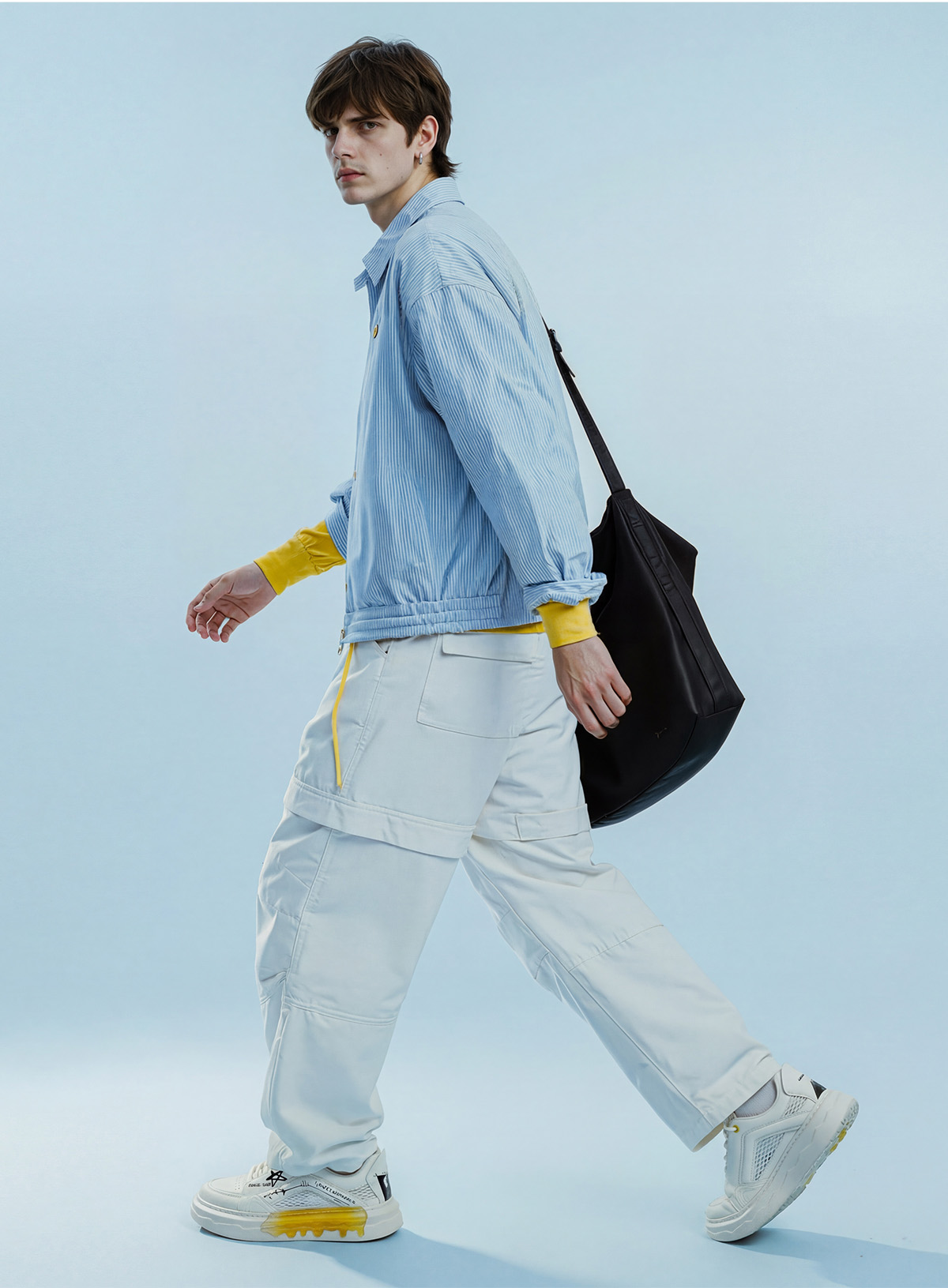 - Design: low top, deconstructionist shoelaces system, lace up, glue sticker on outsole, fabric block, color block.