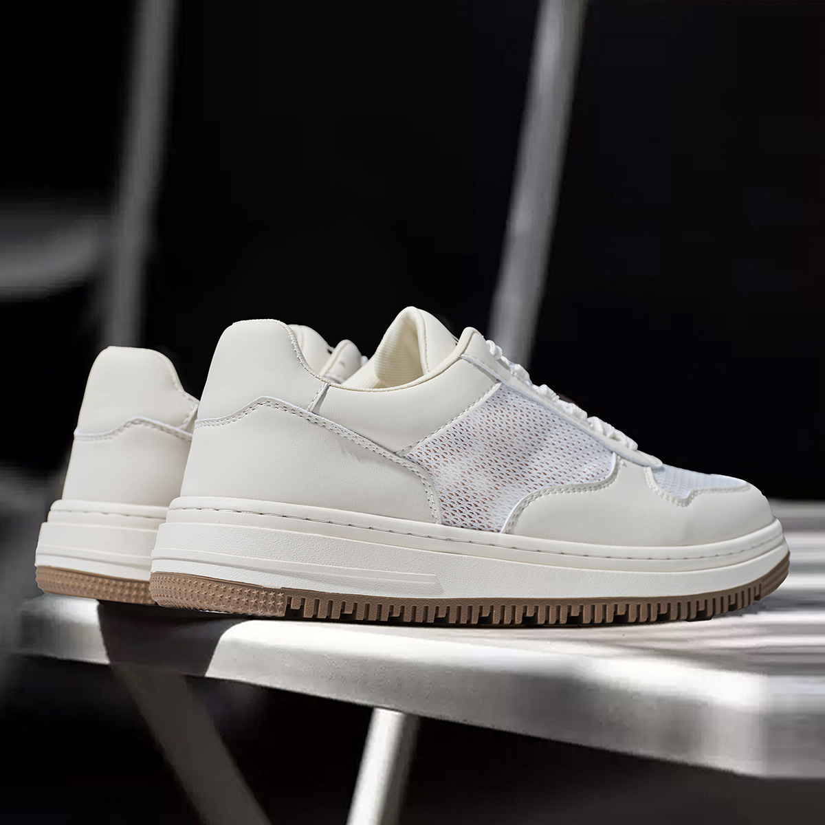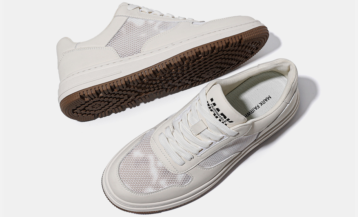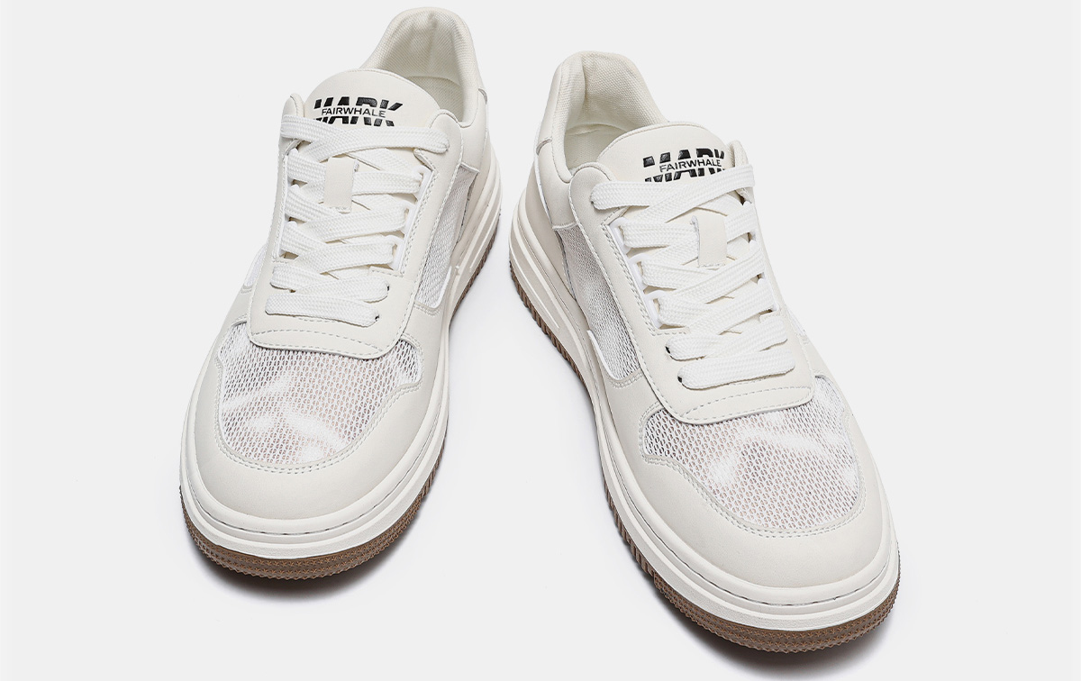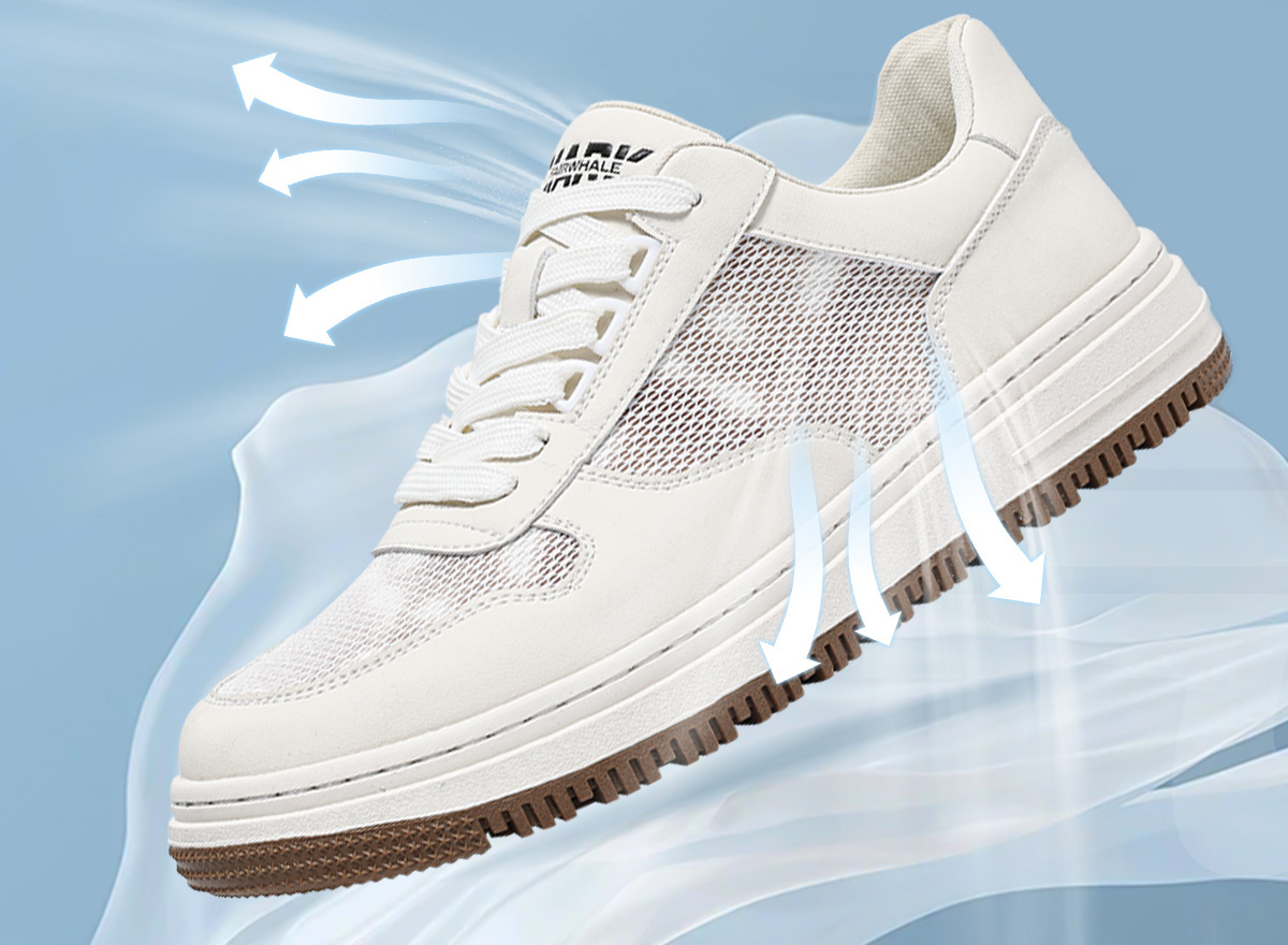 Mens Breathable Platform Casual Sneakers with Mesh and Leather Paneled Upper