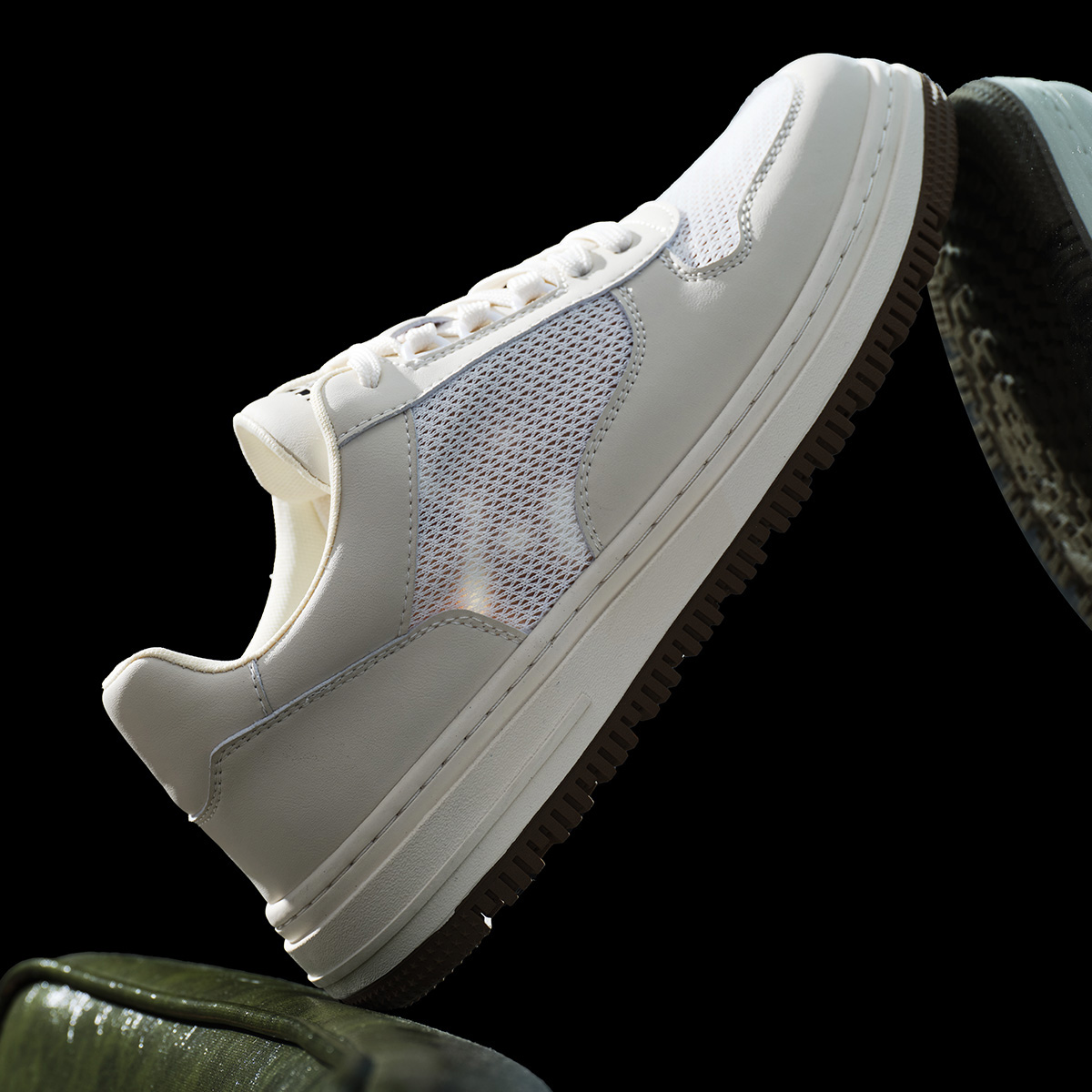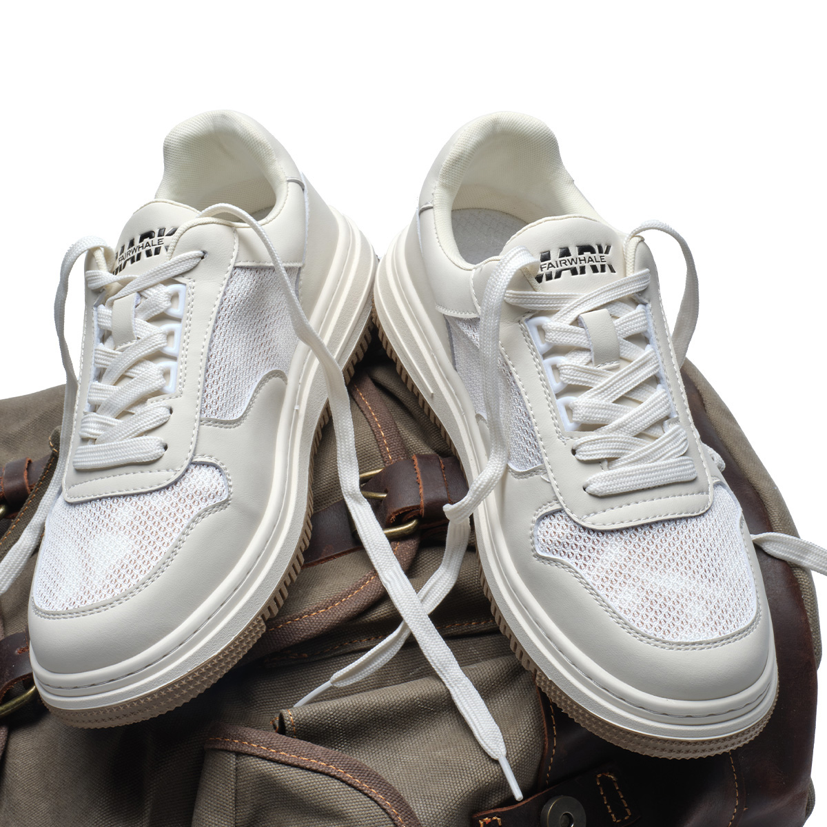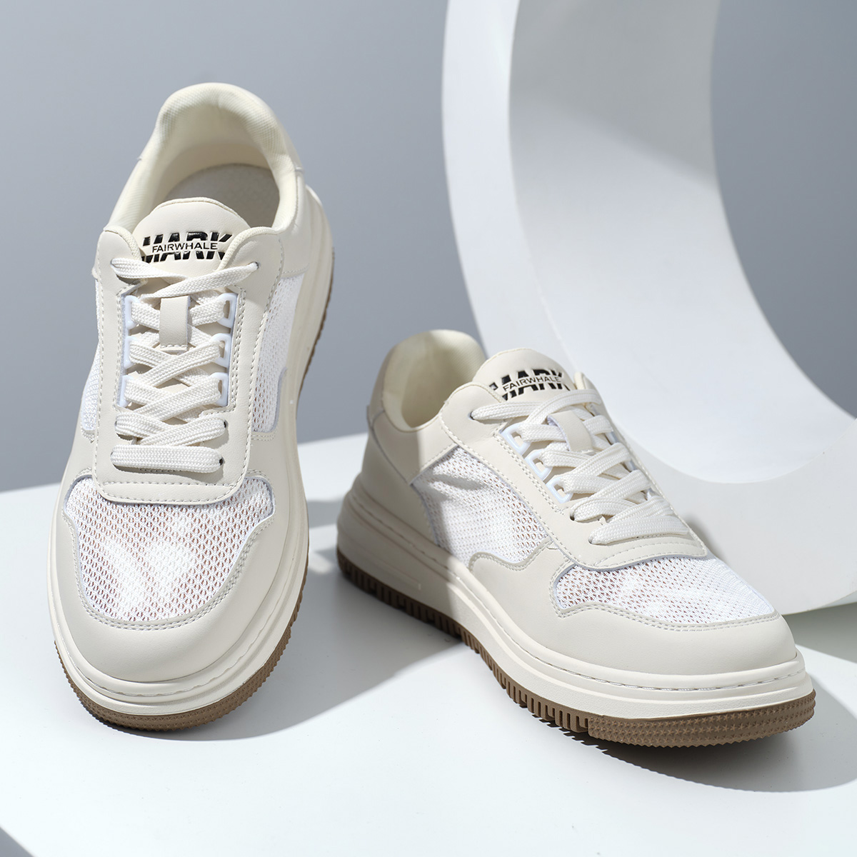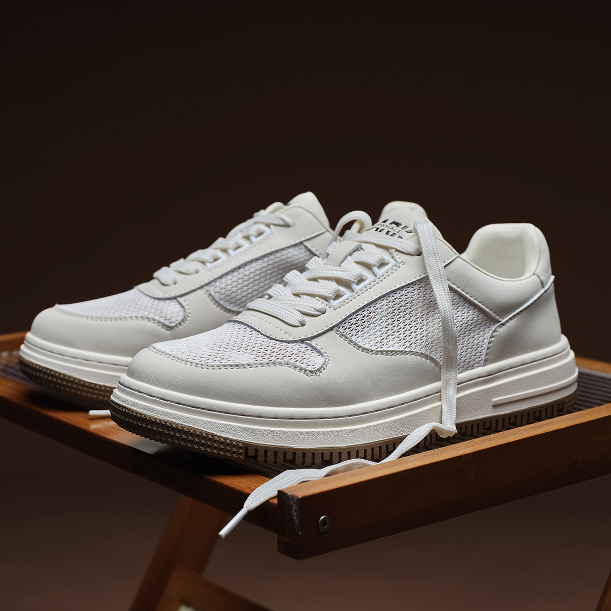 Mens Breathable Platform Casual Sneakers with Mesh and Leather Paneled Upper