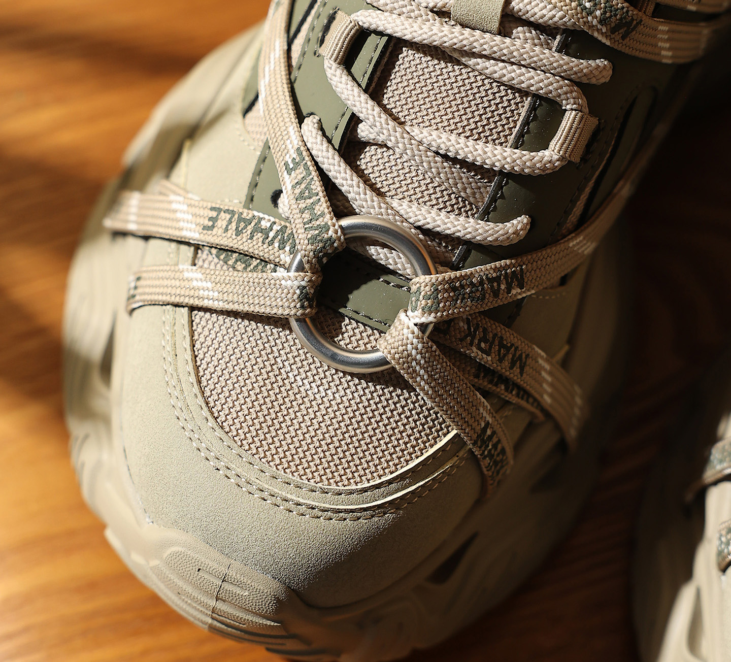 - Featuring a unique structure of multi-laces fastened by metal eyelets, this shoe boosts street-style recognition while allowing adjustable fit for different foot shapes.