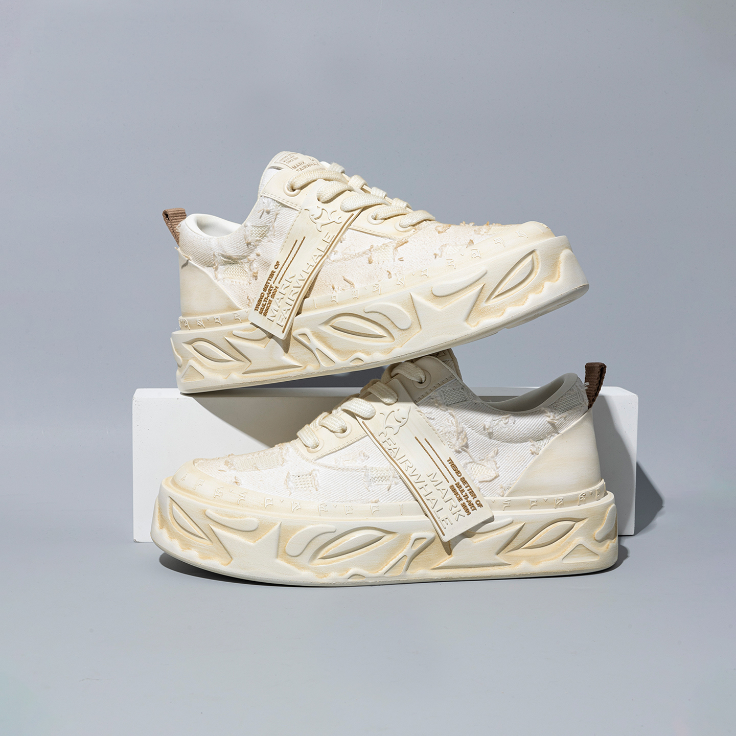 Mens Breathable Thick Soled Distressed Canvas Sneakers