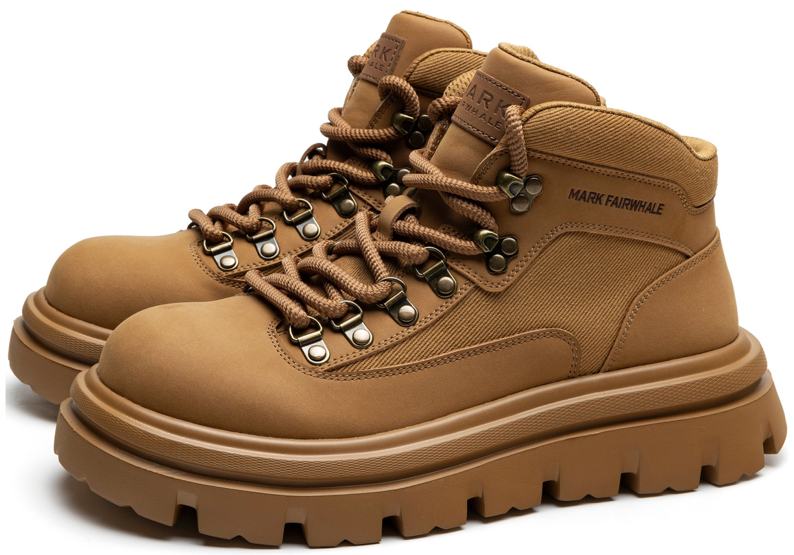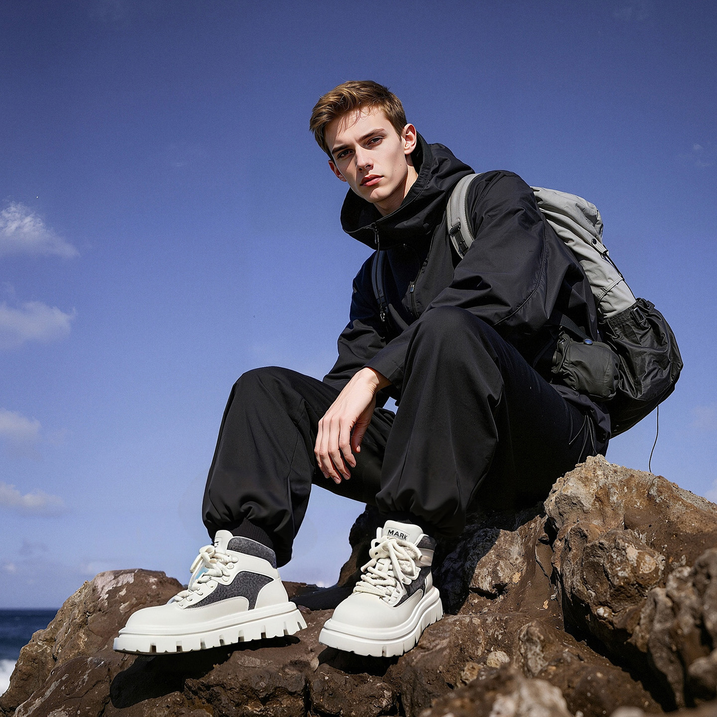 This high-top boot blends British retro style with pragmatism—its chunky lug sole delivers 5cm height, while the high-top lace-up design adds a tough workwear edge that pairs with any outfit, making it a vibe-booster for vintage-style guys.