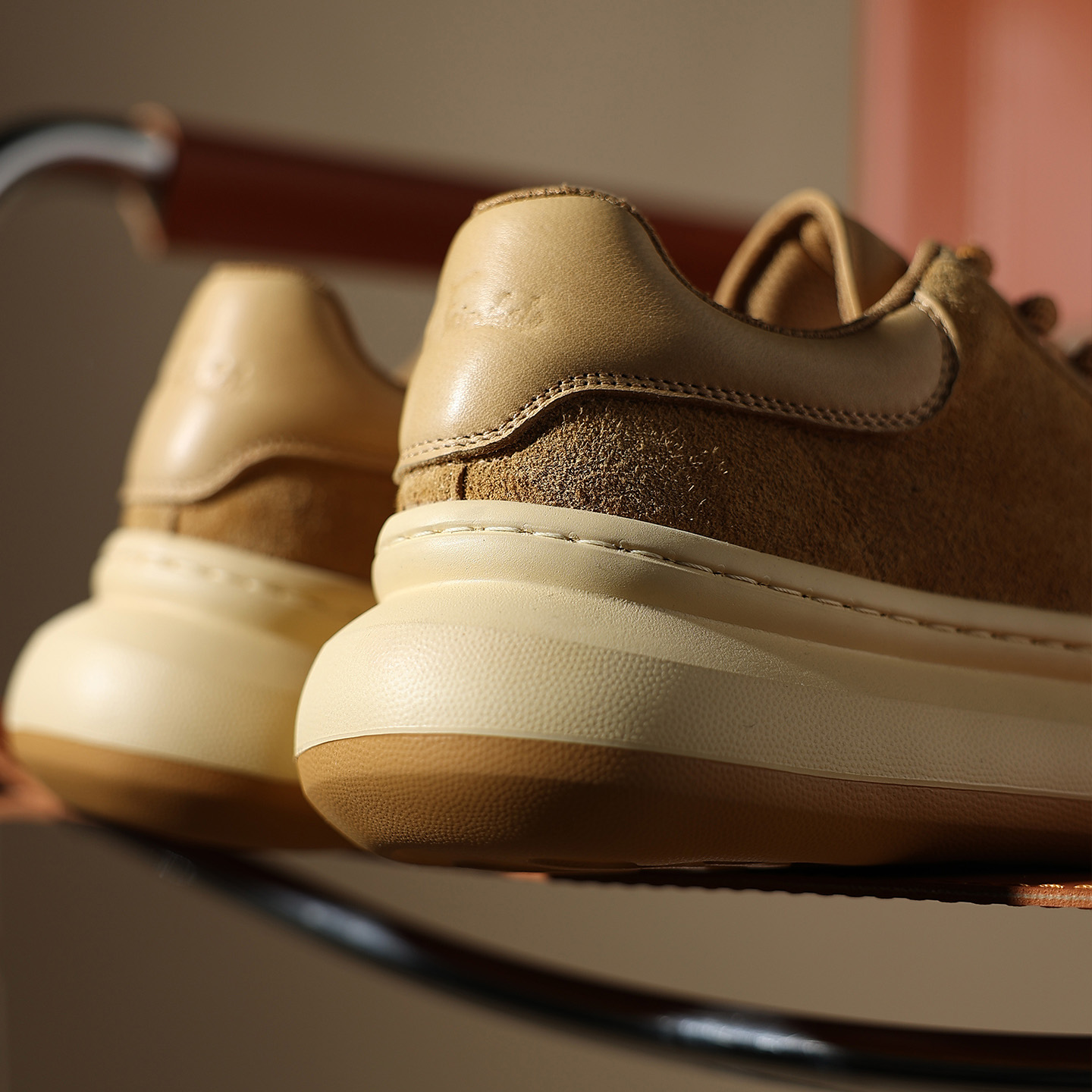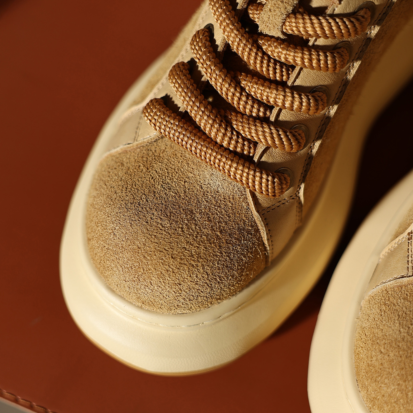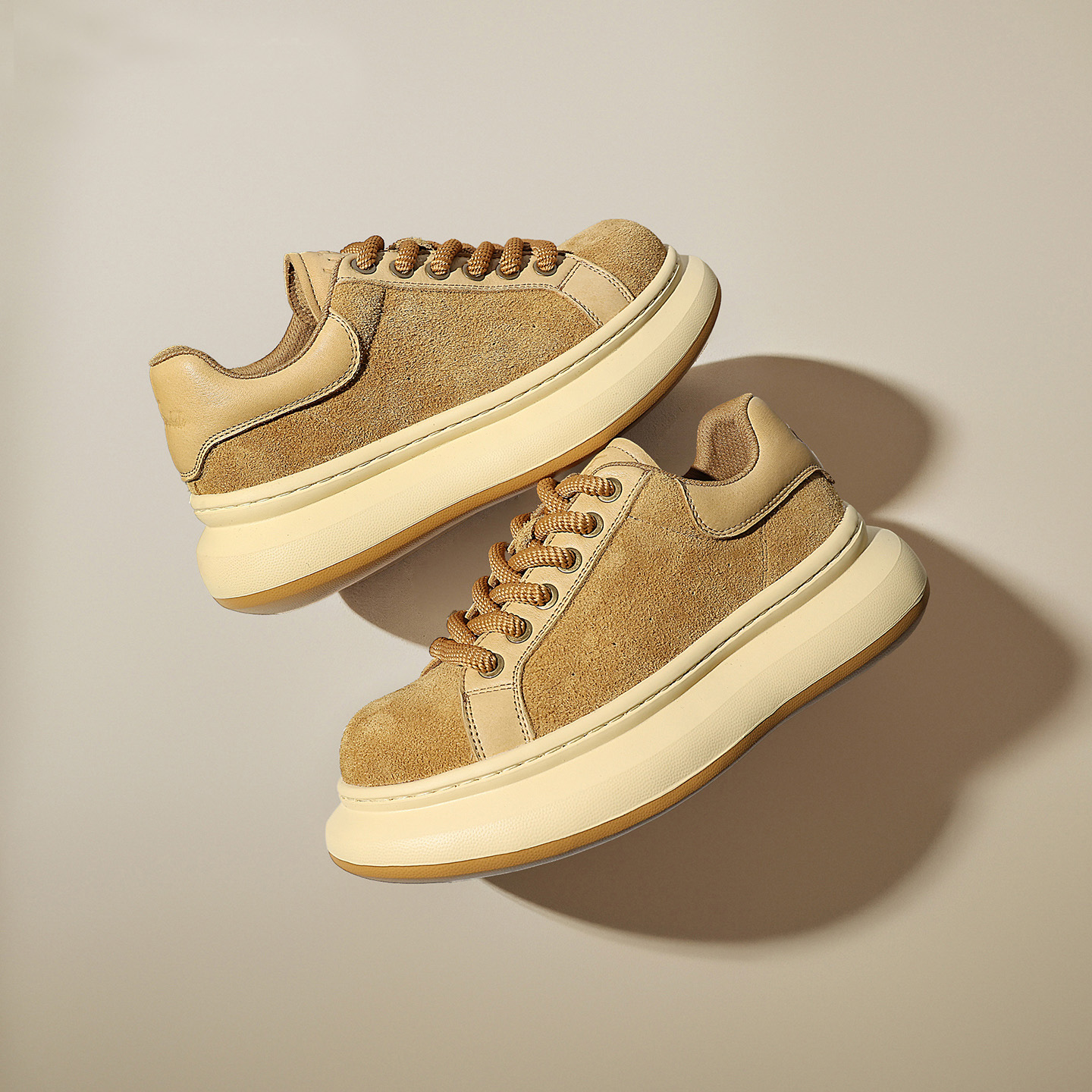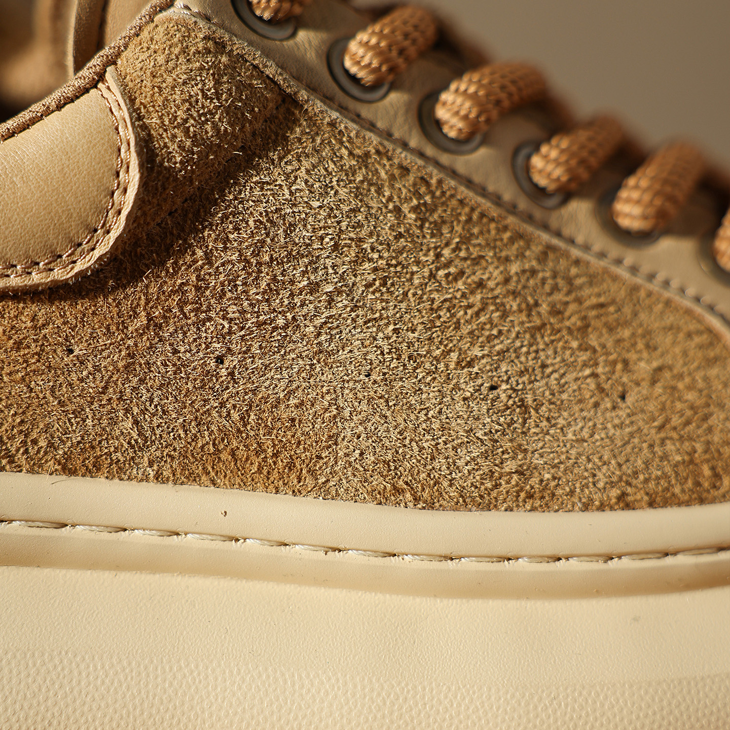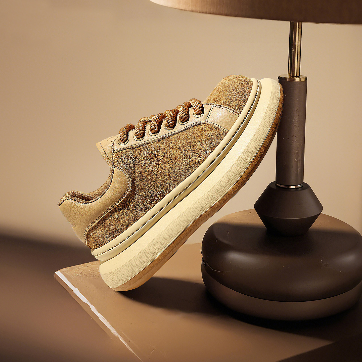 Mens Camel Suede Breathable Platform Lace Up Sneaker