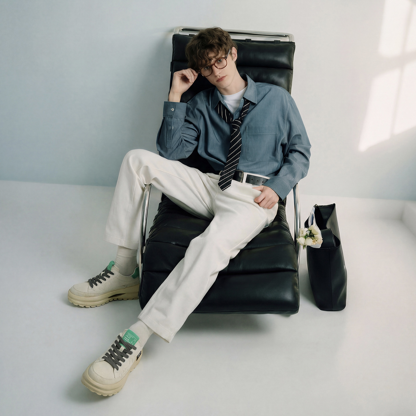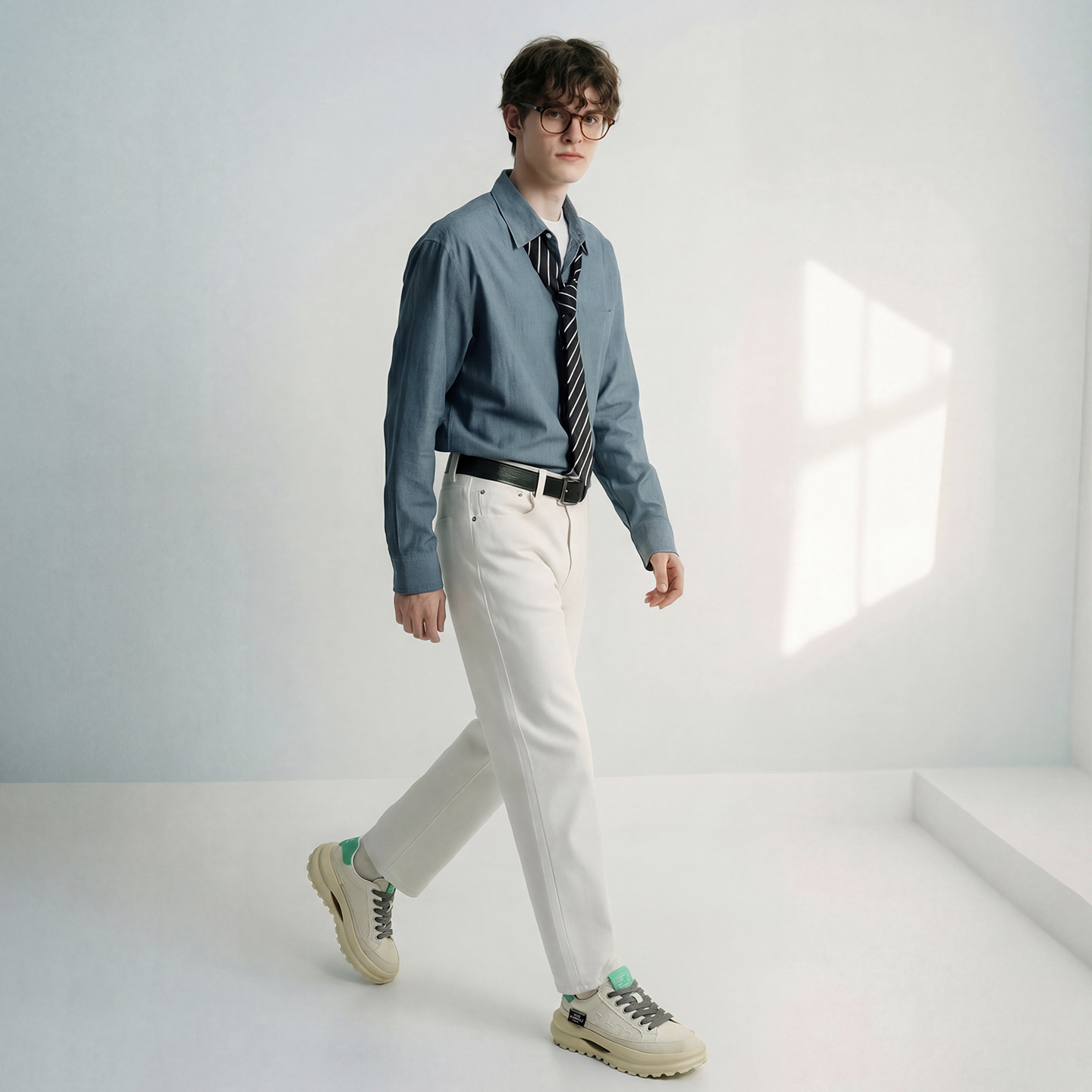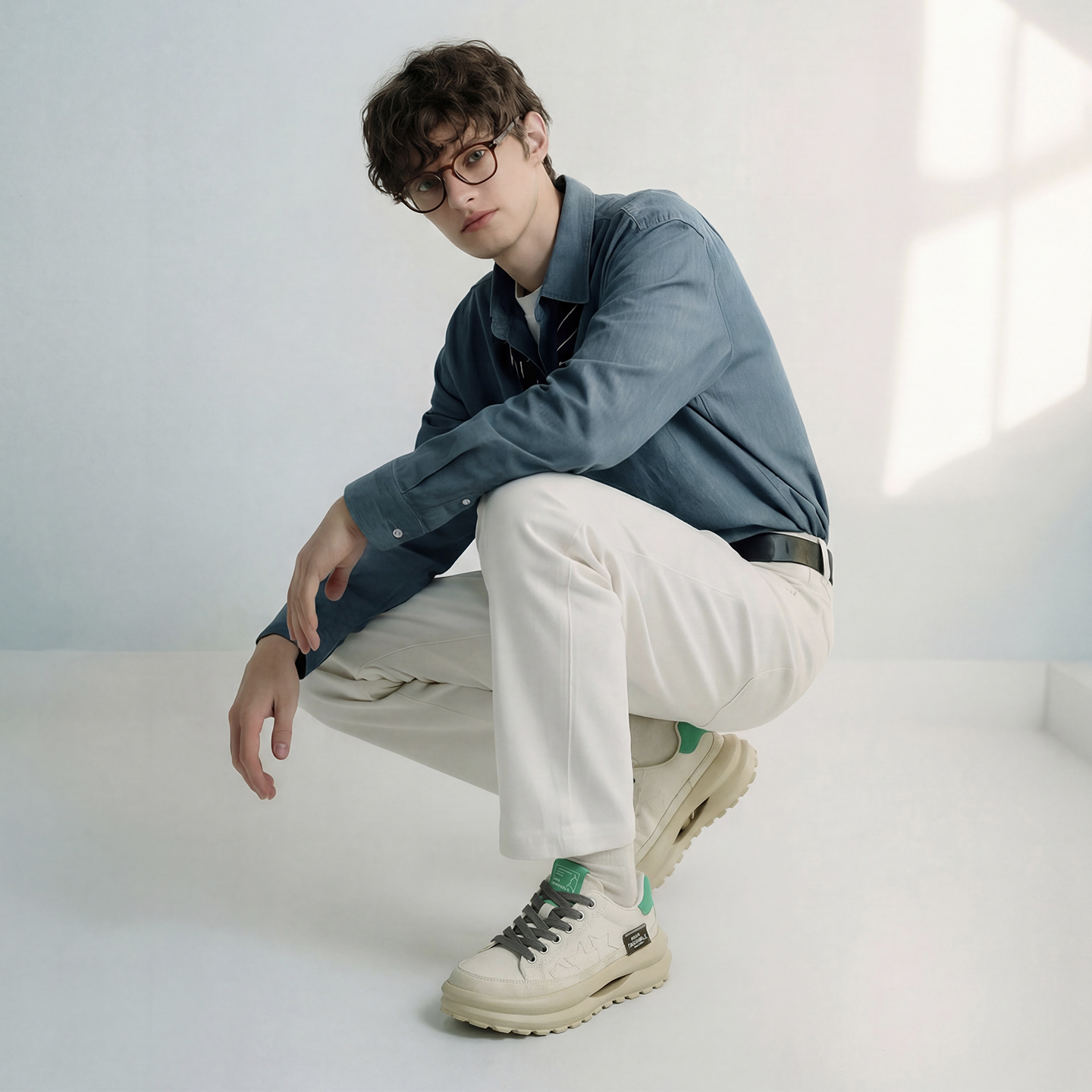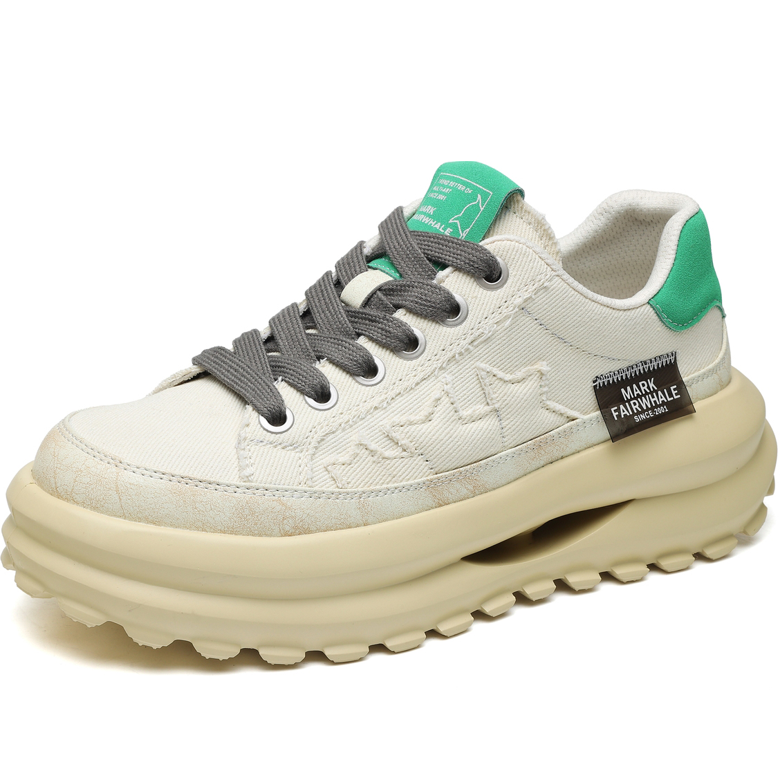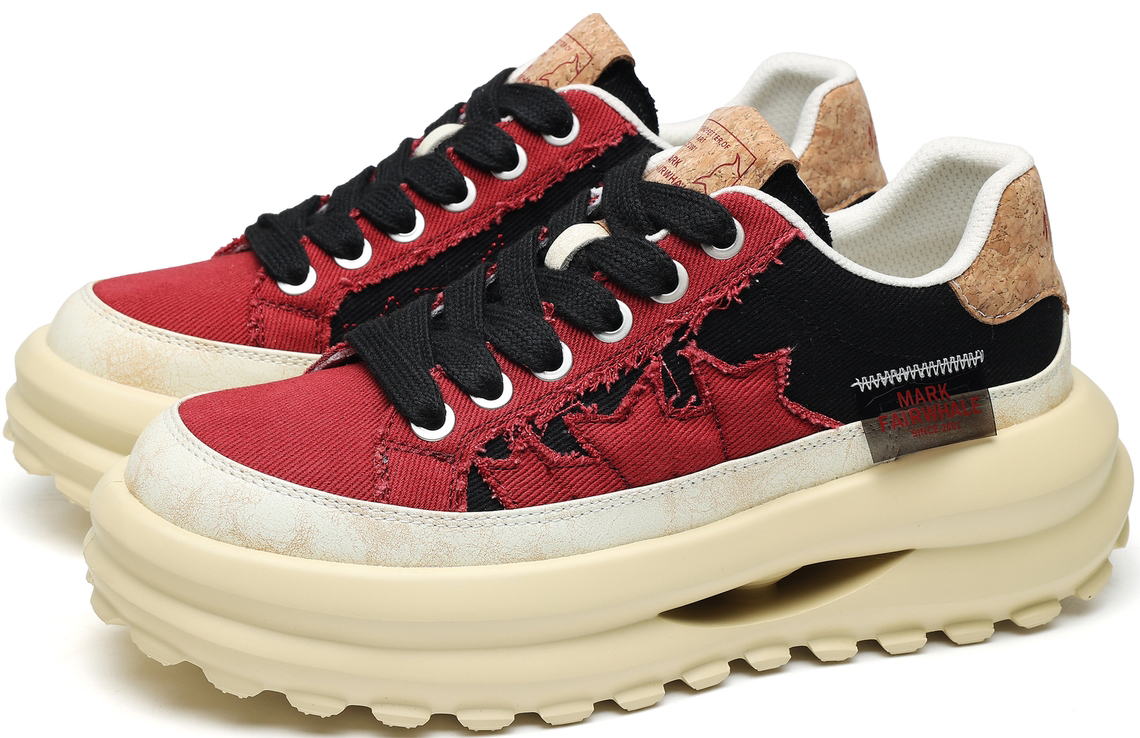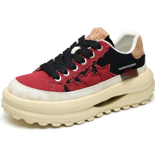 Mens Canvas Star Stitching Chunky Wave Cutout Sole Sneakers