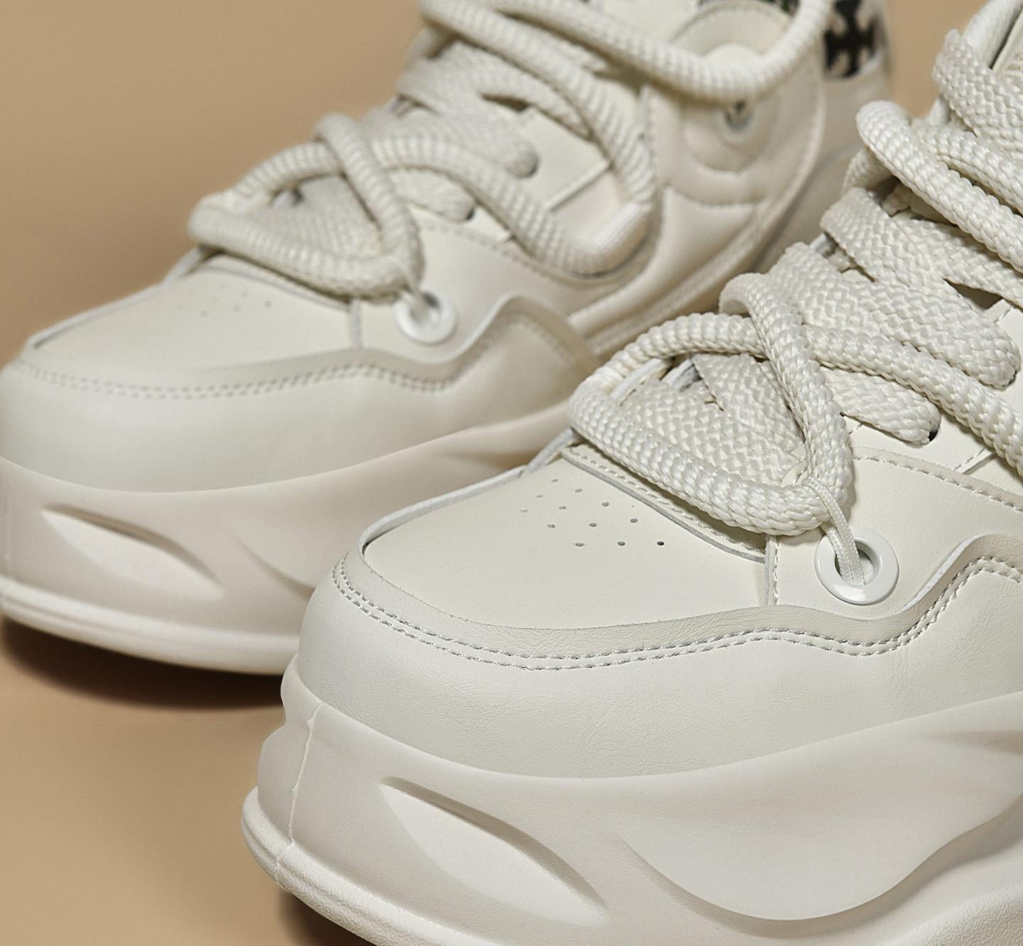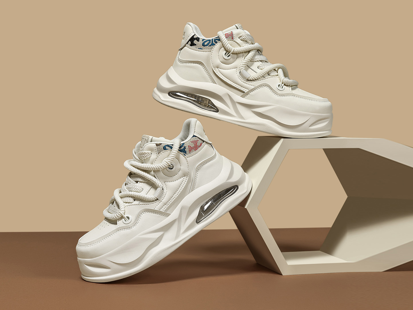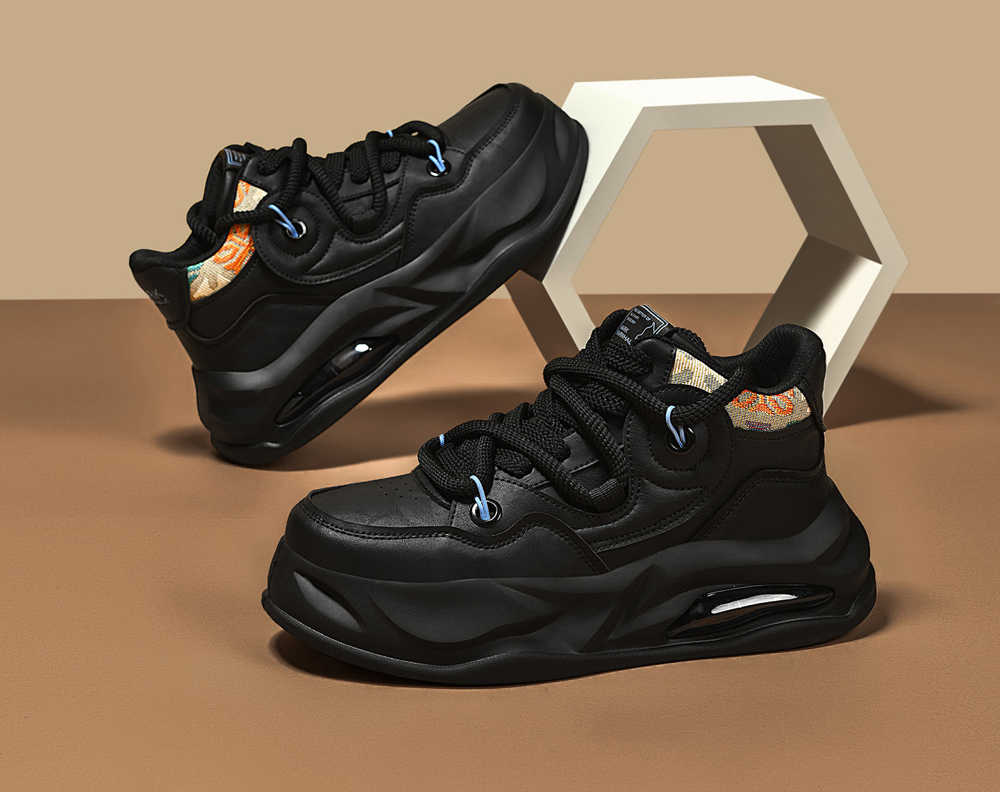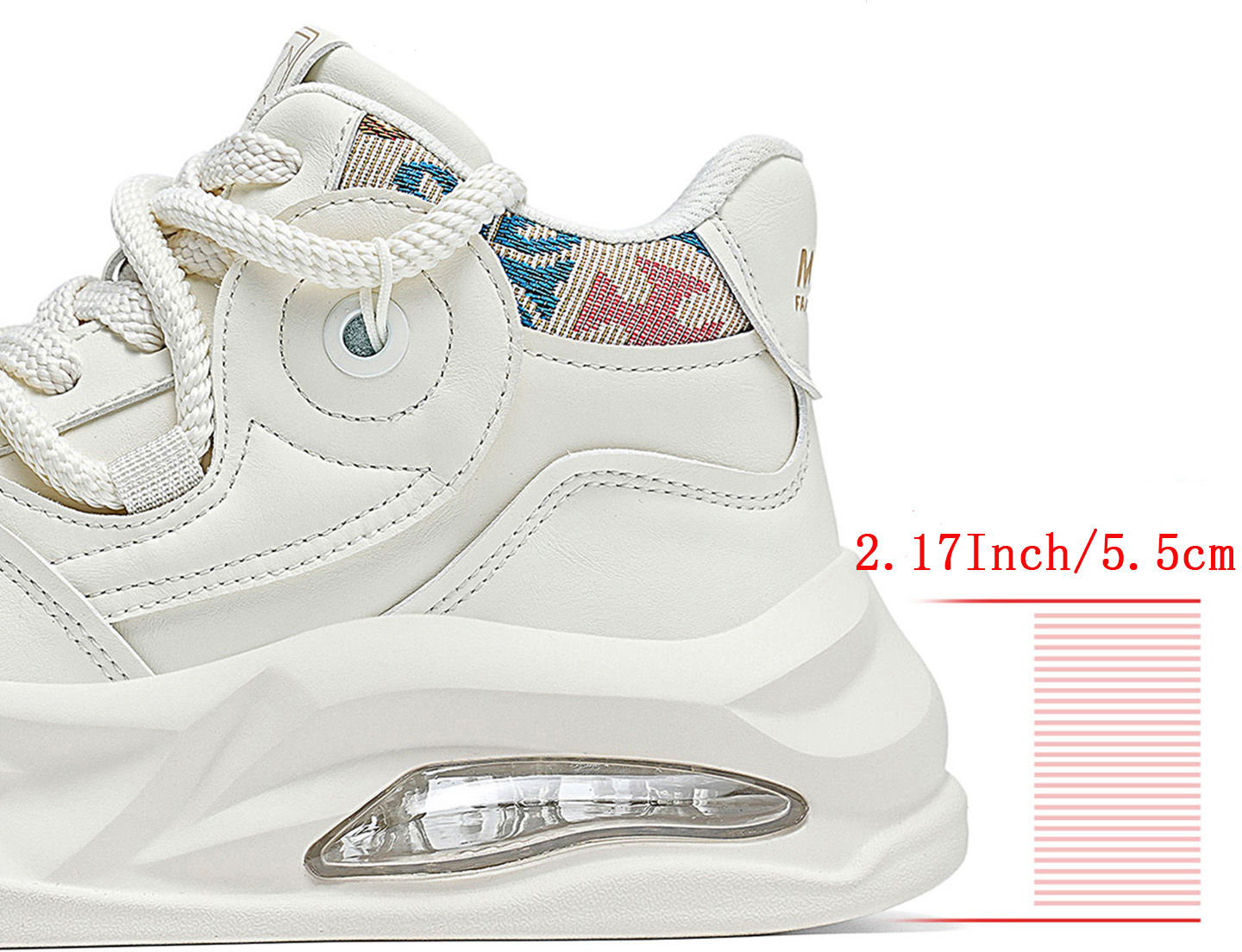 Mens Chunky Air Cushion Mid Top Skate Shoes Dual Laces Embroidered Collar