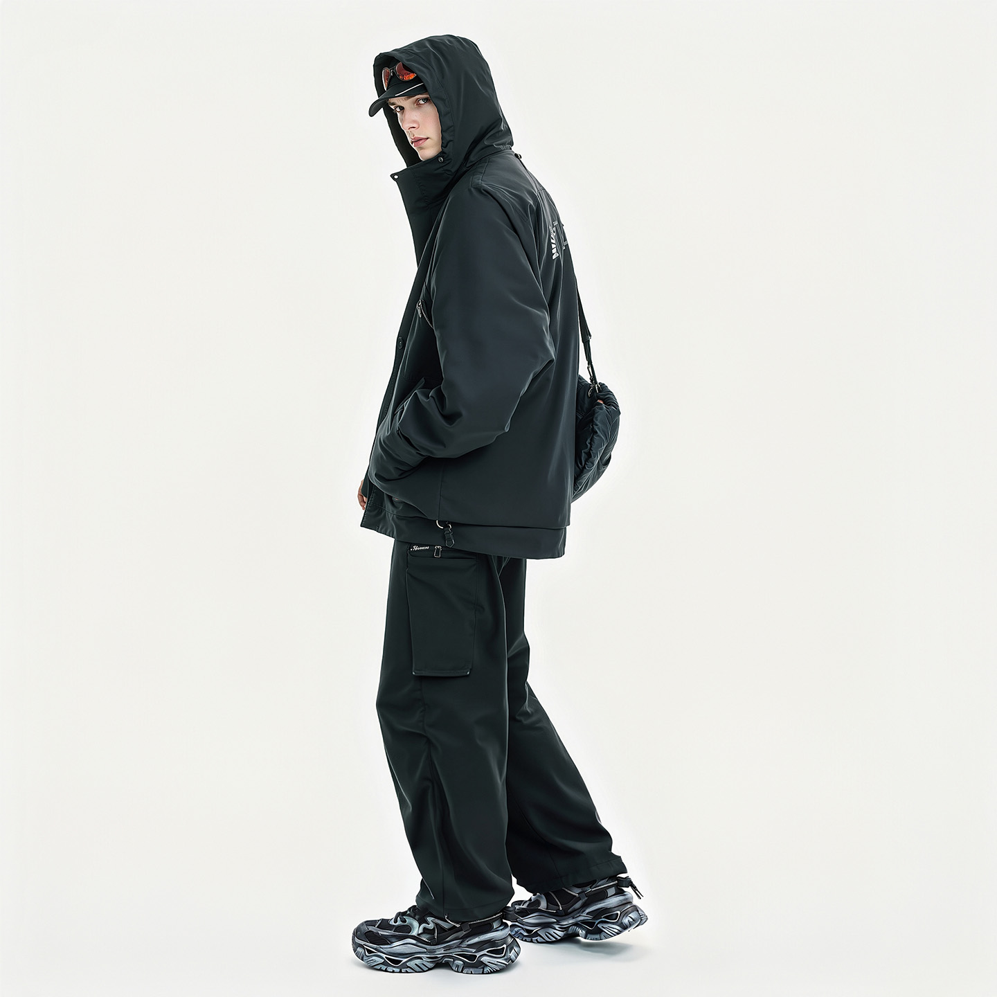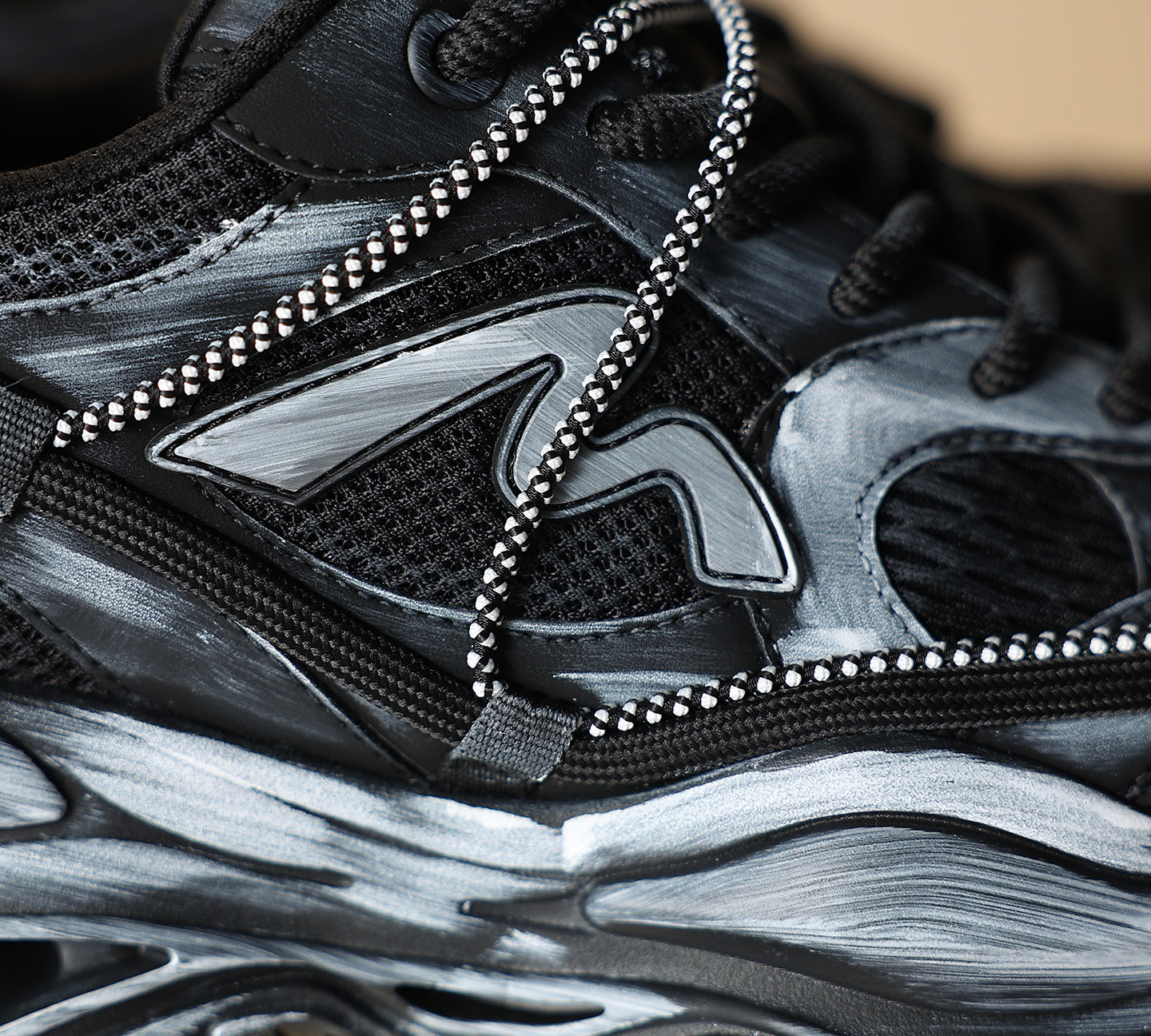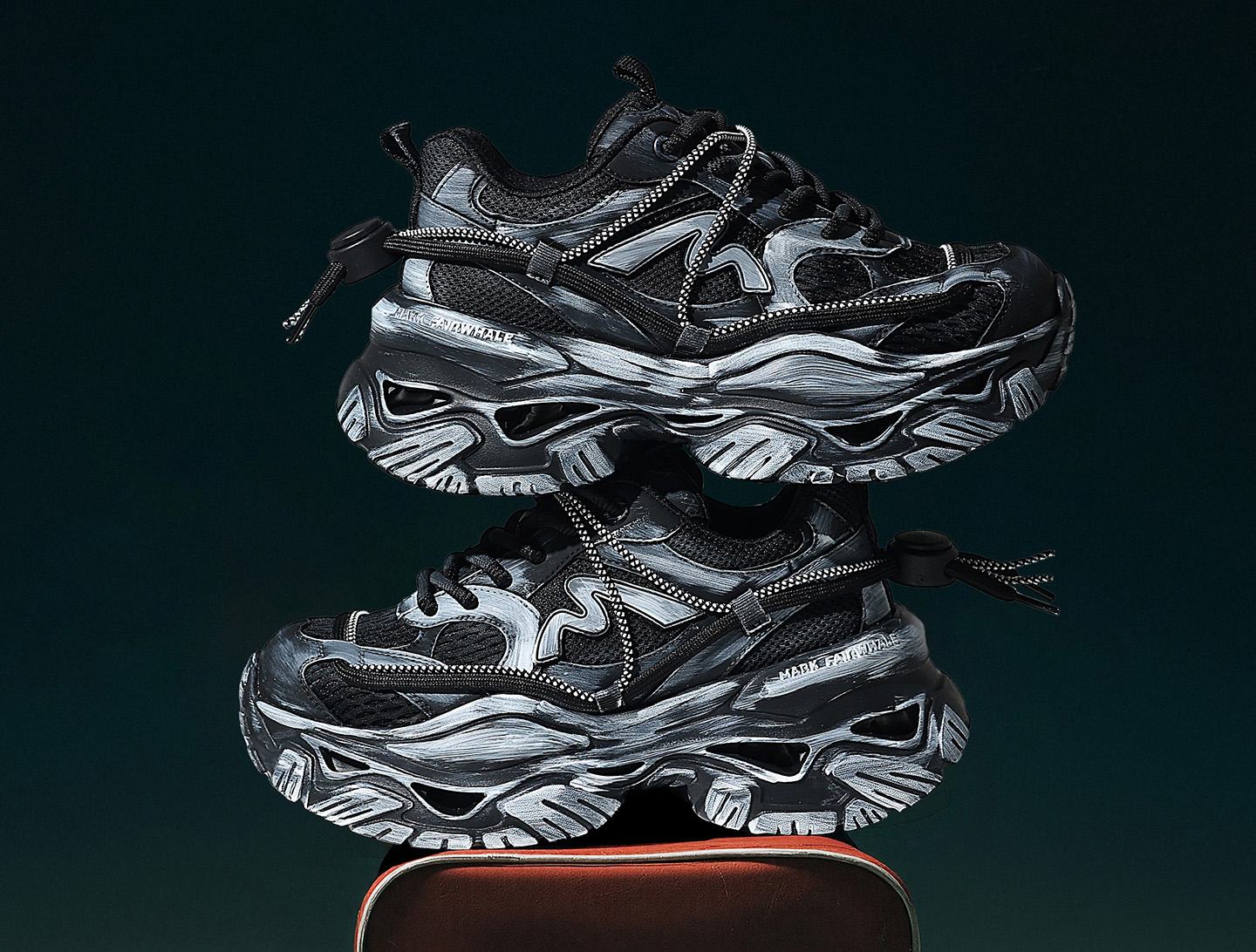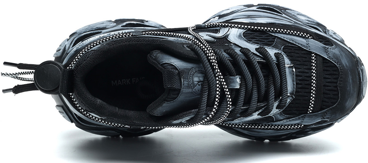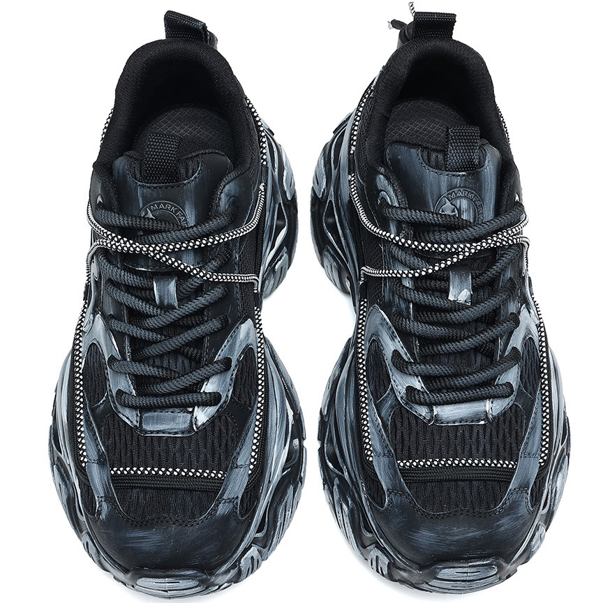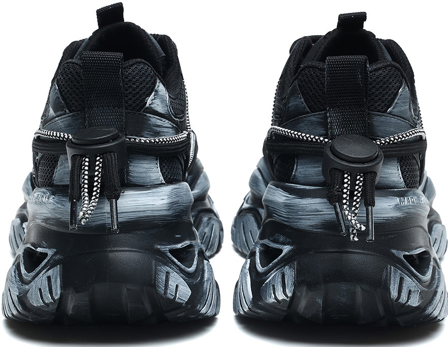Mens Chunky Cutout Sole Dad Sneakers with Distressed Black and Gray Finish