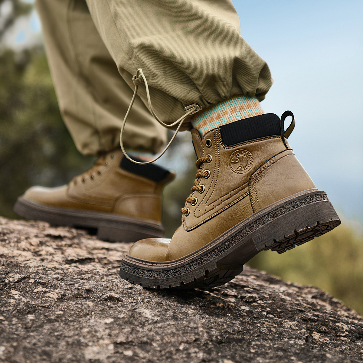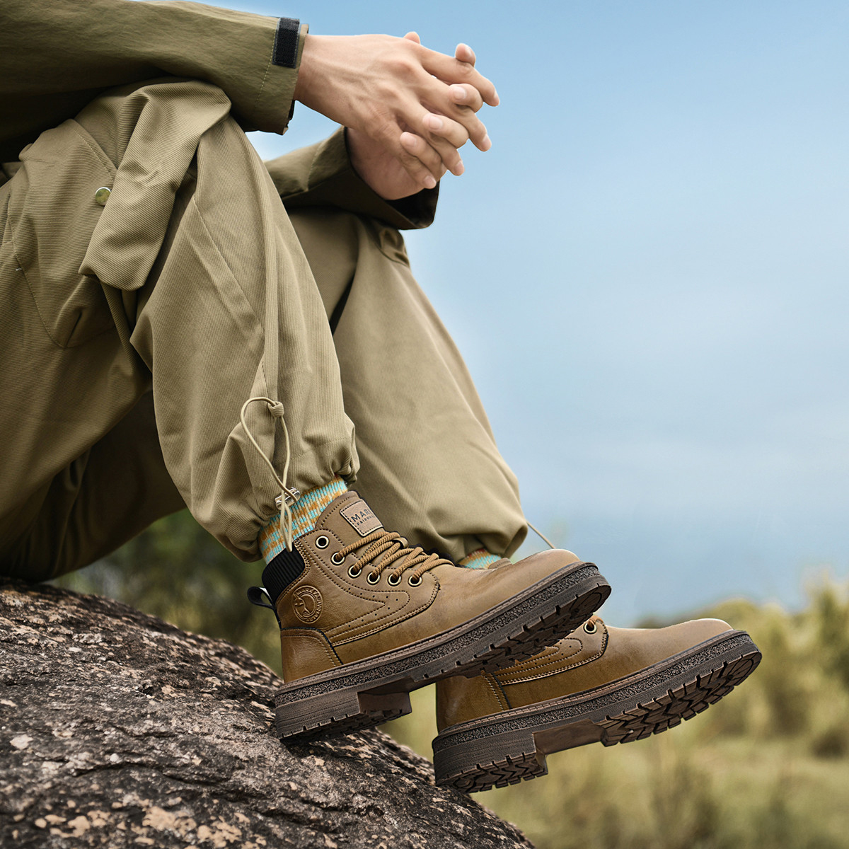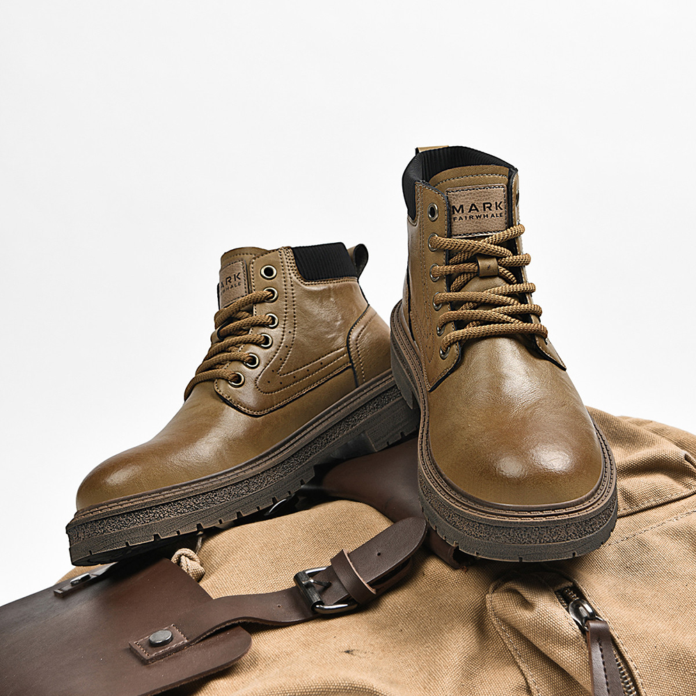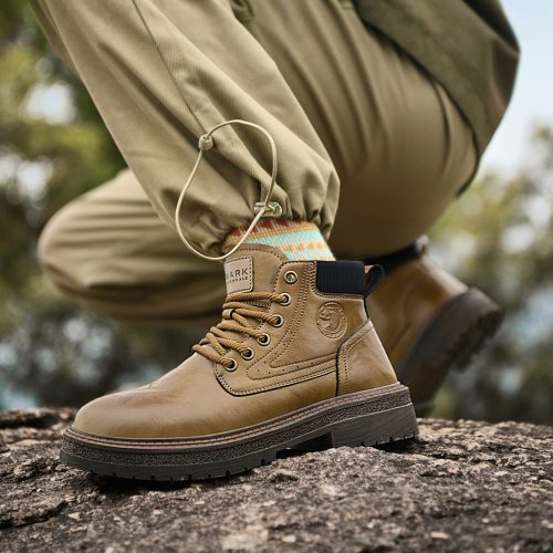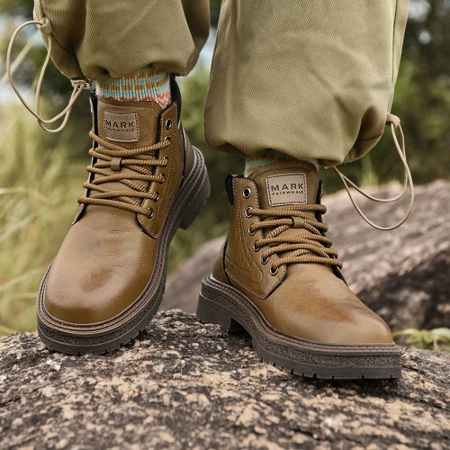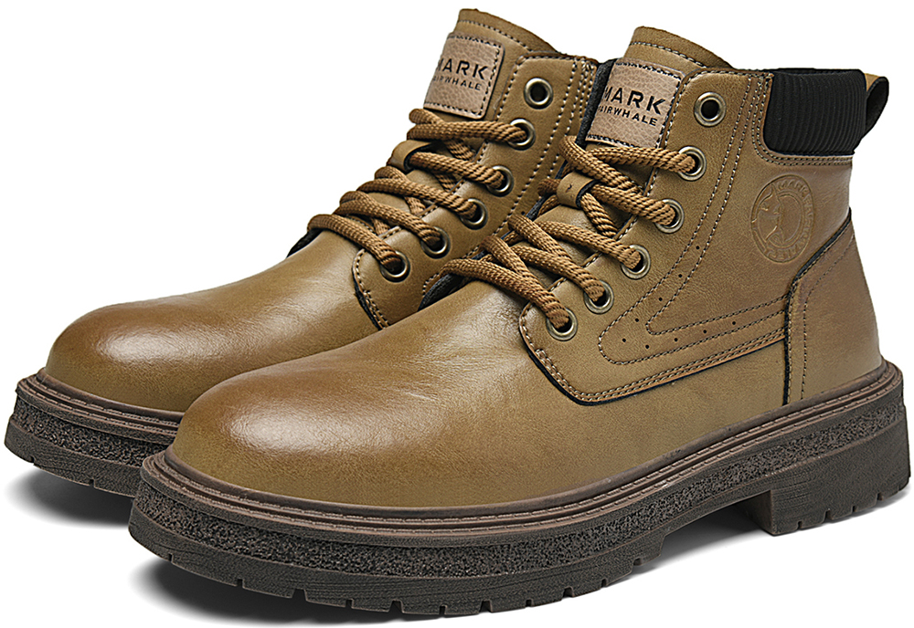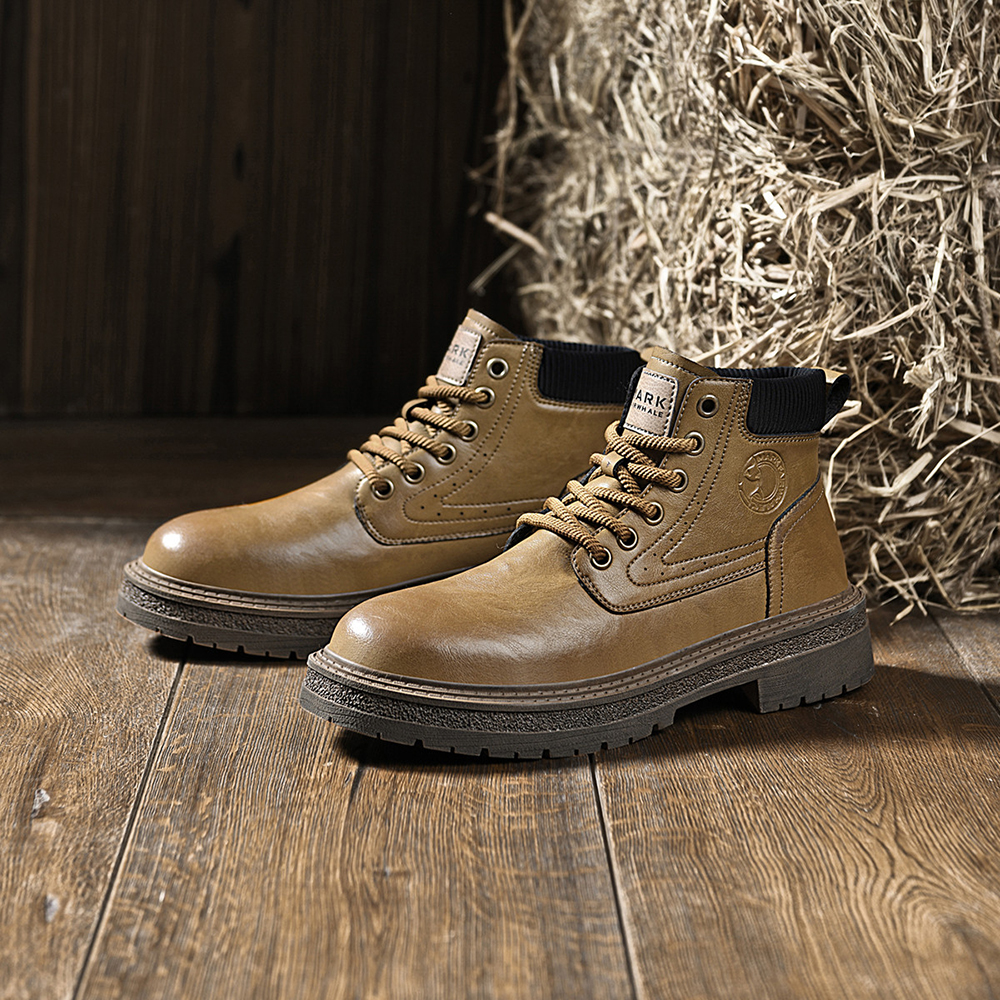 Mens Chunky Durable Leather Lace Up Ankle Boots with Padded Collar and Stitched Seams