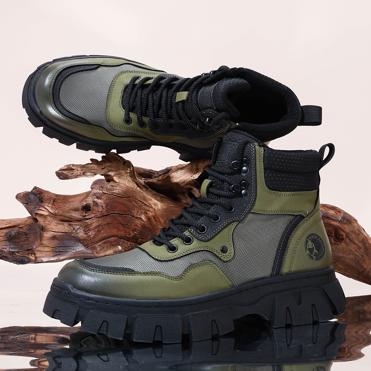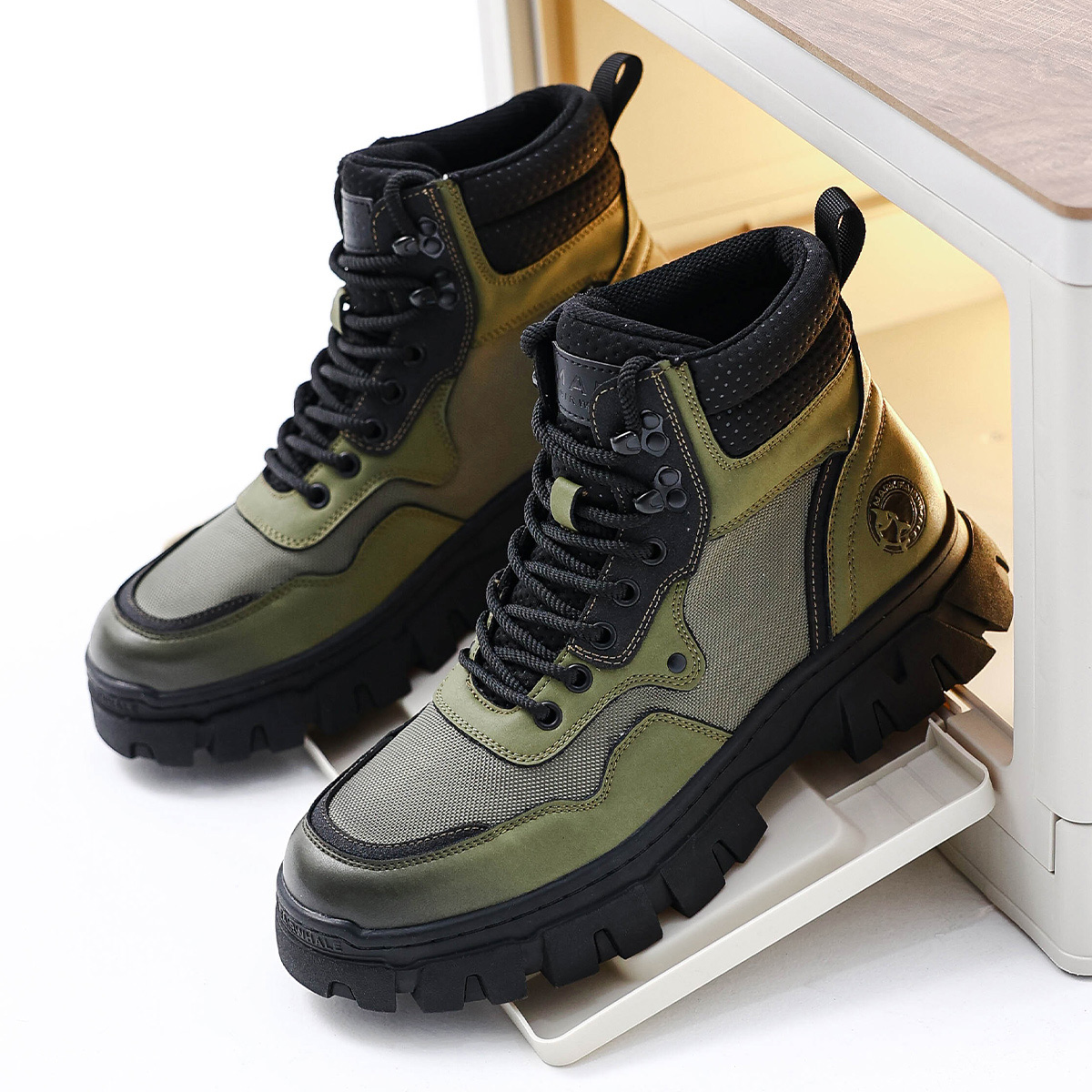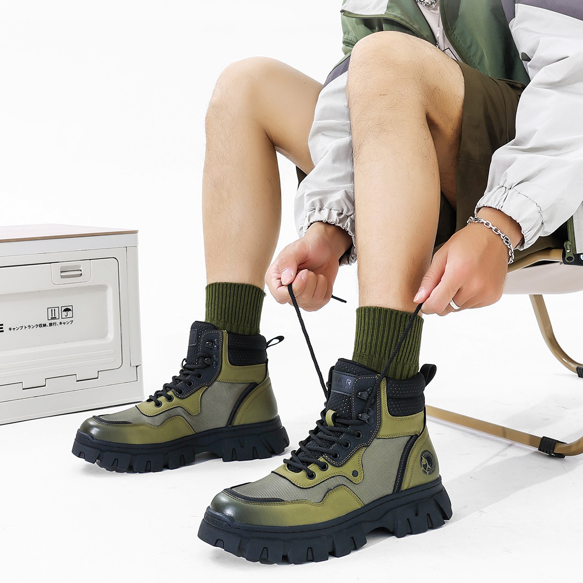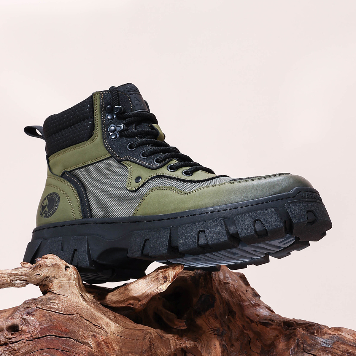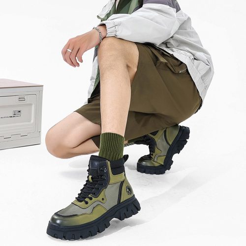 Mens Chunky Sole Outdoor Techwear Work Boots with Mesh Panels
