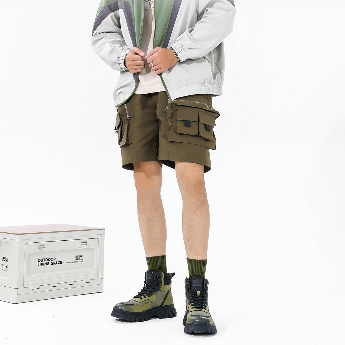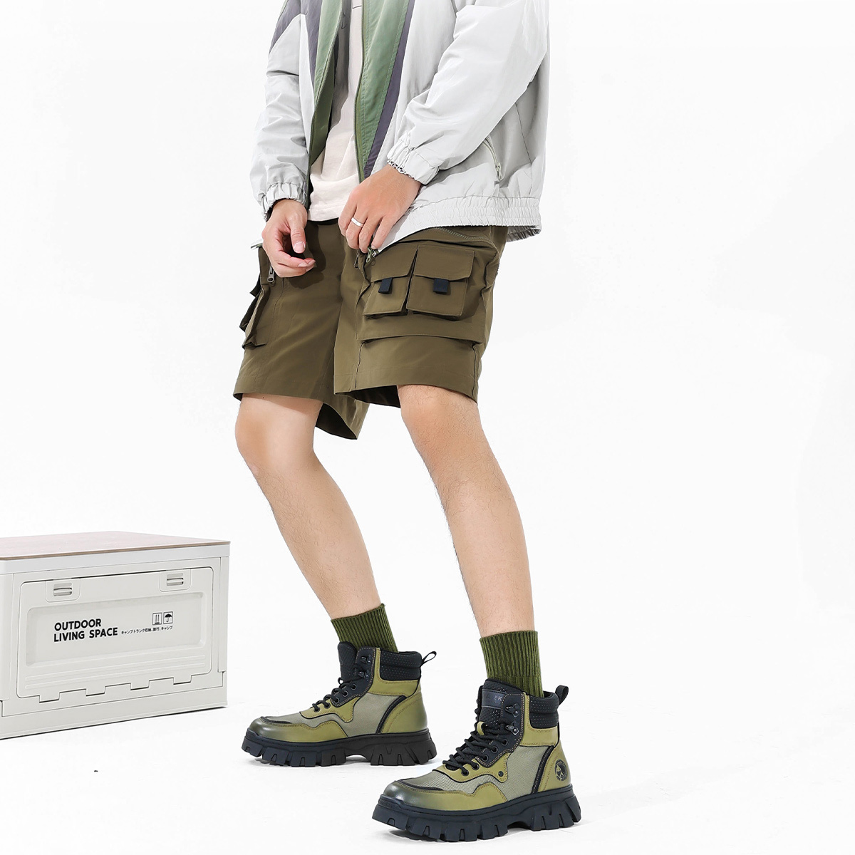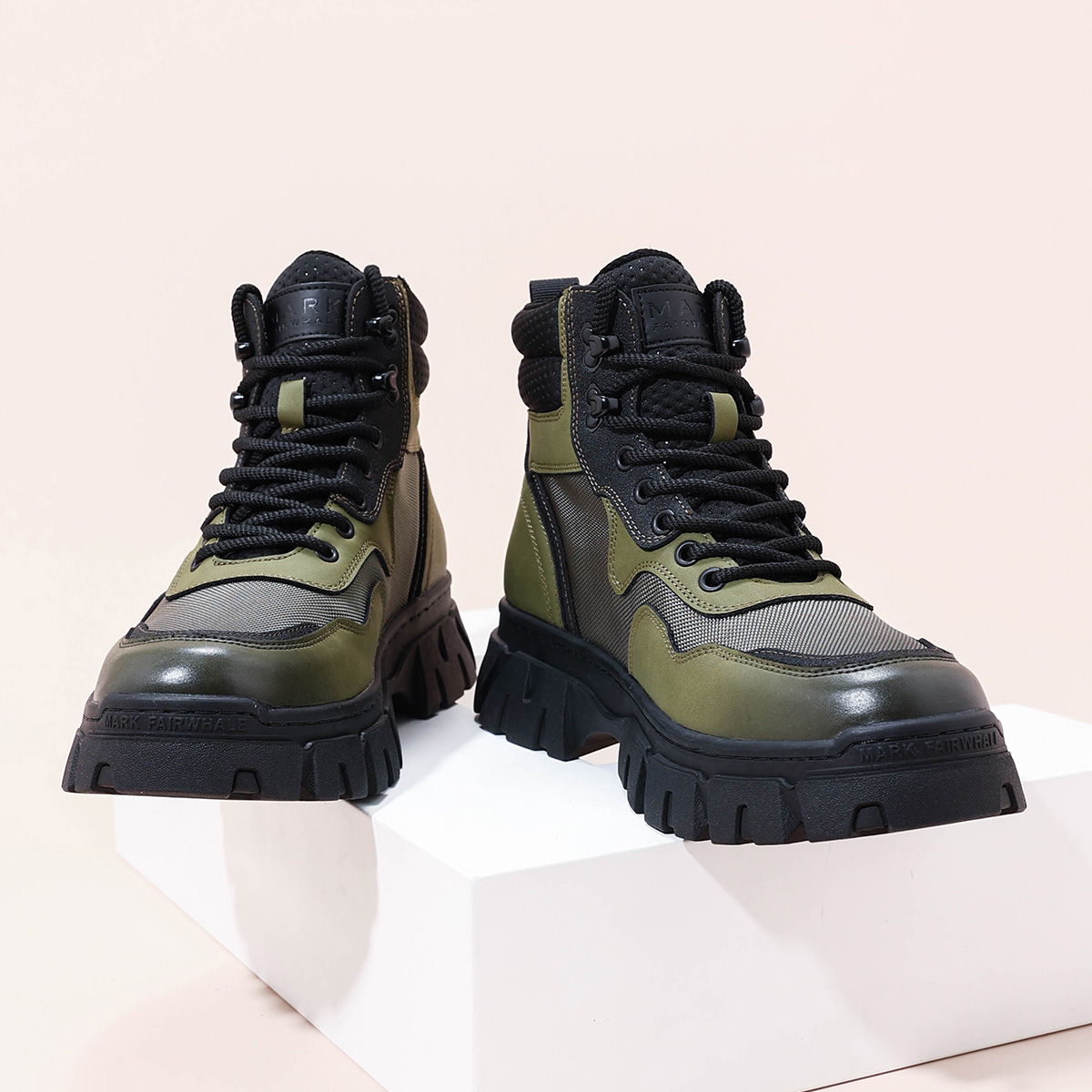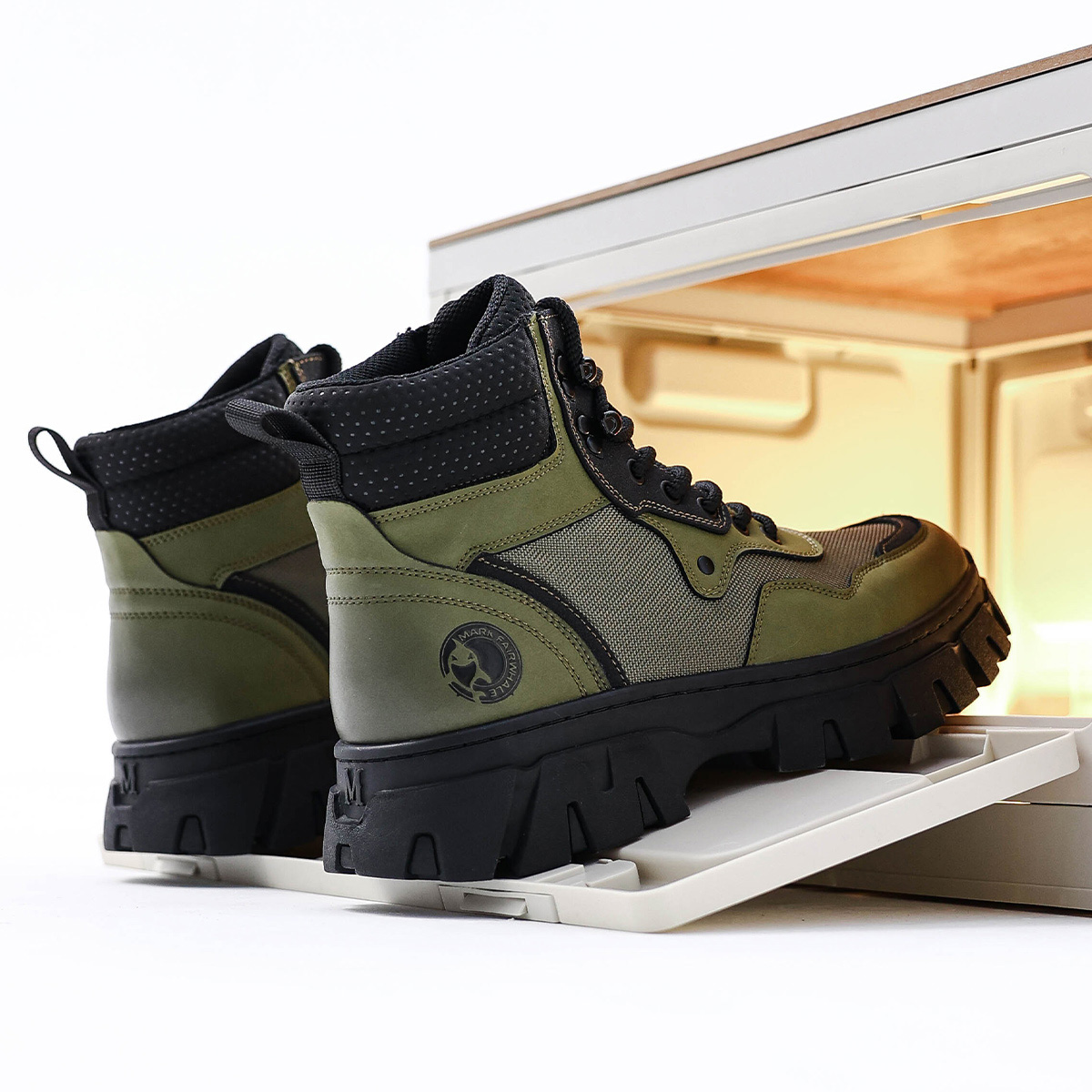 Mens Chunky Sole Outdoor Techwear Work Boots with Mesh Panels