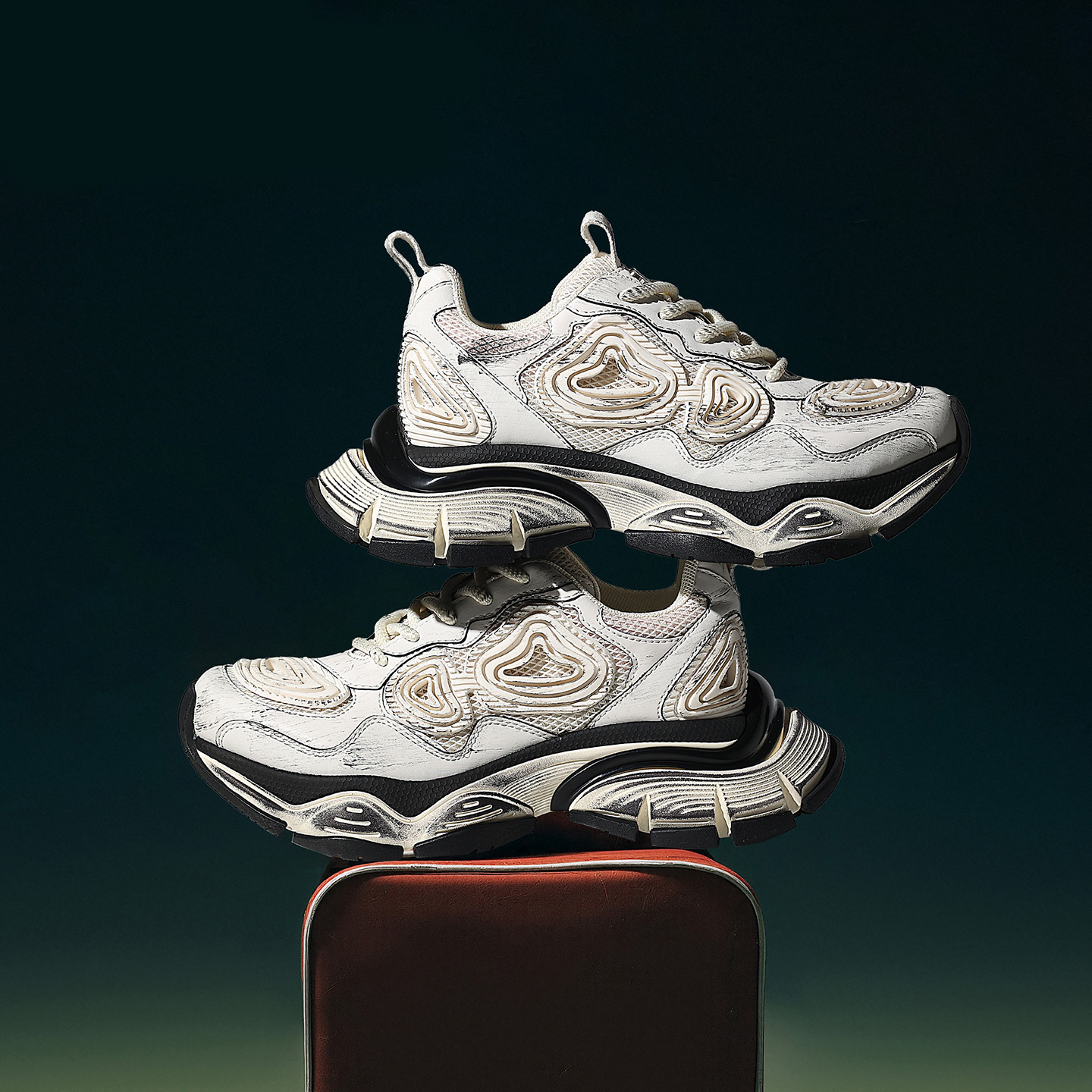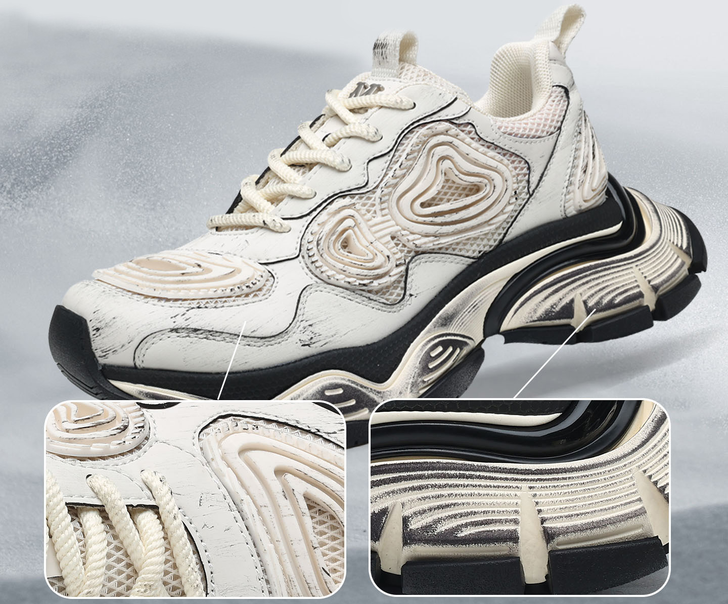 Mens Chunky Sole Swirl Textured Distressed Trendy Sneakers