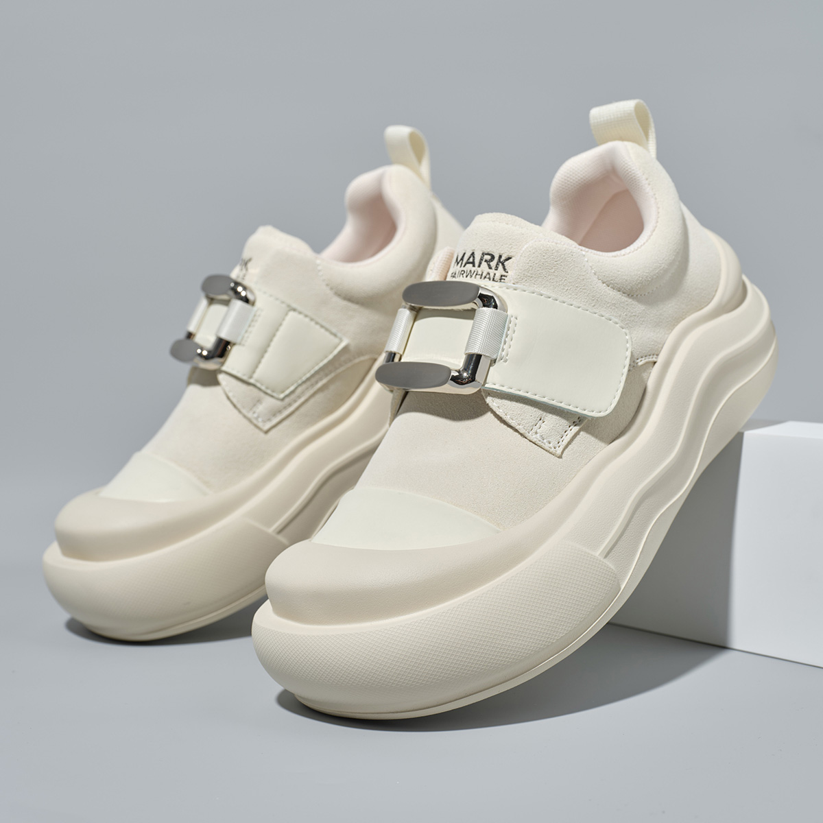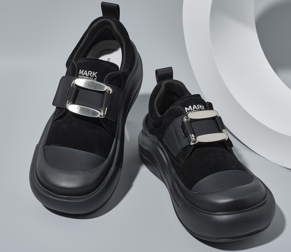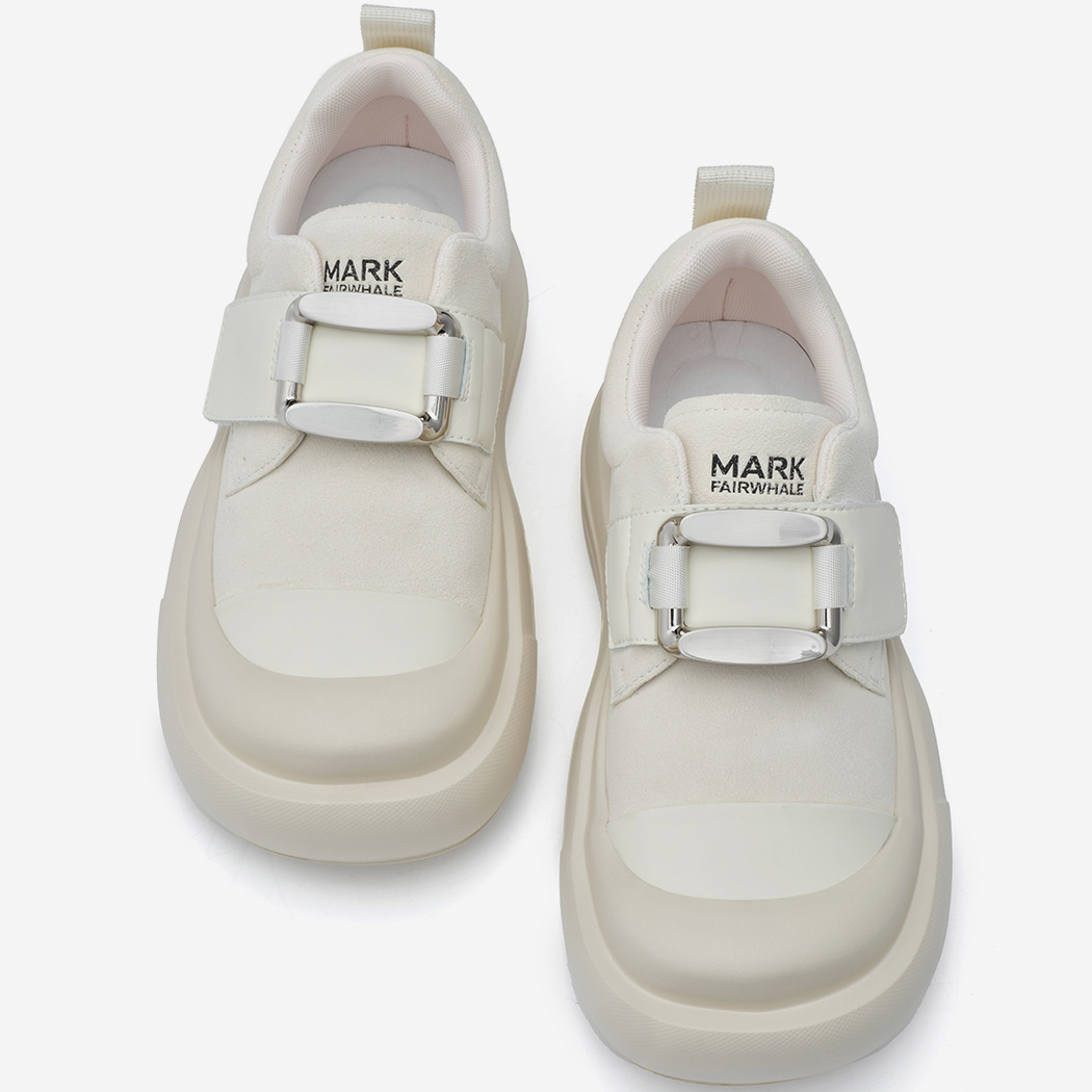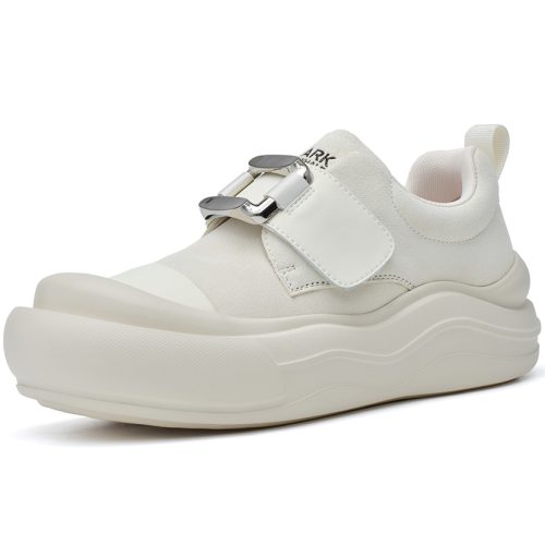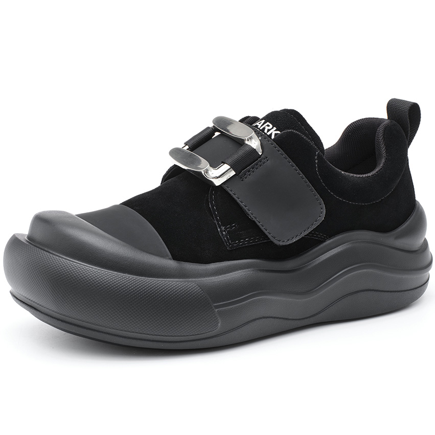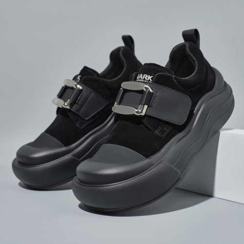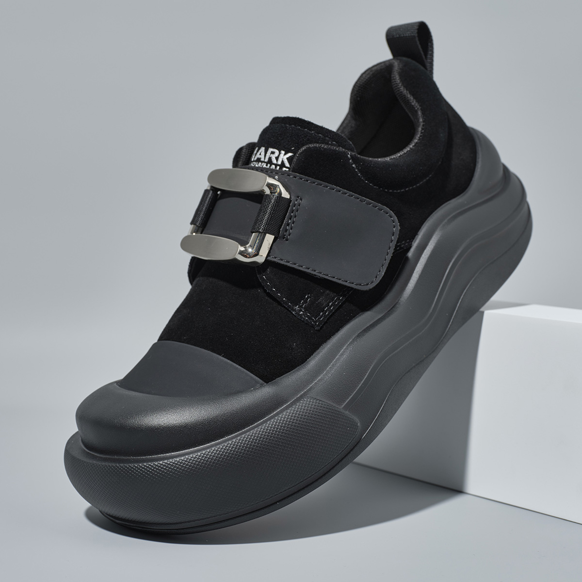 Mens Chunky Suede Round Toe Sneakers with Metal Buckle and Velcro