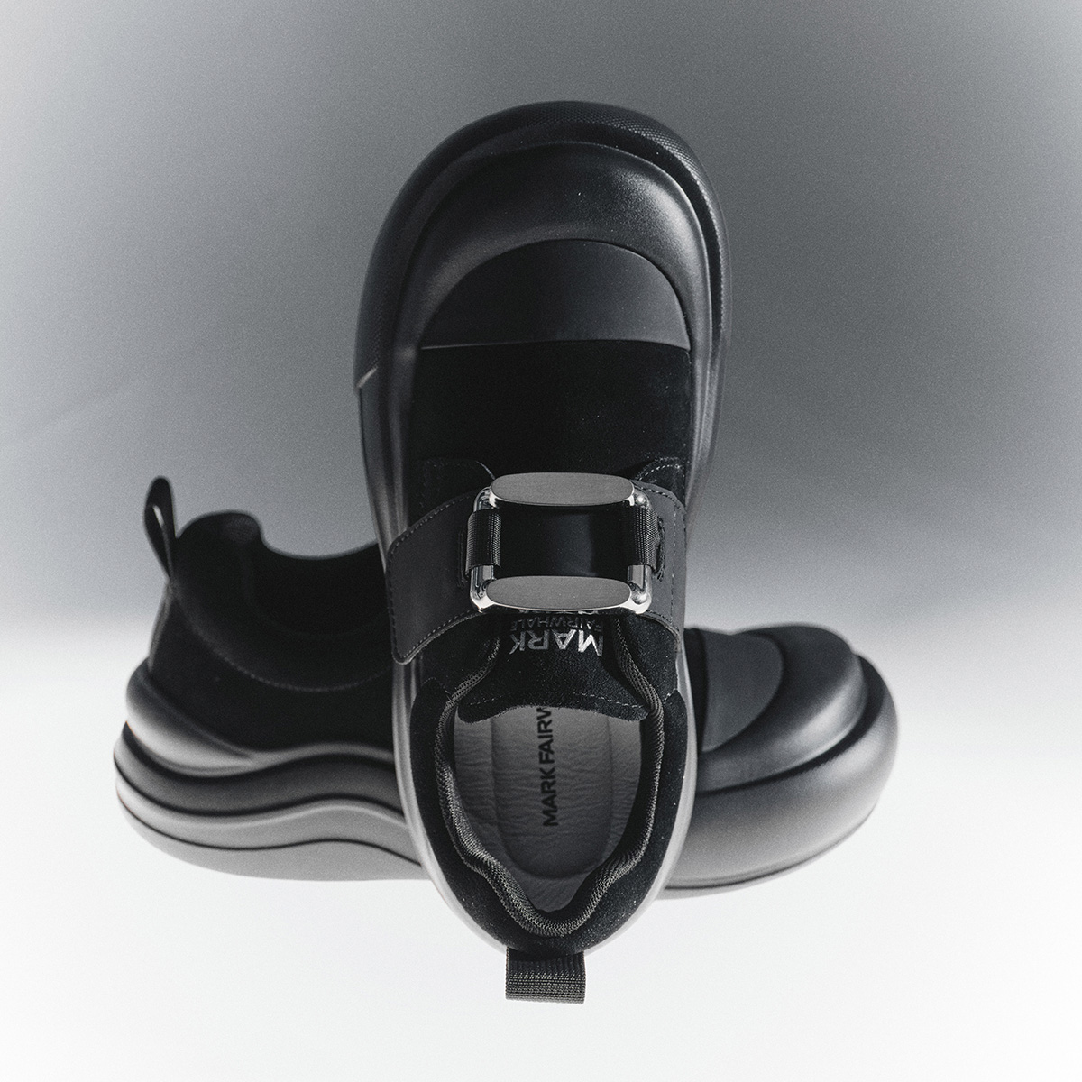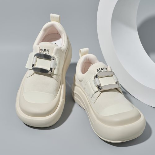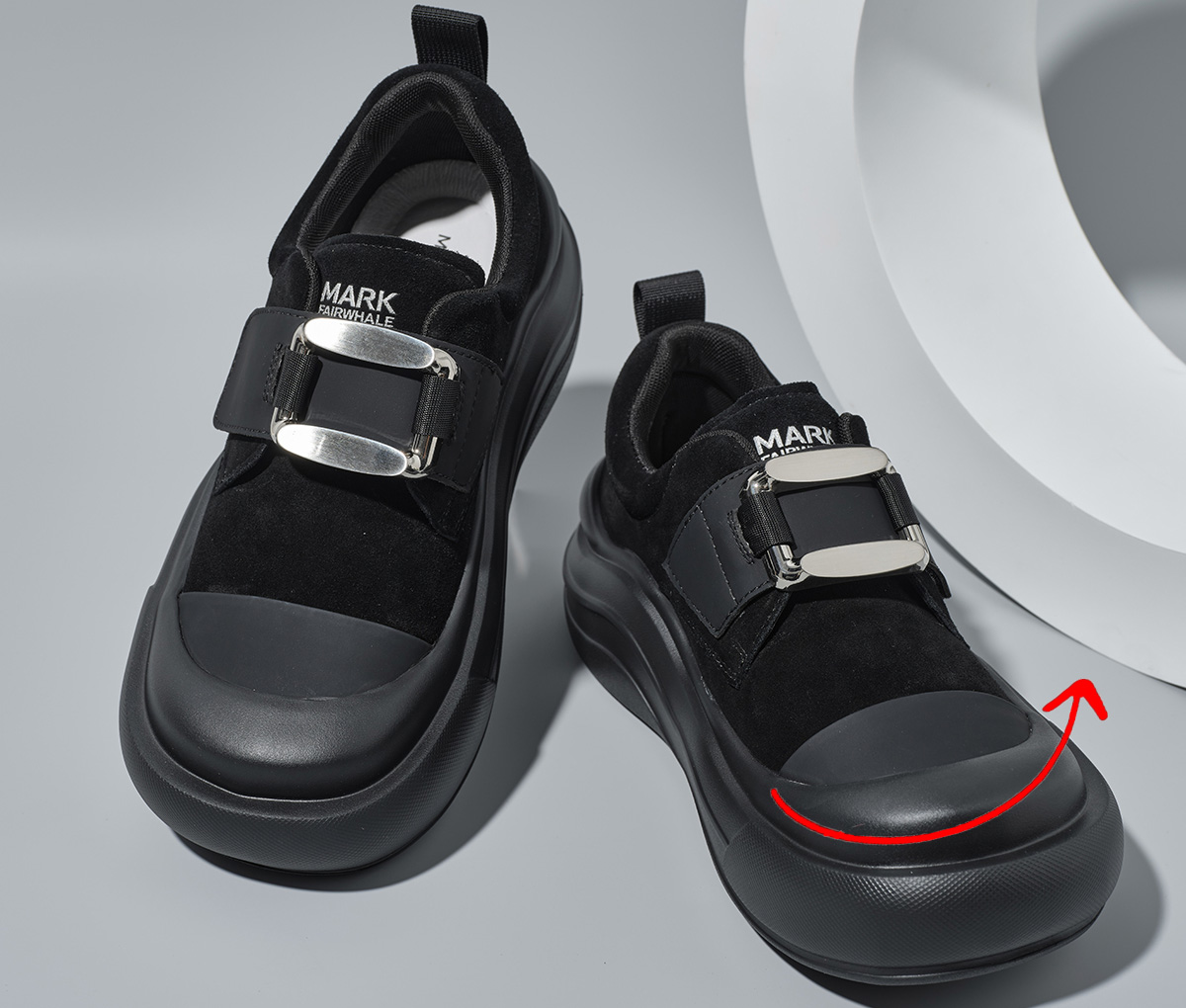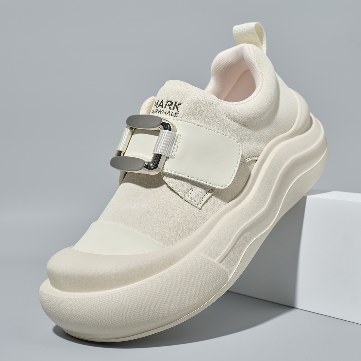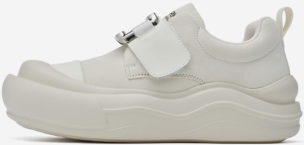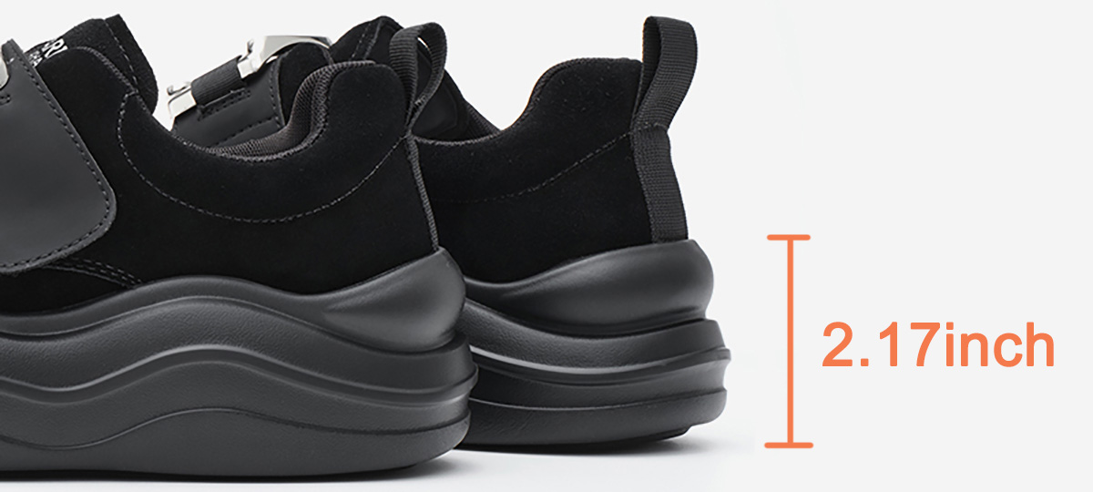 Mens Chunky Suede Round Toe Sneakers with Metal Buckle and Velcro