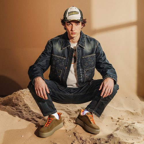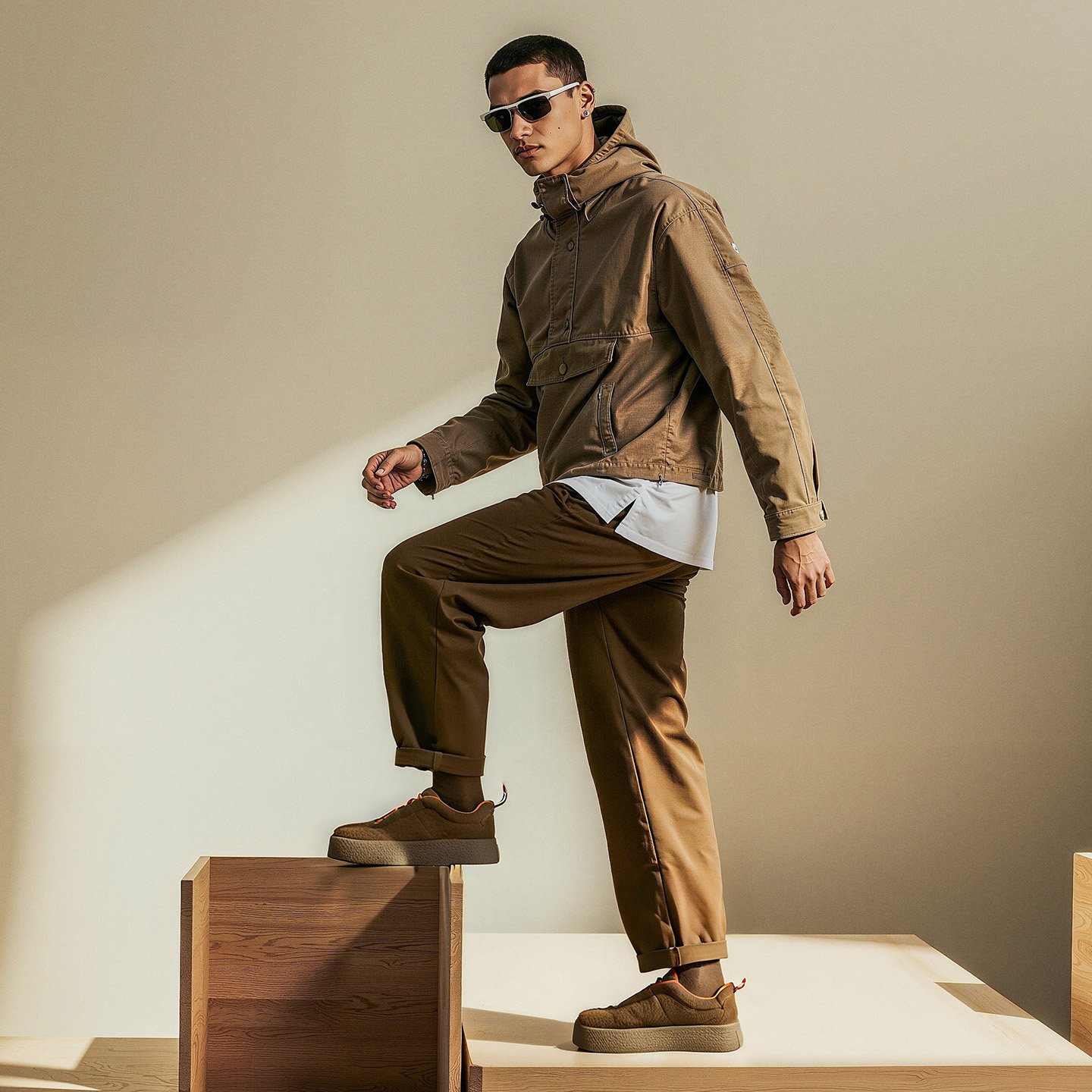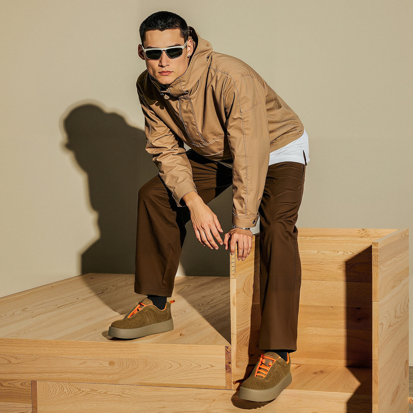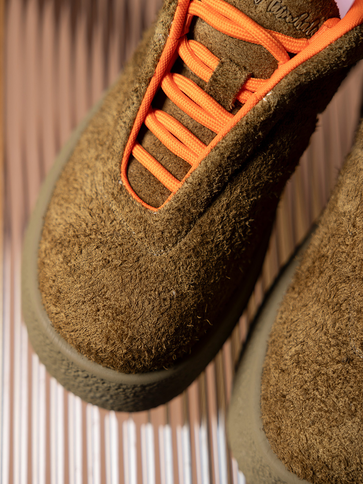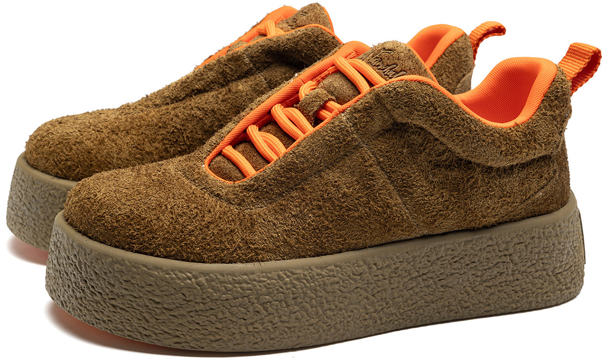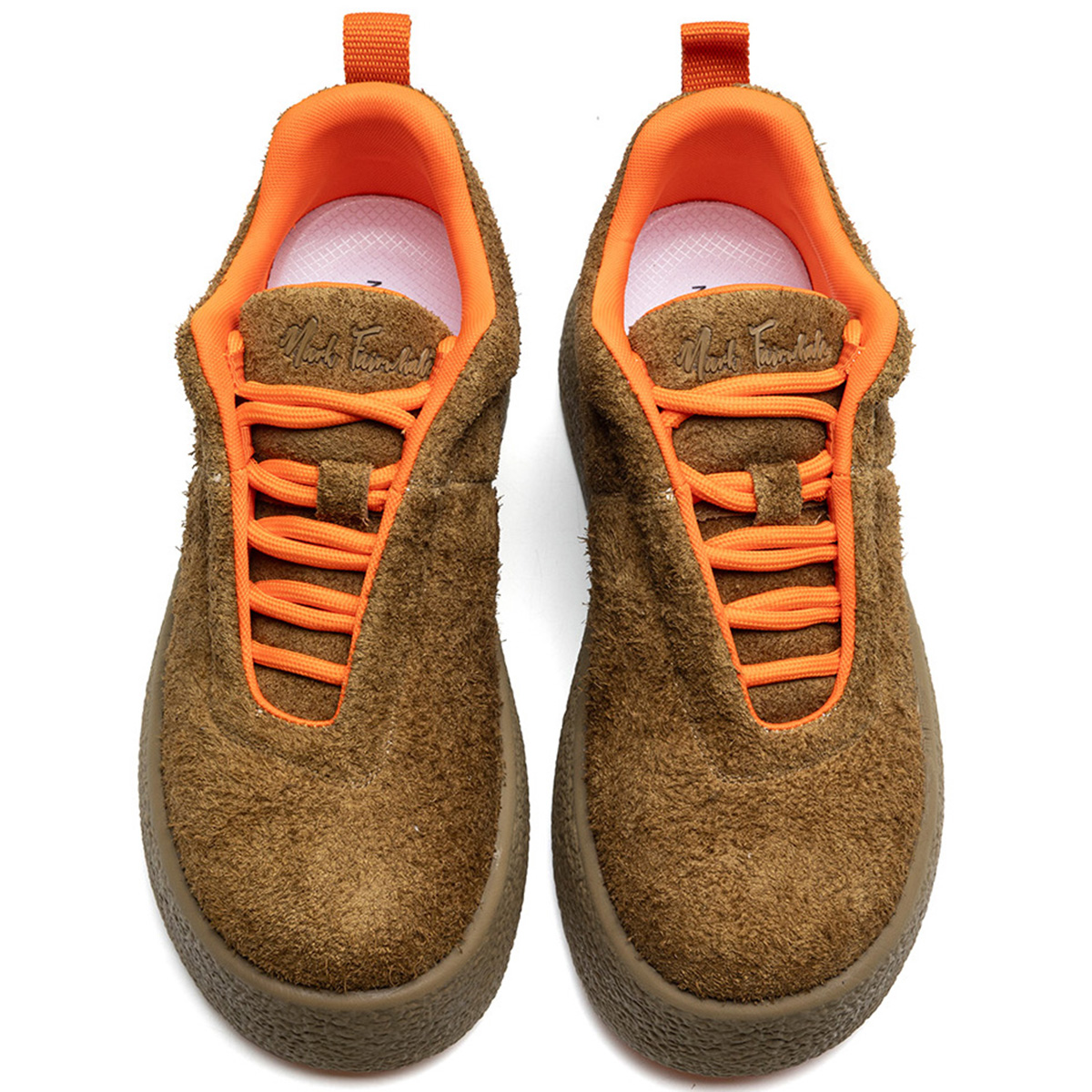 Mens Color Block Brown Spilt Cowhide Suede Orange Webbing Skate Shoes