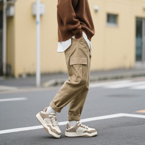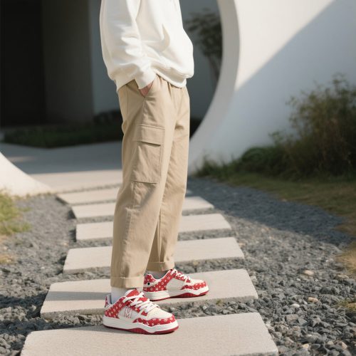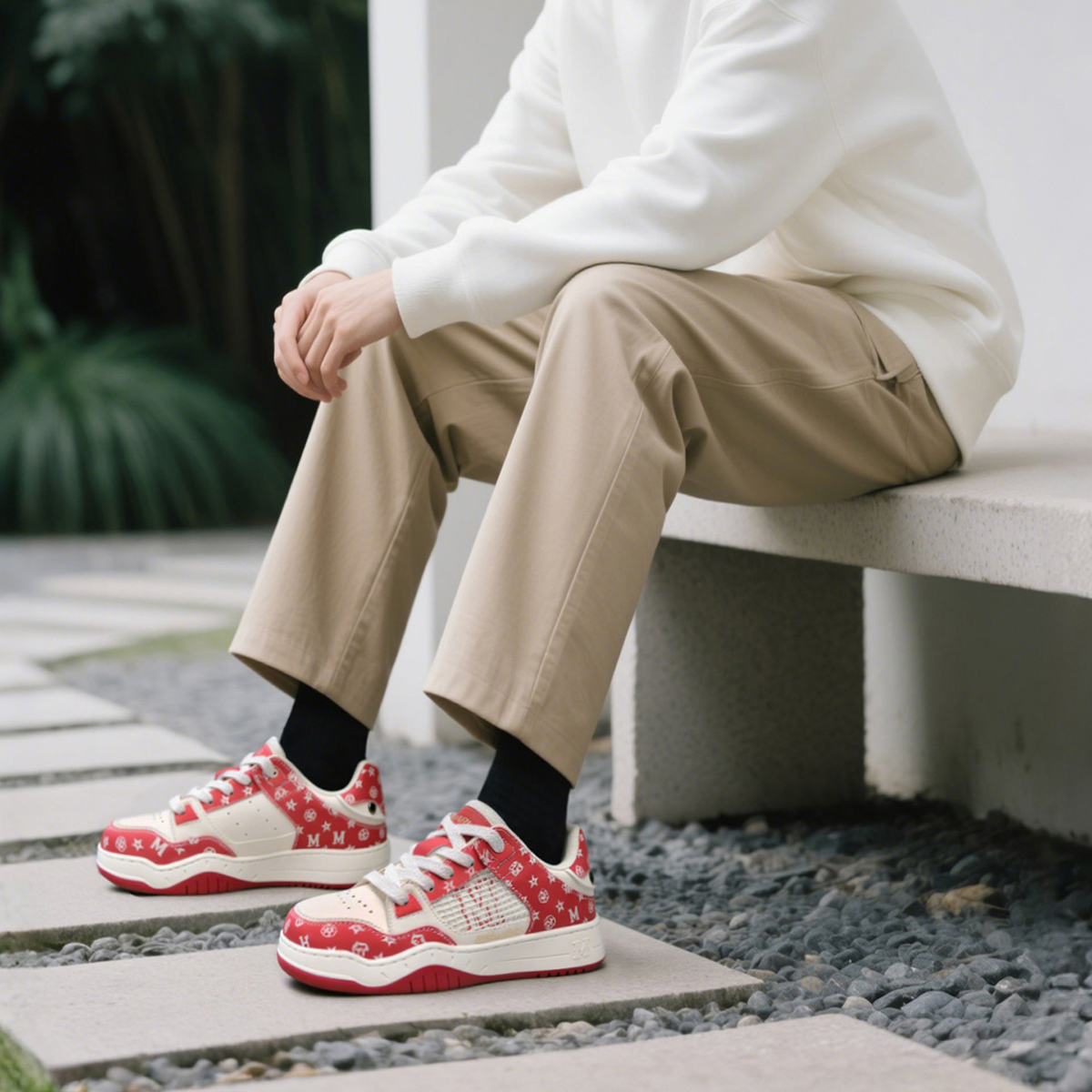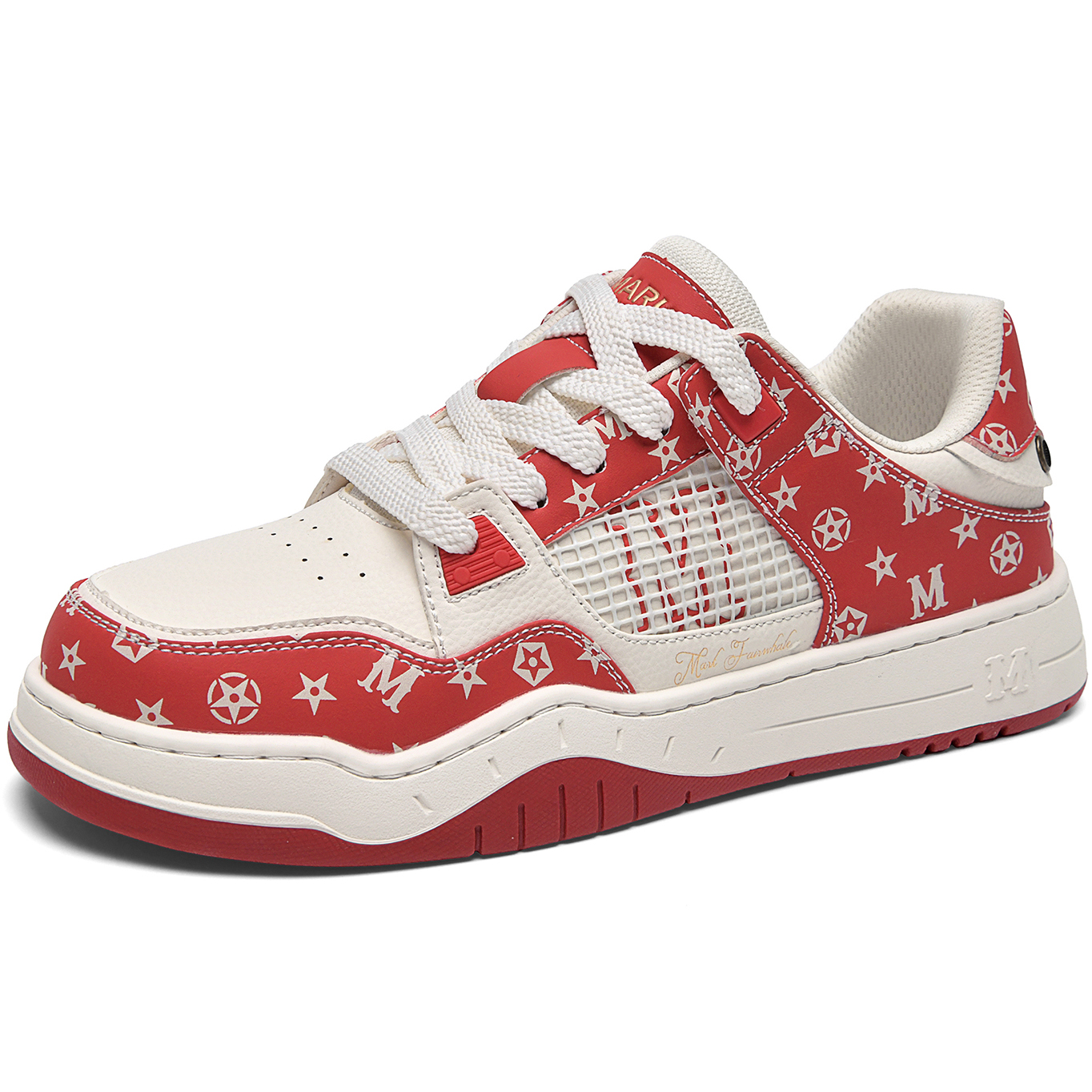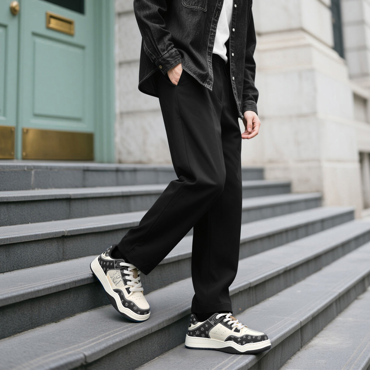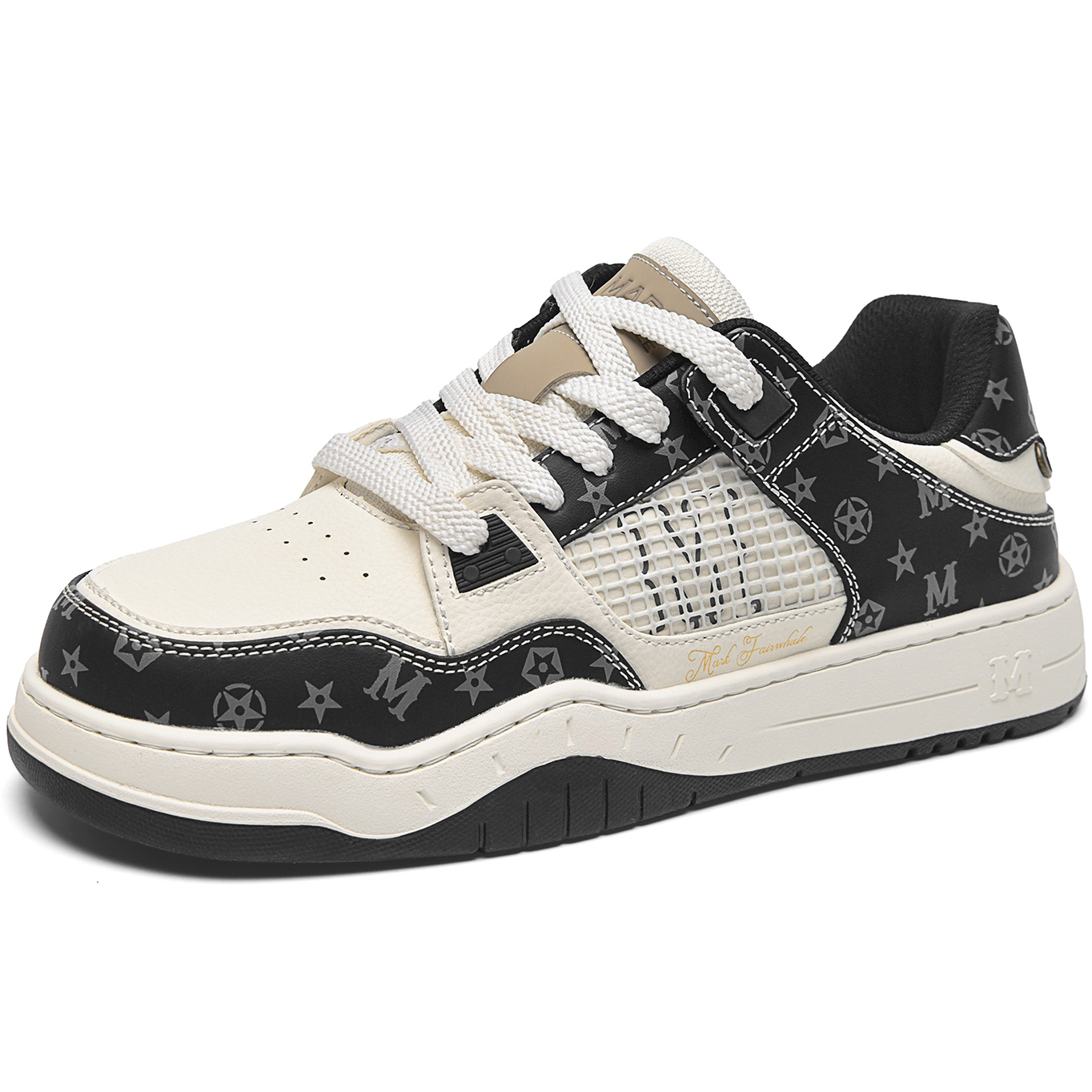 Mens Color Block Leather Skate Shoes with Monogram Patterns