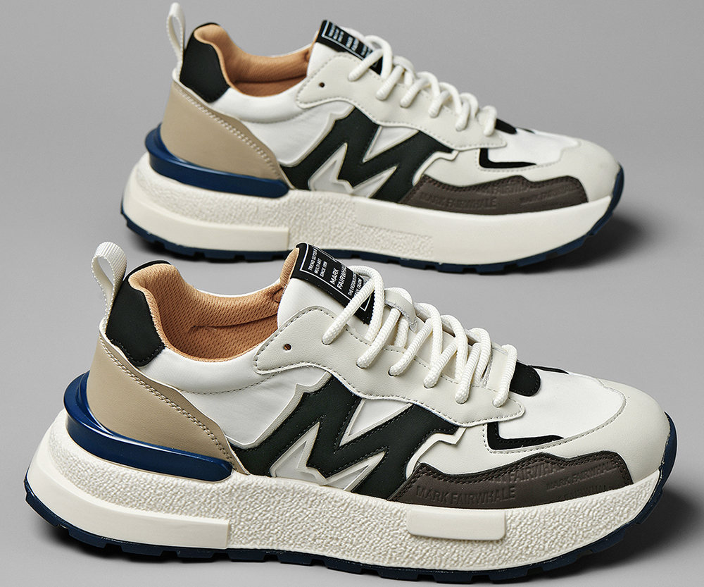 Leather and thin fabric blocked upper plus the textile insole bring you cool wearing experience especially in hot summer. The soft outsole stands out with excellent bounce and comfort when putting on it. Color block design and M letter overlays make it look stylish and bountiful in tiers, full of chic and youth touch.