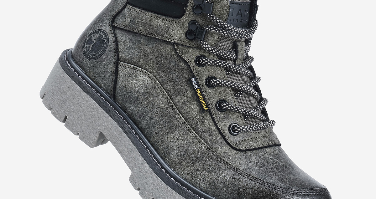 - Design: color rubbing, lugged sole, fabrics stitching.Â